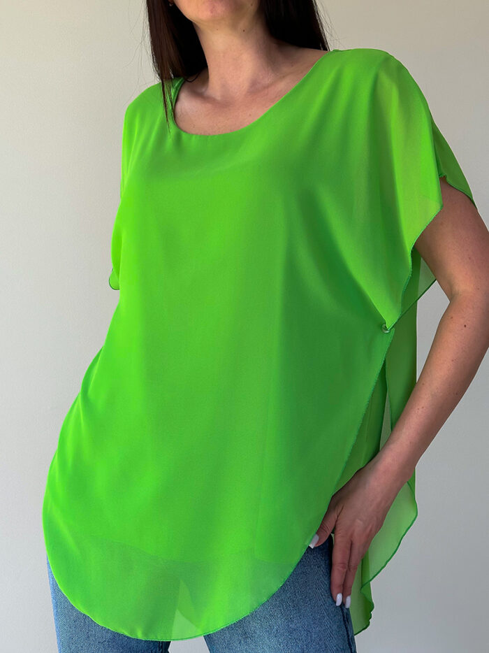 Удлиненная легкая блуза из шифона, с коротким свободным рукавом на пуговке.