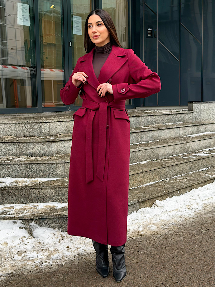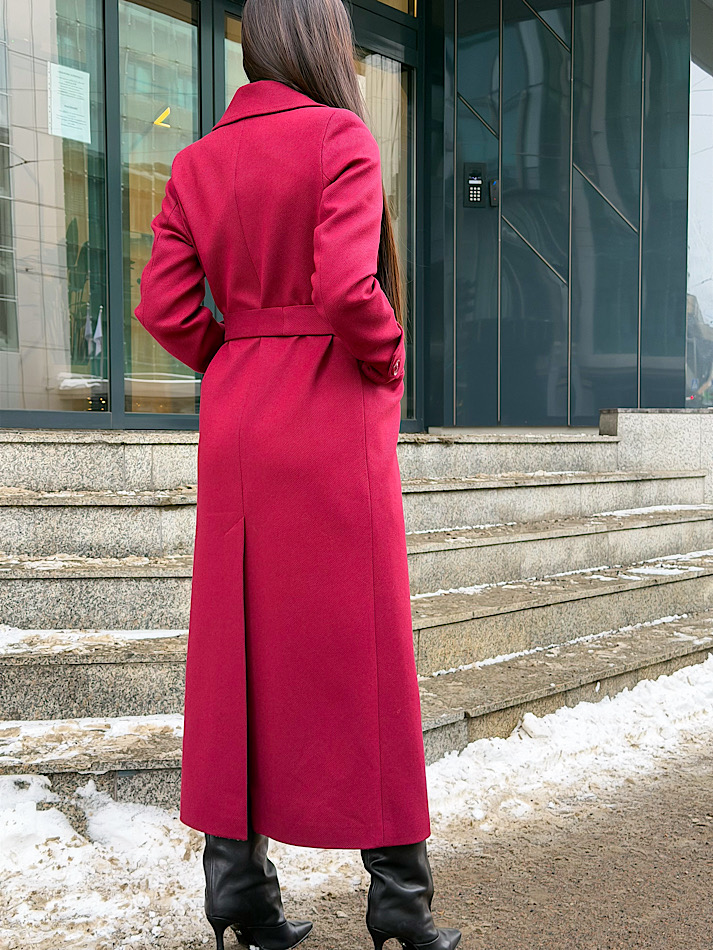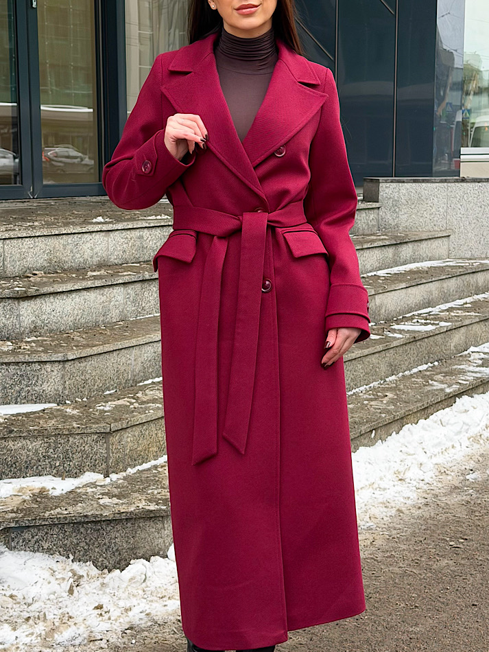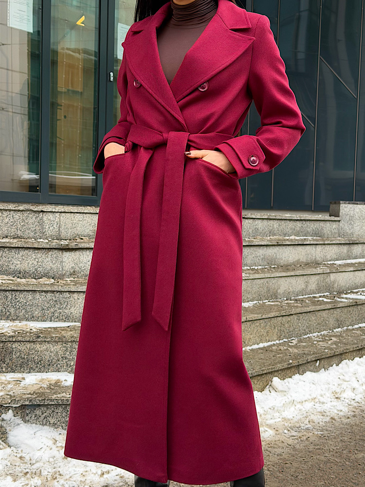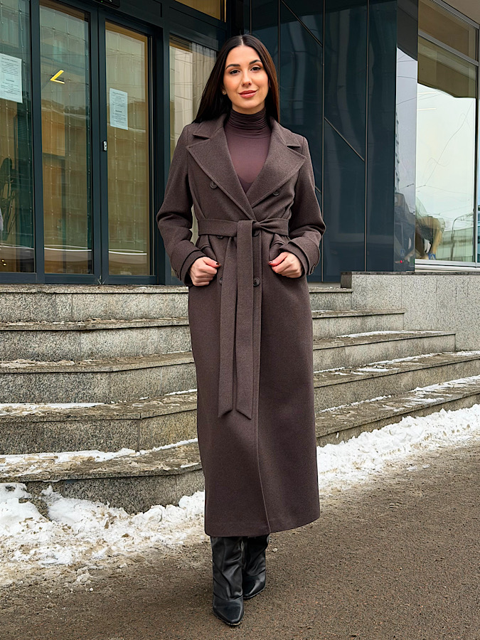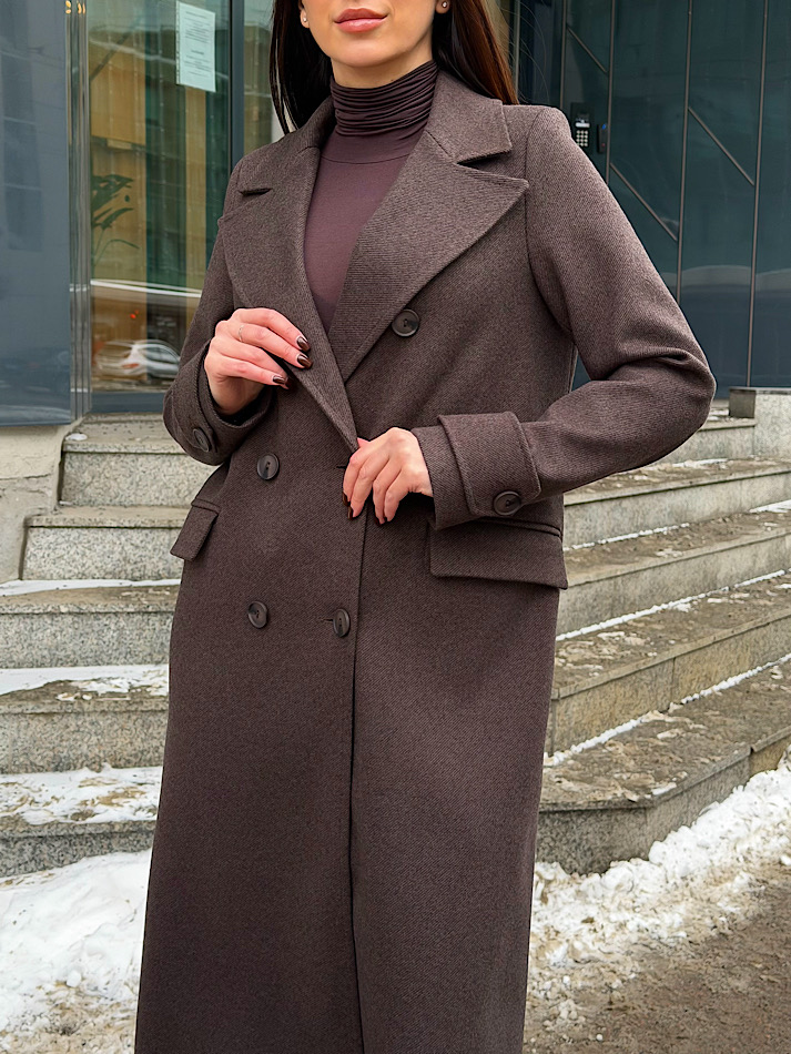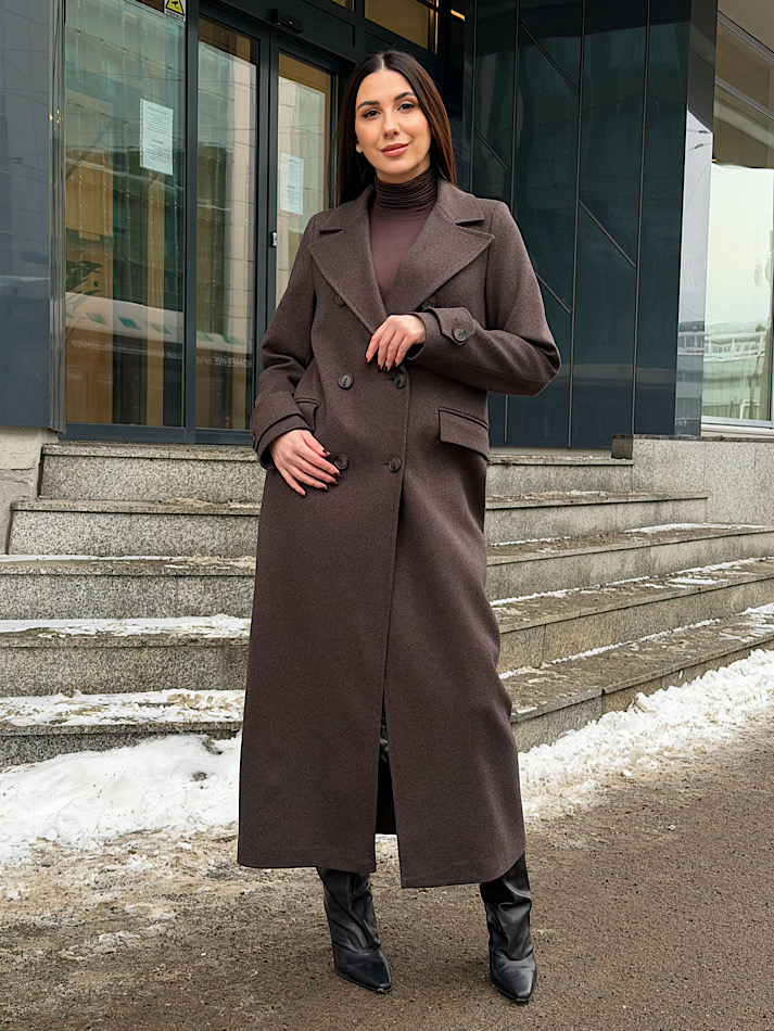 Элегантное длинное двубортное шерстяное пальто