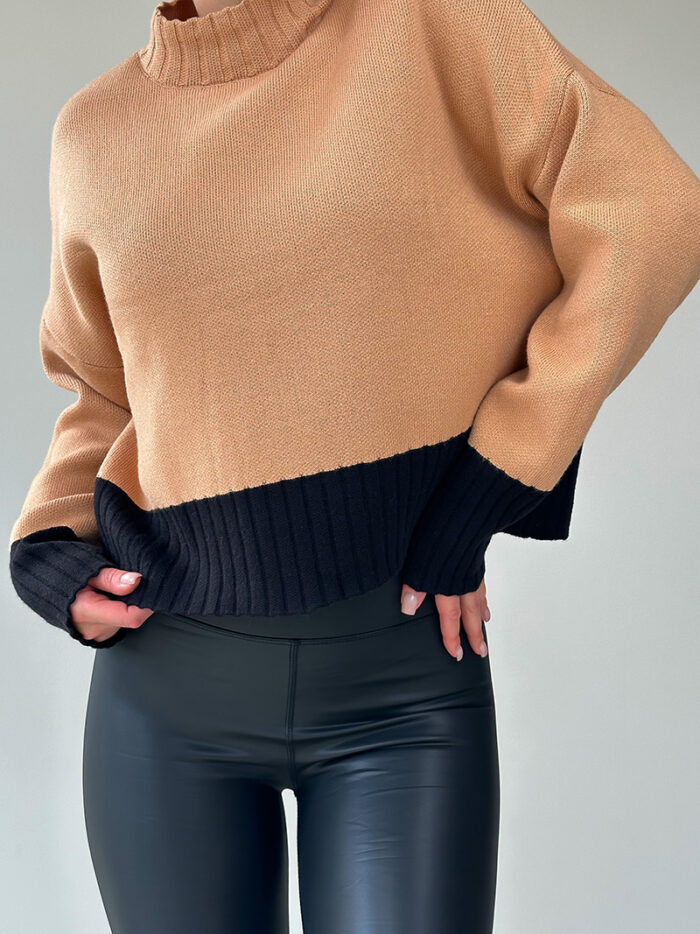 Джемпер свободного, прямого кроя с воротом стойкой. Свободный широкий рукав и низ джемпера оформлен широкой резинкой, что придает изюминку данной модели.