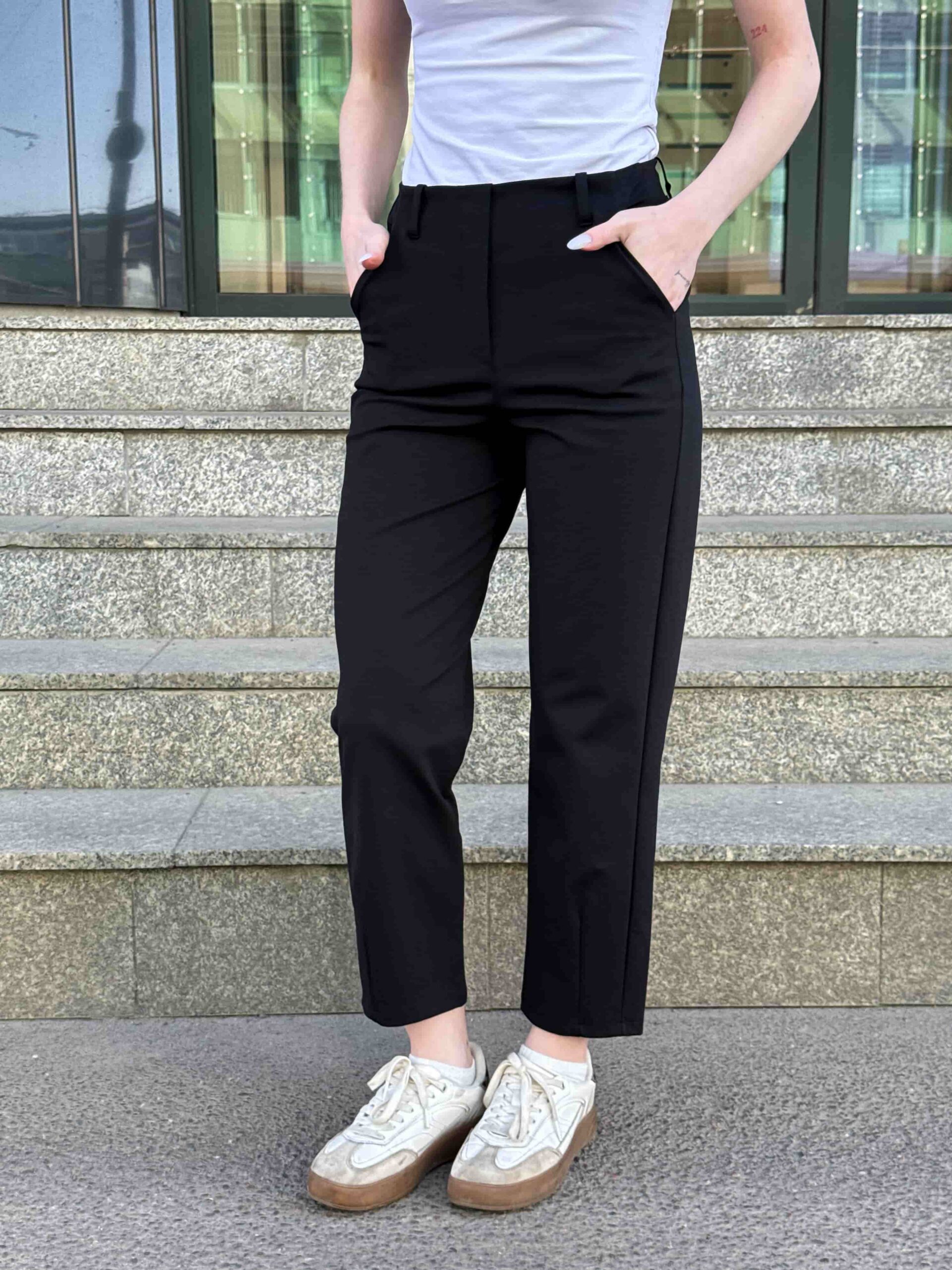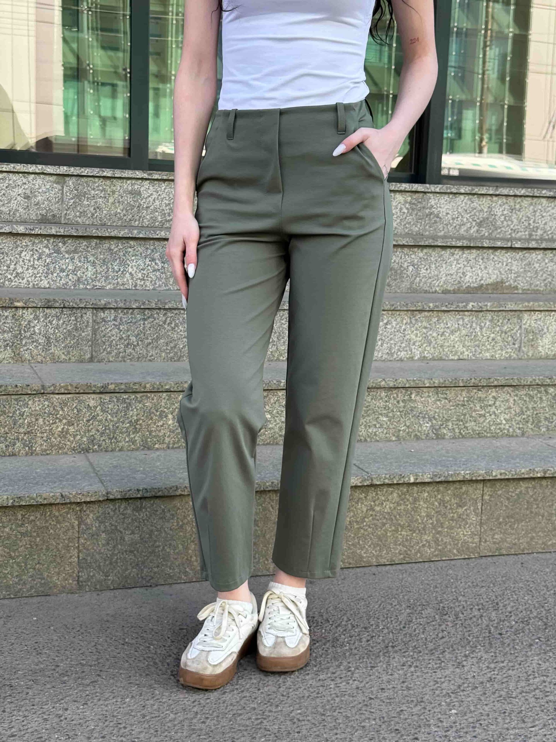 Kitsenevad püksid — ideaalne valik naistele, kes eelistavad elegantset ja kaasaegset stiili. Mudel on lühendatud säärega ja loodud spetsiaalselt suviseks hooajaks. Saadaval mitmes värvitoonis igale maitsele ja eeldusele. Kitsenevad püksid on liibuva lõikega, mis pikendab visuaalselt jalgu ja muudab silueti sihvakamaks. Lühendatud pikkus sobib ideaalselt suviste kingade ja sandaalidega. Universaalselt kombineeritavad toppide, pluuside ja suviste särkidega. Elegantne disain sobib kontorisse, jalutuskäikudeks ja igapäevaseks kasutamiseks. Sobivad stiilsete ja naiselike komplektide loomiseks. Ideaalsed soojaks aastaajaks ja puhkuseks. Asendamatu ese iga naise suvises garderoobis.