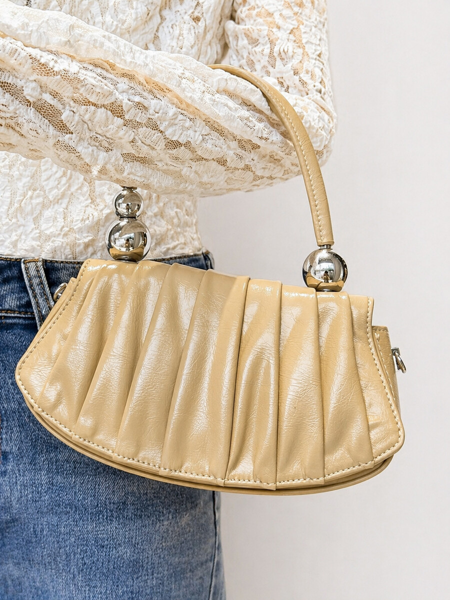 Naiste käekott sobib igapäevaseks ja õhtuseks kandmiseks. Kompaktne suurus muudab mudeli mugavaks ja kergeks. Naiste käekott on valikus erinevates värvitoonides. Hõbedane kuulikestega dekoor sangal lisab stiilse aktsendi. Mugav kuju võimaldab vajalikke asju kaasas kanda. Mudel täiendab harmooniliselt nii igapäevast kui ka elegantset välimust. Käekott on hõlpsasti kombineeritav erinevas stiilis jalatsite ja riietega. Lakooniline disain rõhutab aksessuaari kaasaegset iseloomu. Praktilisus muudab mudeli universaalseks valikuks igaks päevaks.