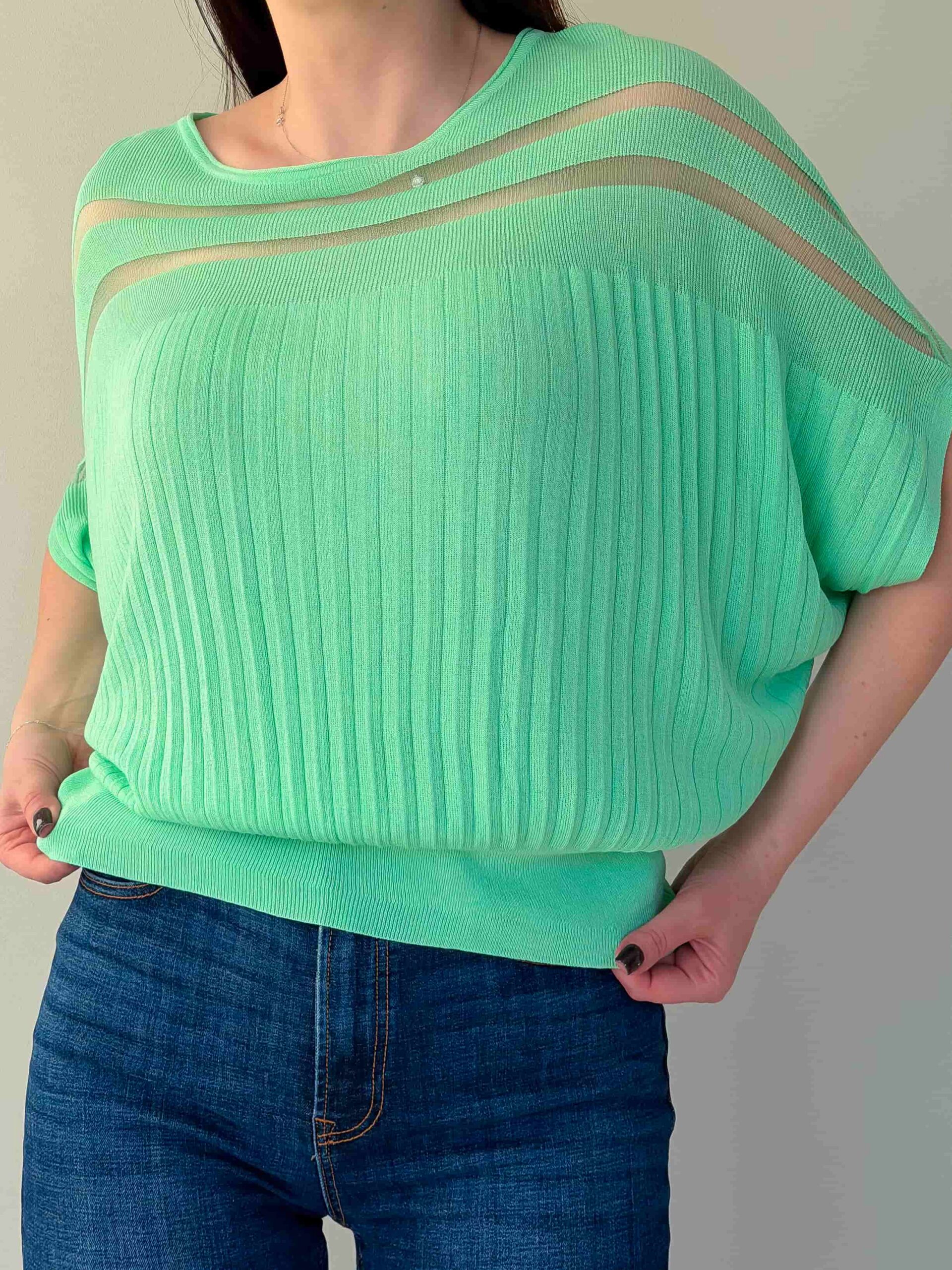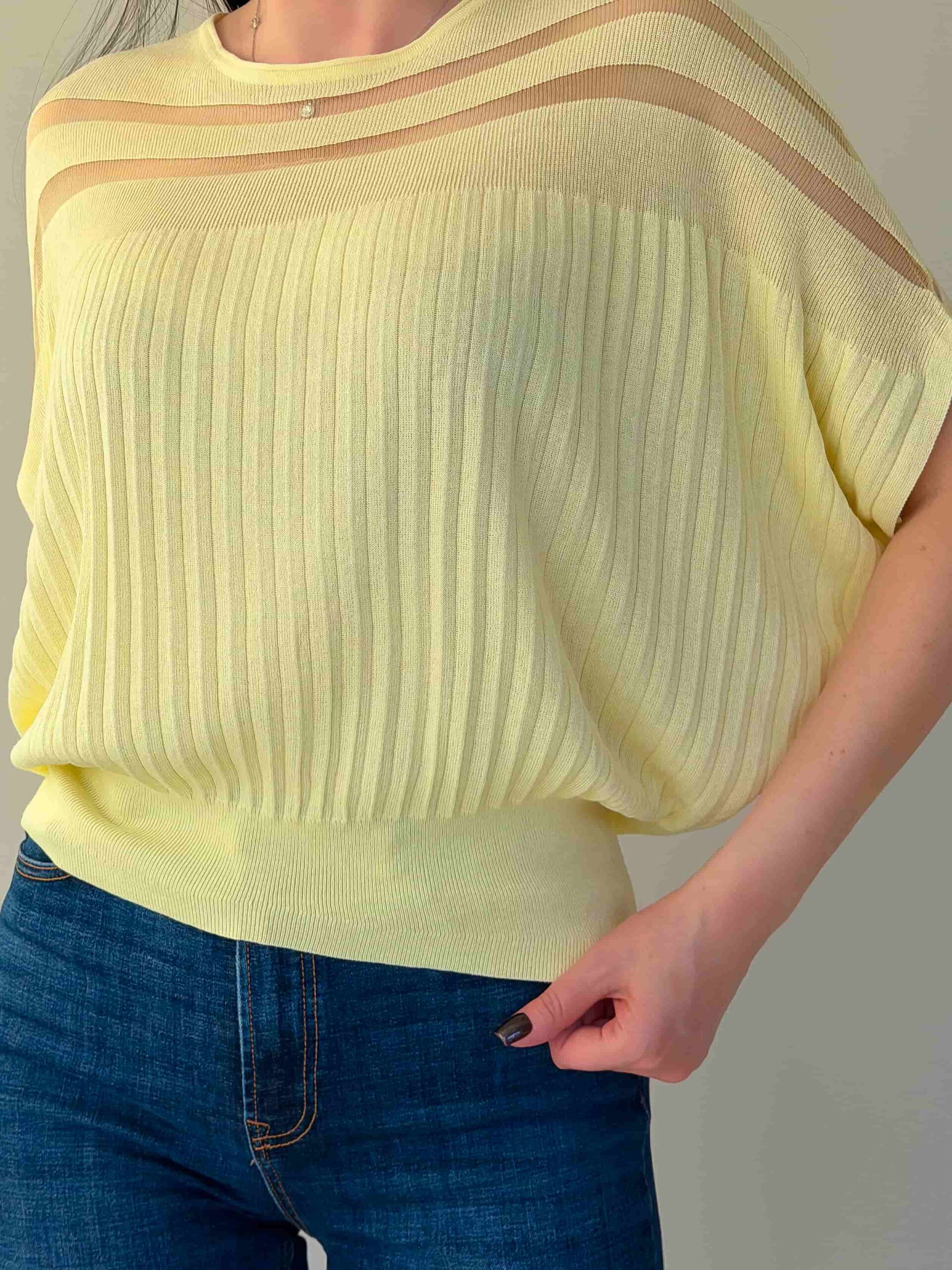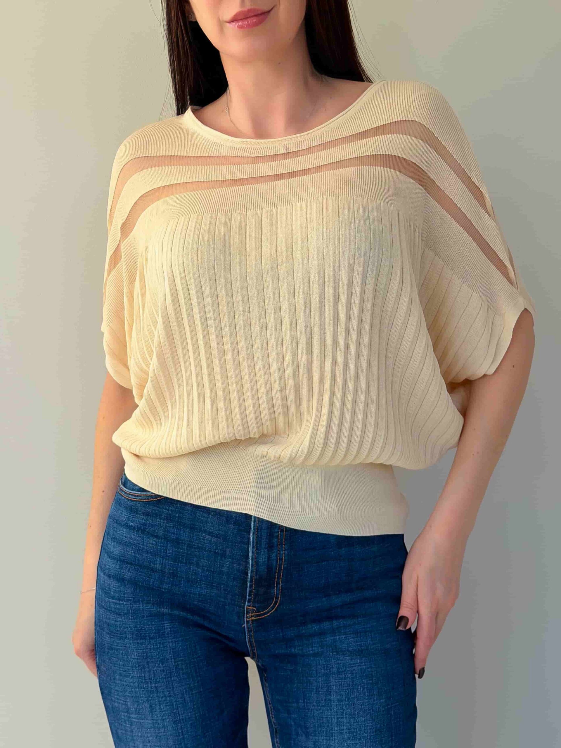 Lai topp — lõdva ja kaasaegse lõikega mudel läbipaistvate detailidega õlgade juures. Tootel on voolav ja õhuline välimus. Topp on üheosalisel varrukal, mis tagab liikumisel sujuvuse ja mugavuse. Läbipaistvad detailid lisavad põneva aktsendi ja muudavad mudeli trendikaks. Topp on saadaval mitmes värvitoonis, võimaldades valida sobiva variandi iga garderoobi jaoks. Universaalne suurus tagab mugava istuvuse erinevatele kehakuju tüüpidele ja lihtsustab valikut veebipoes. Lai topp sobib suurepäraselt pükste, seeliku või lühikeste pükstega kombineerimiseks.