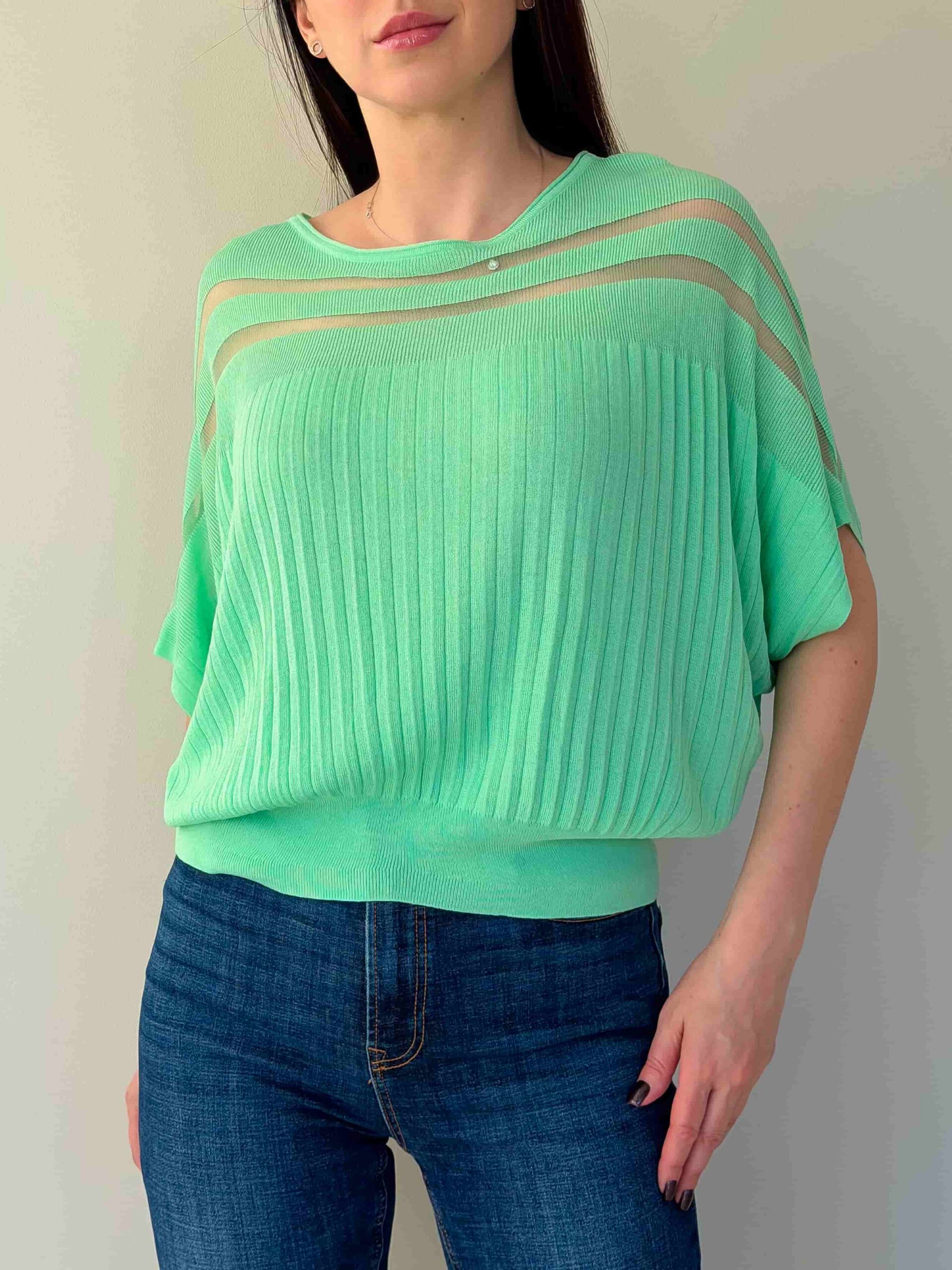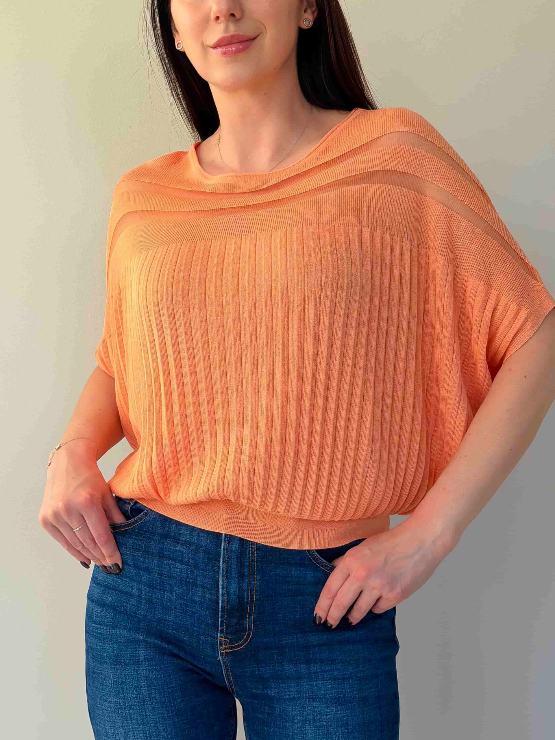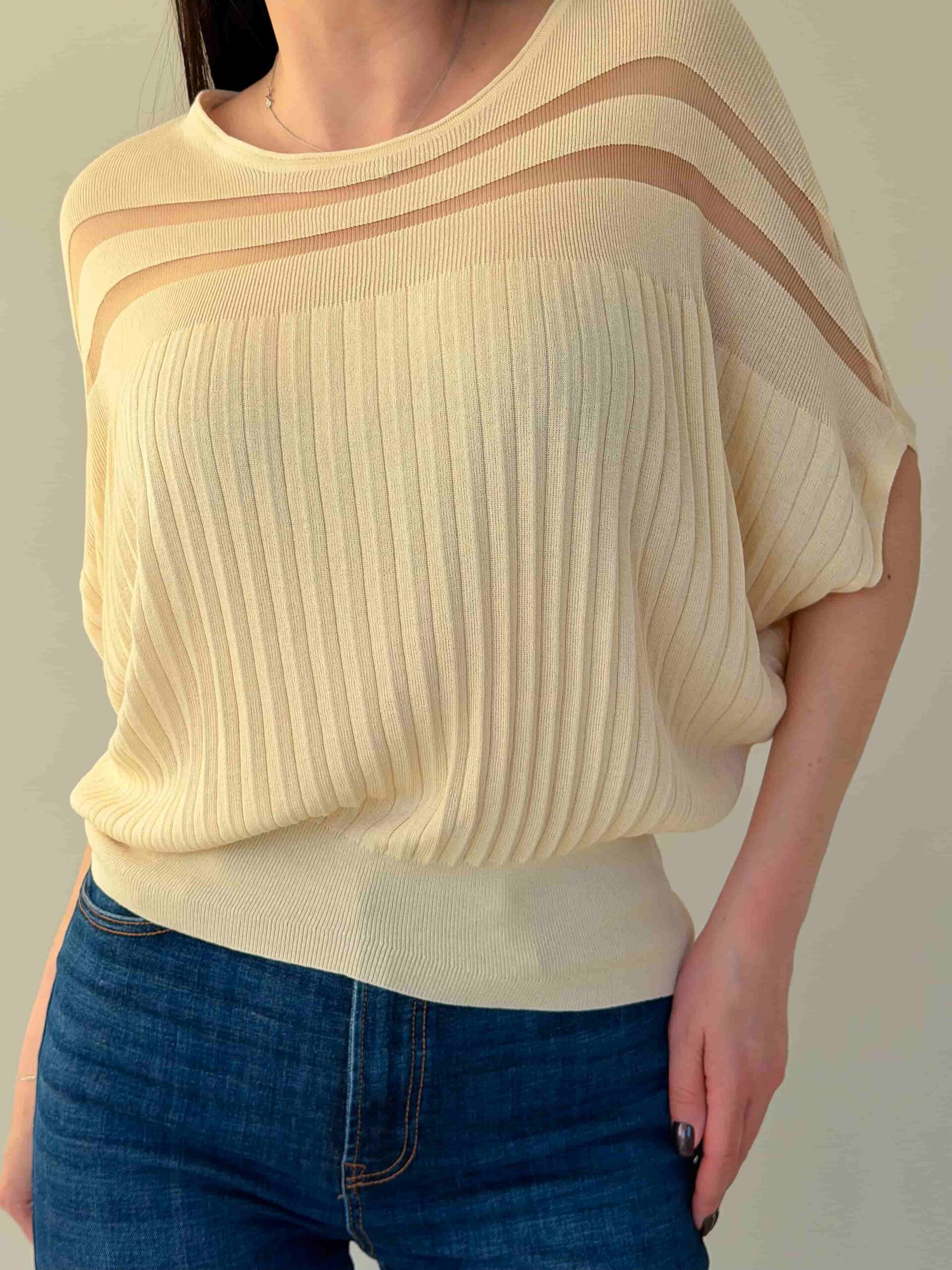 Lai topp — lõdva ja kaasaegse lõikega mudel läbipaistvate detailidega õlgade juures. Tootel on voolav ja õhuline välimus. Topp on üheosalisel varrukal, mis tagab liikumisel sujuvuse ja mugavuse. Läbipaistvad detailid lisavad põneva aktsendi ja muudavad mudeli trendikaks. Topp on saadaval mitmes värvitoonis, võimaldades valida sobiva variandi iga garderoobi jaoks. Universaalne suurus tagab mugava istuvuse erinevatele kehakuju tüüpidele ja lihtsustab valikut veebipoes. Lai topp sobib suurepäraselt pükste, seeliku või lühikeste pükstega kombineerimiseks.