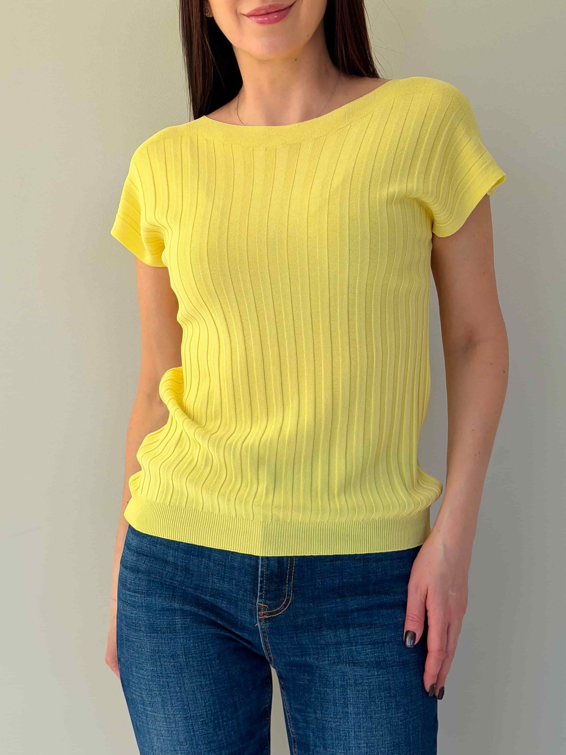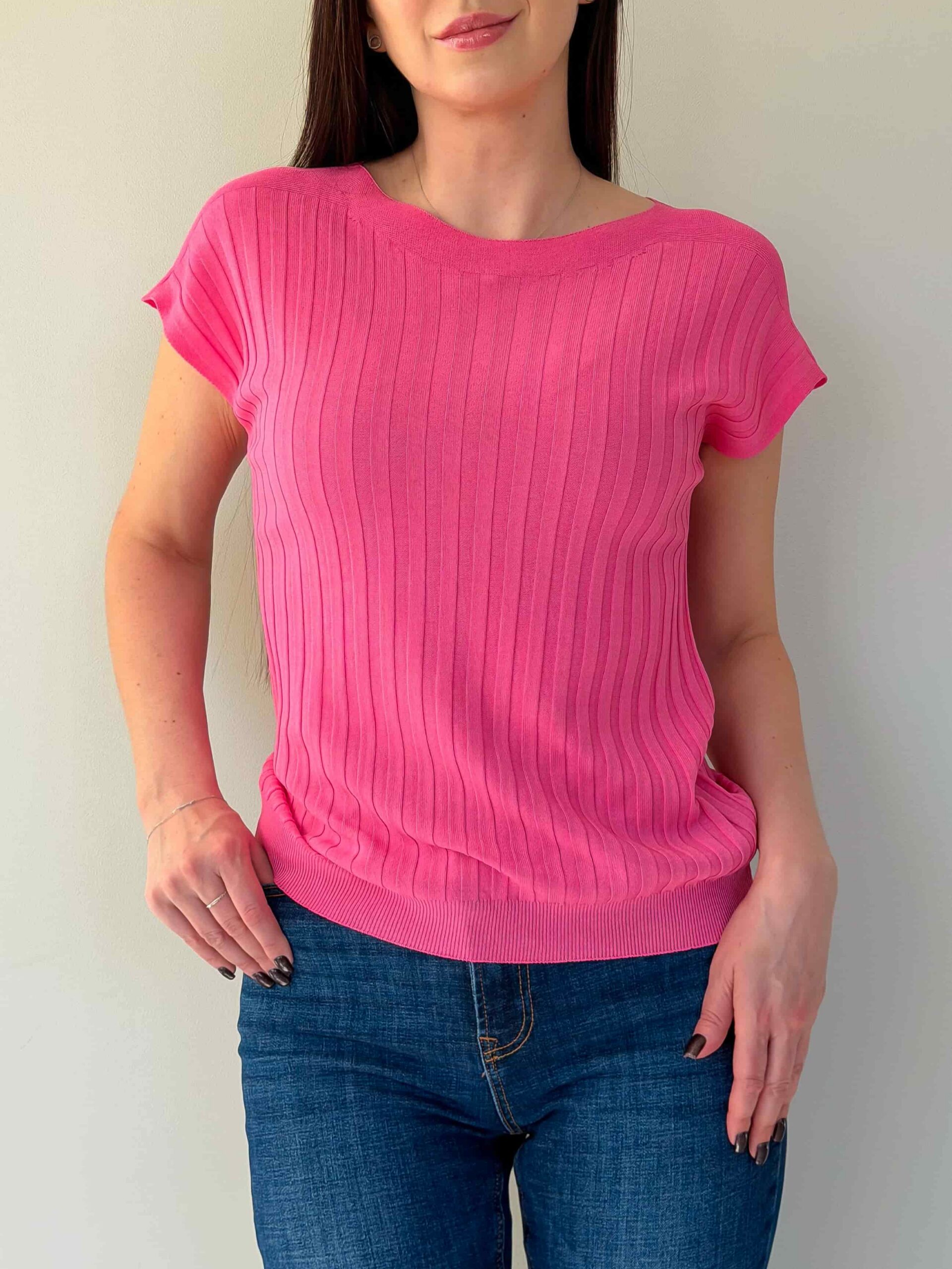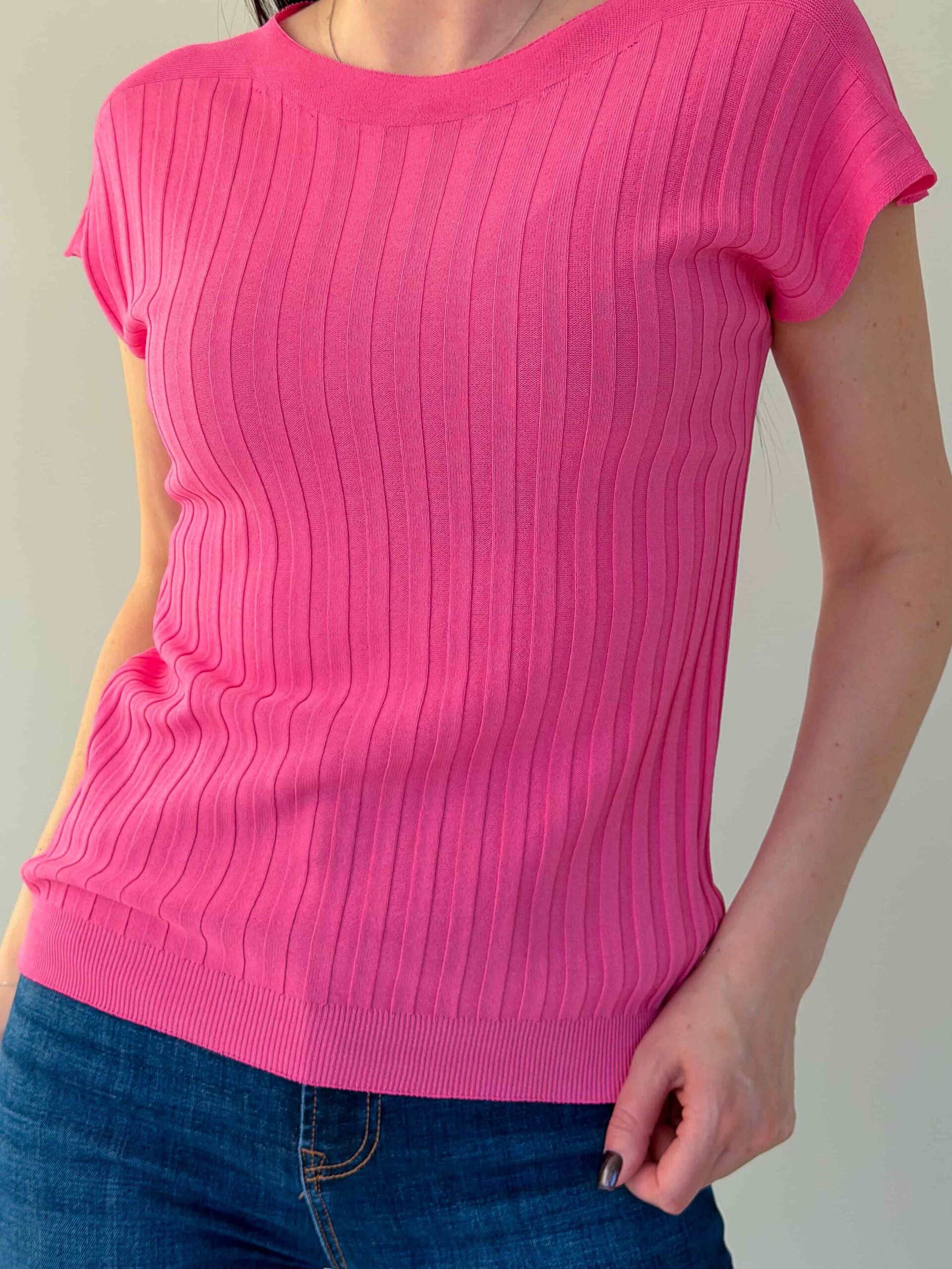 Õhukesest trikookangast topp on kerge ja universaalne põhimudel igapäevaseks kandmiseks ning kihiliseks stiiliks. Sirge lõige istub vabalt ja allääras olev kumm hoiab istuvust, luues modernse silueti. Üheosalised varrukad annavad minimalistliku ja sujuva välimuse ning tagavad mugavuse liikumisel. Kangas on elastne, mistõttu topp sobib erinevatele suurustele. Mudel on saadaval mitmes värvitoonis, mis lihtsustab kombineerimist jaku, kardigani või seelikuga. Ideaalne kontoriks, jalutuskäikudeks ja reisideks – kerge, kompaktne ja lihtsasti hooldatav.