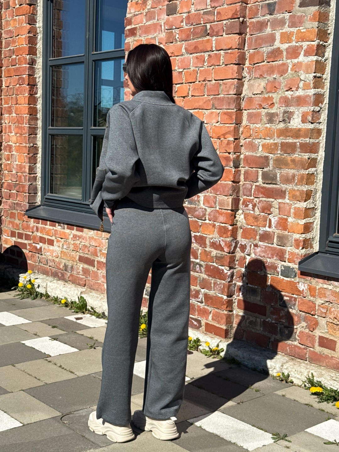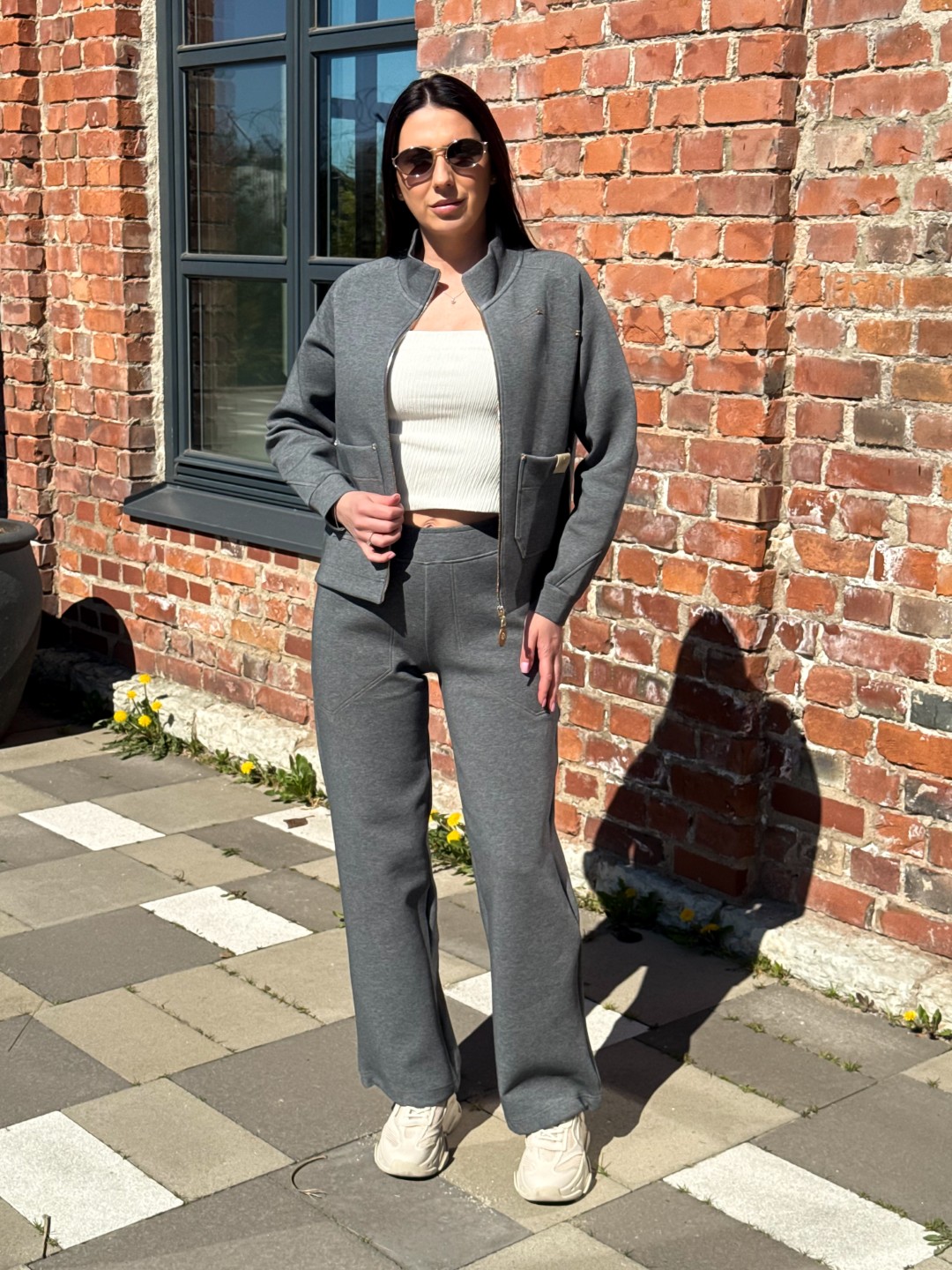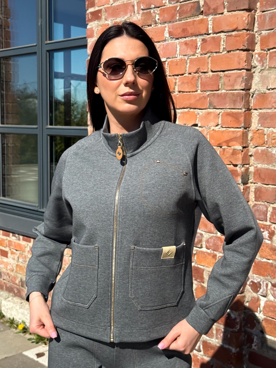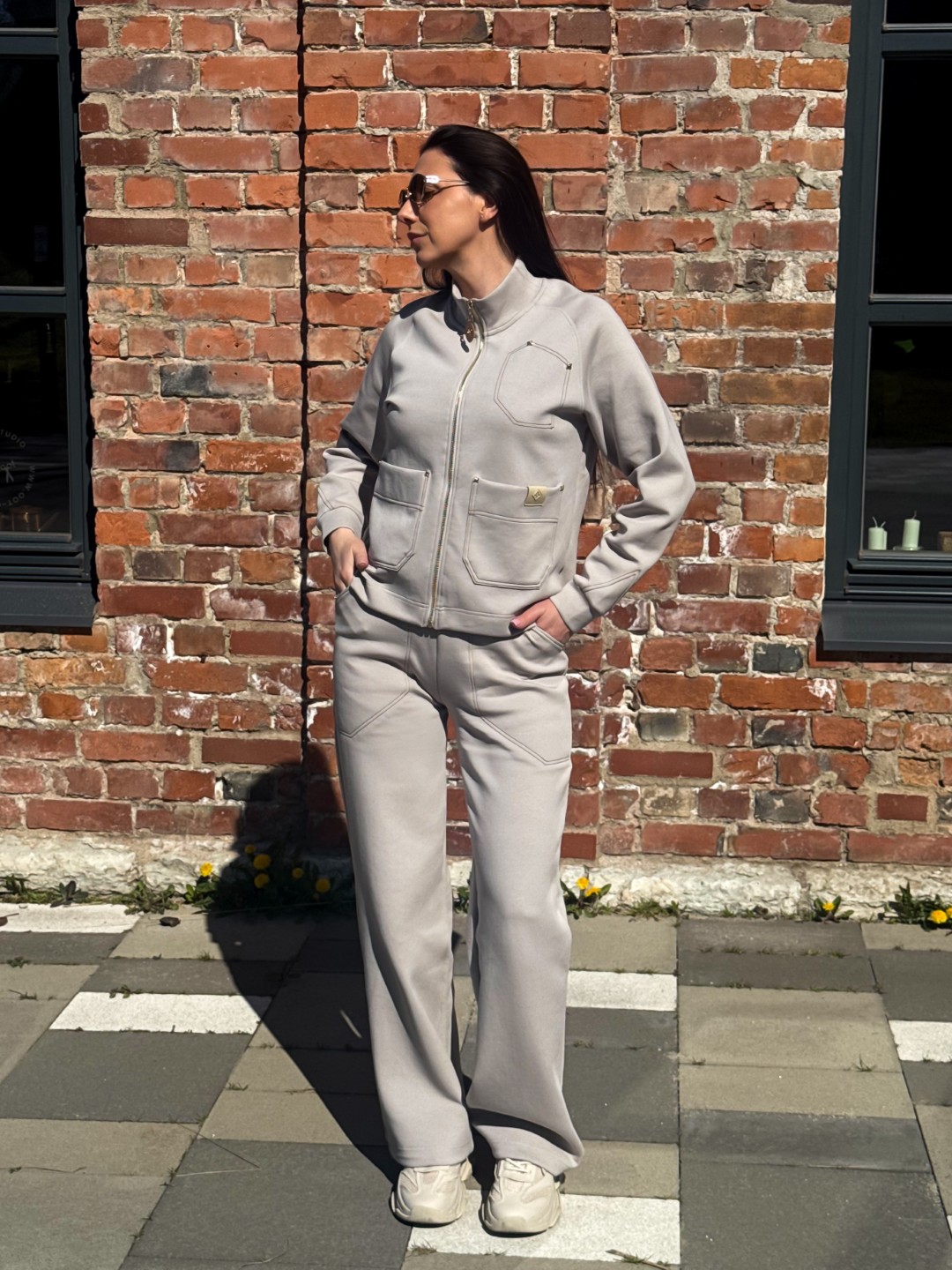 See kaasaegne naiste komplekt koosneb jakist ja pükstest. Moodsat kostüümi, millel on pealekantud taskud, täiendab mugavuse huvides tõmblukk. Püstkrae kaitseb kaela jaheduse eest. Suured pealekantud taskud on oluline disainielement ja funktsionaalne detail. Originaalne õmblusdekoratsioon rõhutab lõikejooni ja annab tootele isikupära. Kampsuni alaosa spetsiaalne laiusregulaator aitab toote mahtu hõlpsasti muuta. Pükste alaosa on samuti reguleeritav kinnitustega vastavalt teie isiklikele soovidele. Universaalne komplekt pealekantavate taskutega sobib dünaamilise spordiliku välimuse loomiseks. Iga detail ja kaunistus on läbimõeldud mugavaks kasutamiseks.