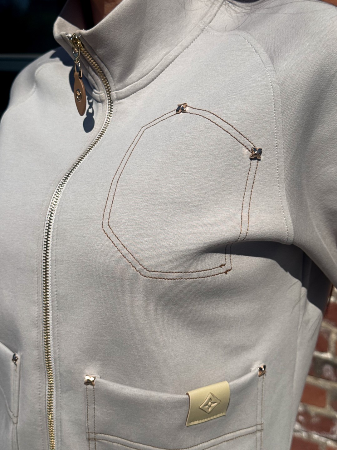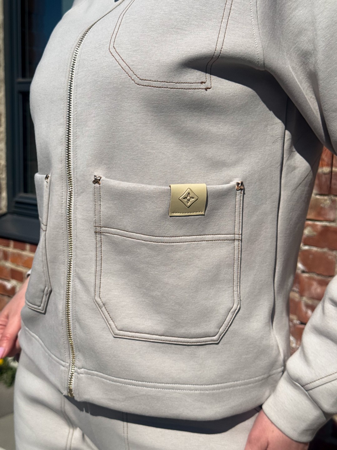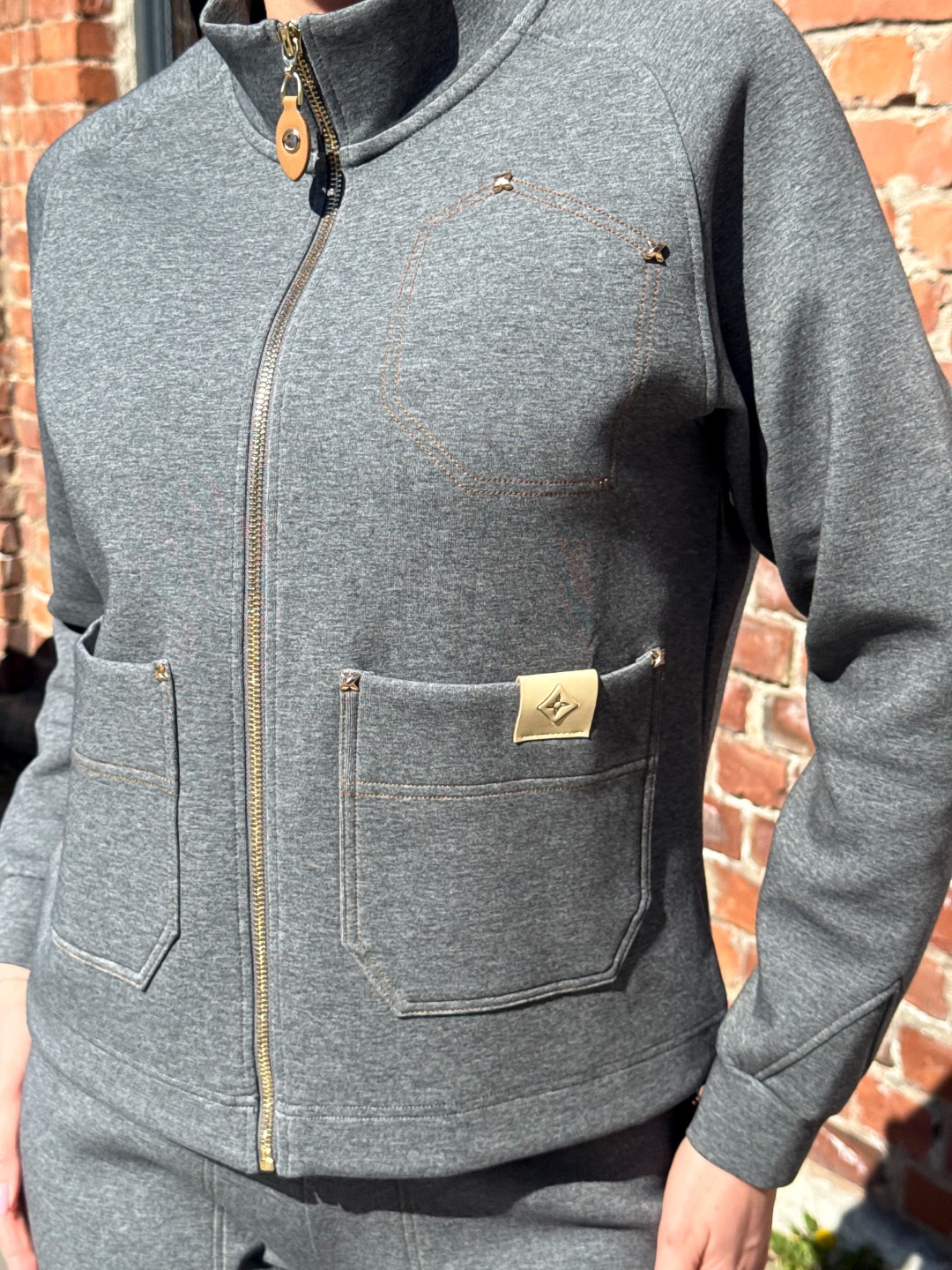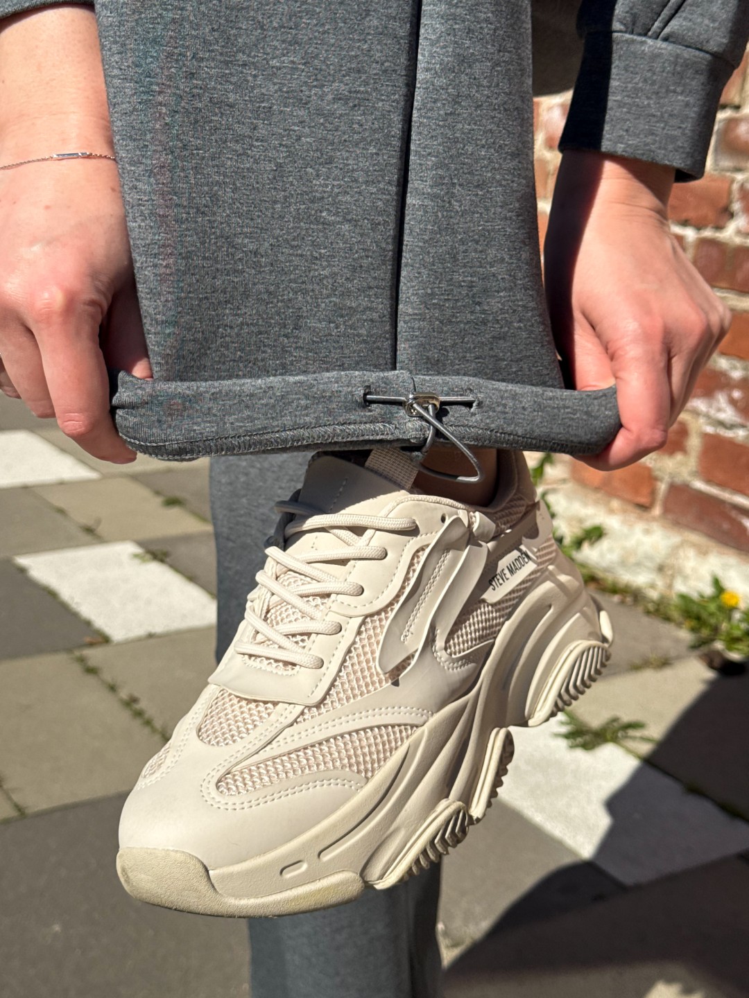 See kaasaegne naiste komplekt koosneb jakist ja pükstest. Moodsat kostüümi, millel on pealekantud taskud, täiendab mugavuse huvides tõmblukk. Püstkrae kaitseb kaela jaheduse eest. Suured pealekantud taskud on oluline disainielement ja funktsionaalne detail. Originaalne õmblusdekoratsioon rõhutab lõikejooni ja annab tootele isikupära. Kampsuni alaosa spetsiaalne laiusregulaator aitab toote mahtu hõlpsasti muuta. Pükste alaosa on samuti reguleeritav kinnitustega vastavalt teie isiklikele soovidele. Universaalne komplekt pealekantavate taskutega sobib dünaamilise spordiliku välimuse loomiseks. Iga detail ja kaunistus on läbimõeldud mugavaks kasutamiseks.