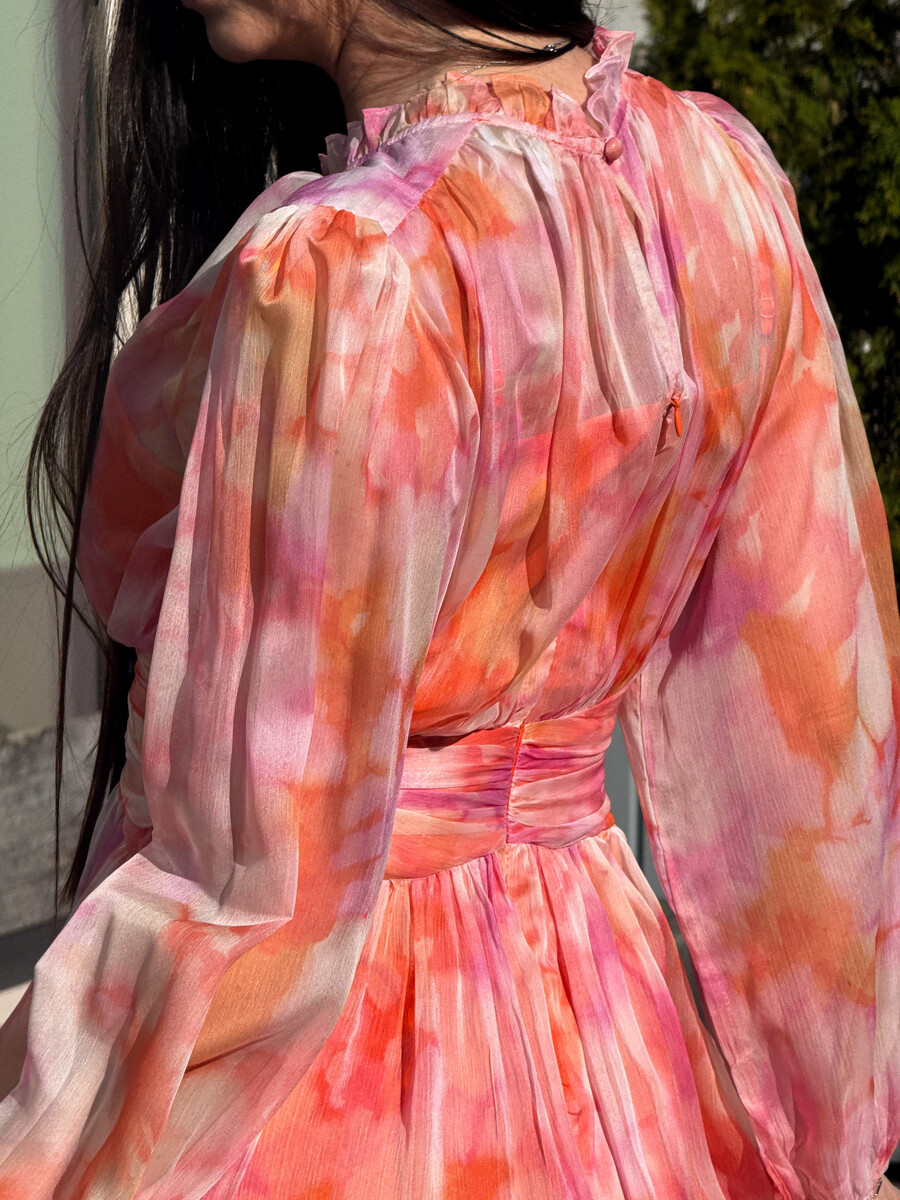 Pika varrukaga kleit sobib stiilseks igapäevaseks välimuseks. Minipikkus rõhutab jalgu ja lisab välimusele ilmekust. Pikk varrukas loob tasakaalu ja muudab mudeli universaalseks. Toode kinnitub seljal tõmblukuga. Pika varrukaga kleit näeb välja elegantne ja kaasaegne. Kerge lõige lisab liikumisvabadust. Lendlev siluett annab välimusele naiselikkust ja pehmust. Mudel sobib kohtumisteks, jalutuskäikudeks ja õhtusteks väljaminekuteks. Universaalne disain on hõlpsasti kombineeritav erinevate jalatsitega.