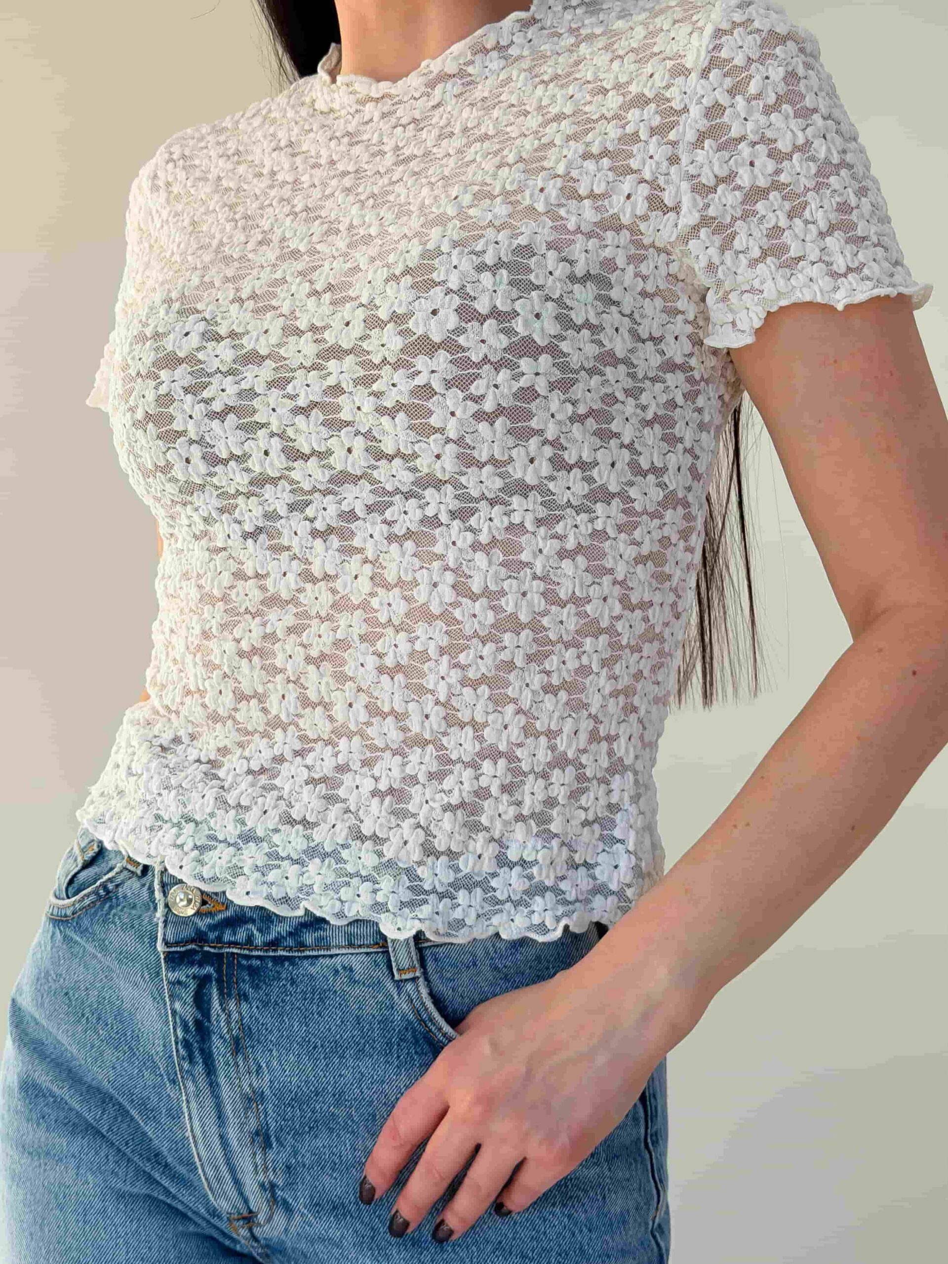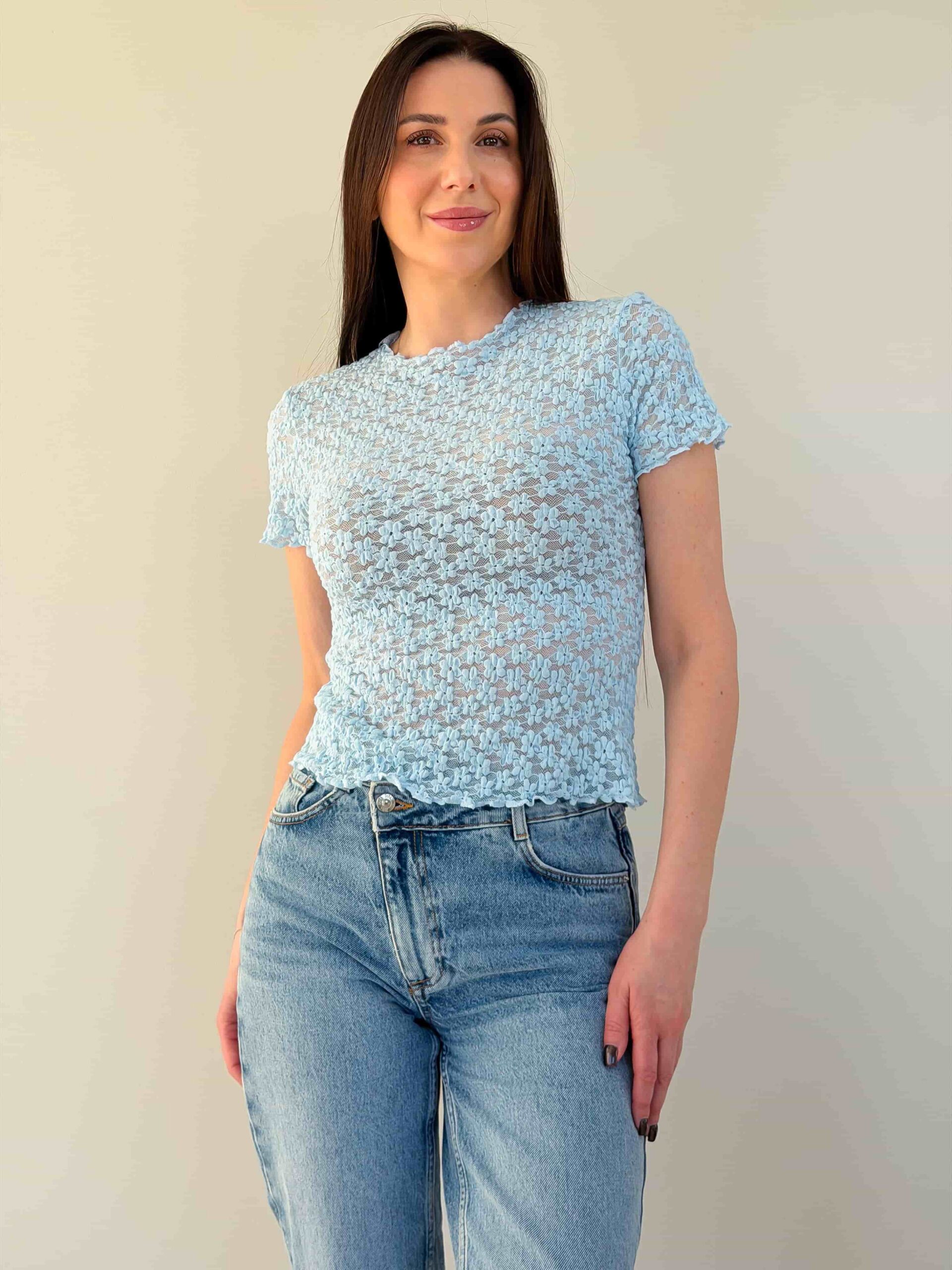 Pitsist topp — elegantne ja naiselik mudel, mis on kehasse töödeldud lõikega ning saadaval mitmes värvitoonis. Lühikesed varrukad lisavad välimusele kergust ja muudavad topi mugavaks soojal hooajal kandmiseks. Kangas on osaliselt poolläbipaistev, mis annab tootele õhulise tekstuuri ja peene iseloomu. Materjali tihedus on valitud nii, et topp rõhutab siluetti, kuid ei pigista. Mudel sobib hästi kihilisteks kombinatsioonideks ning ka iseseisvalt seeliku või pükstega kandmiseks. Toppi on lihtne sobitada pintsaku, kardigani ja aksessuaaridega nii päevase kui ka õhtuse komplekti loomiseks. Universaalne värvipalett muudab eseme praktiliseks sinu garderoobis.