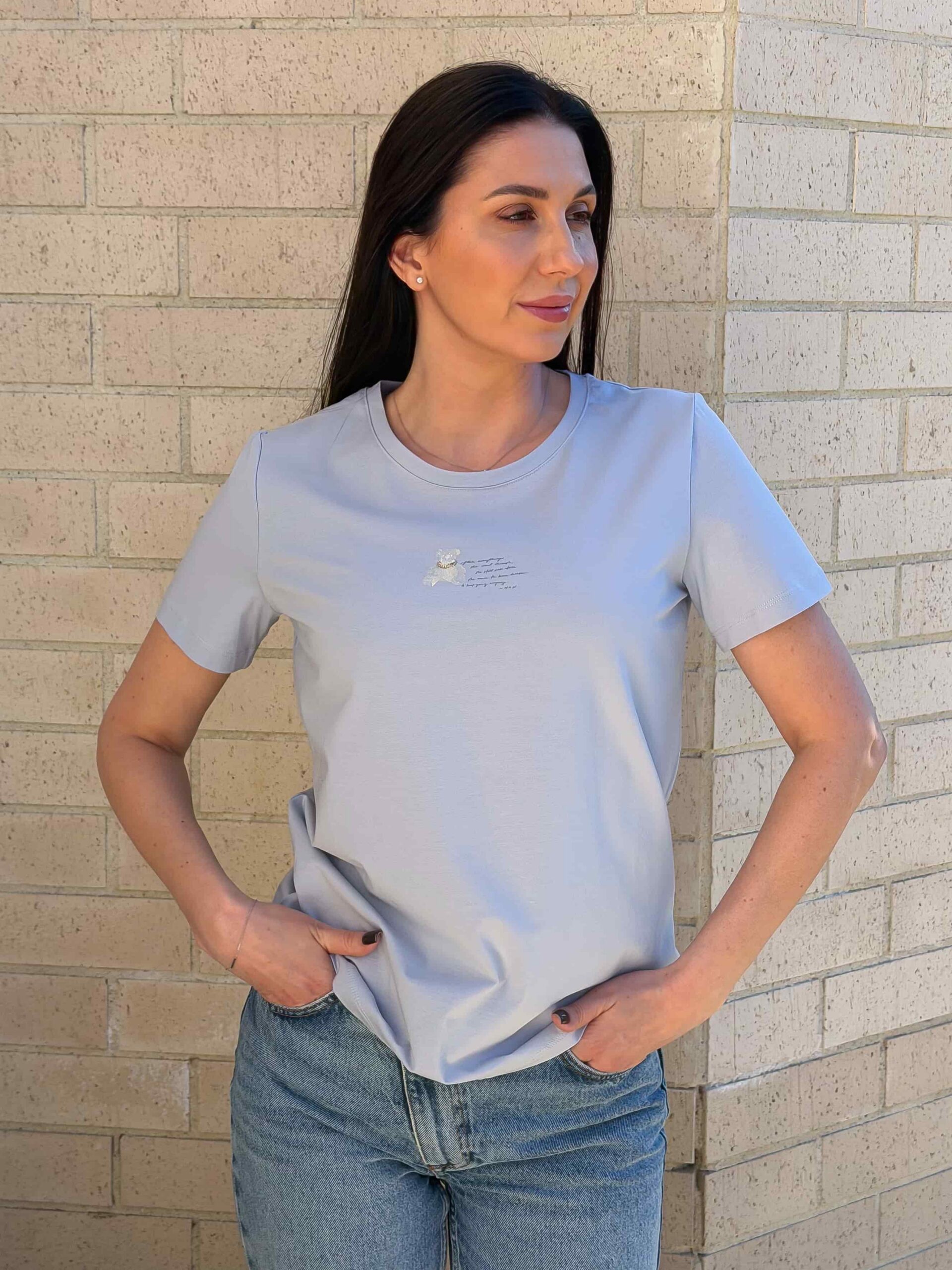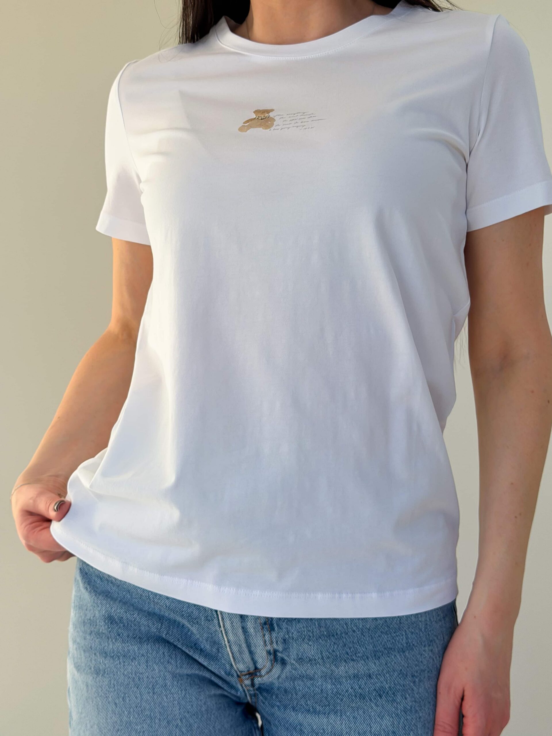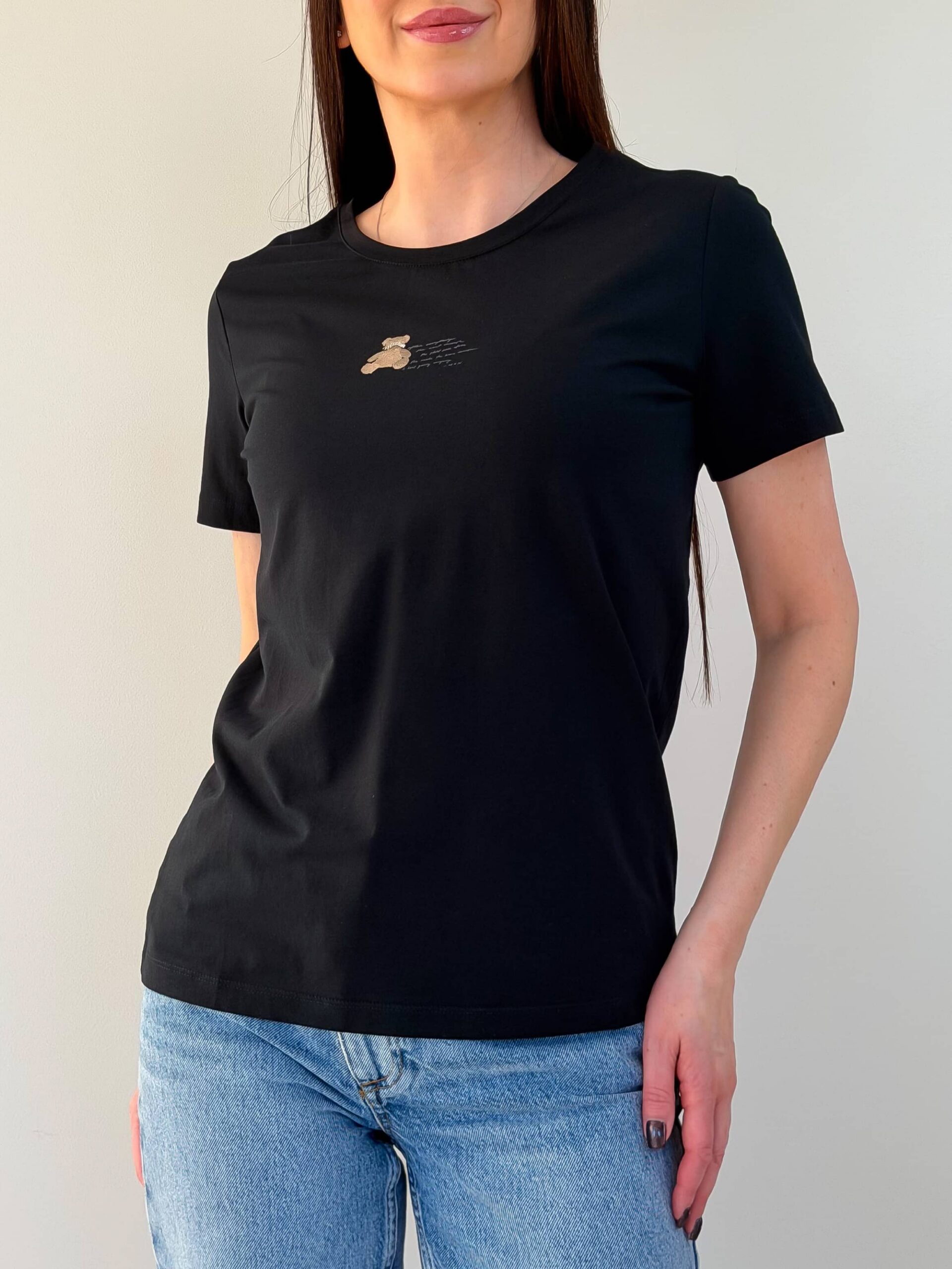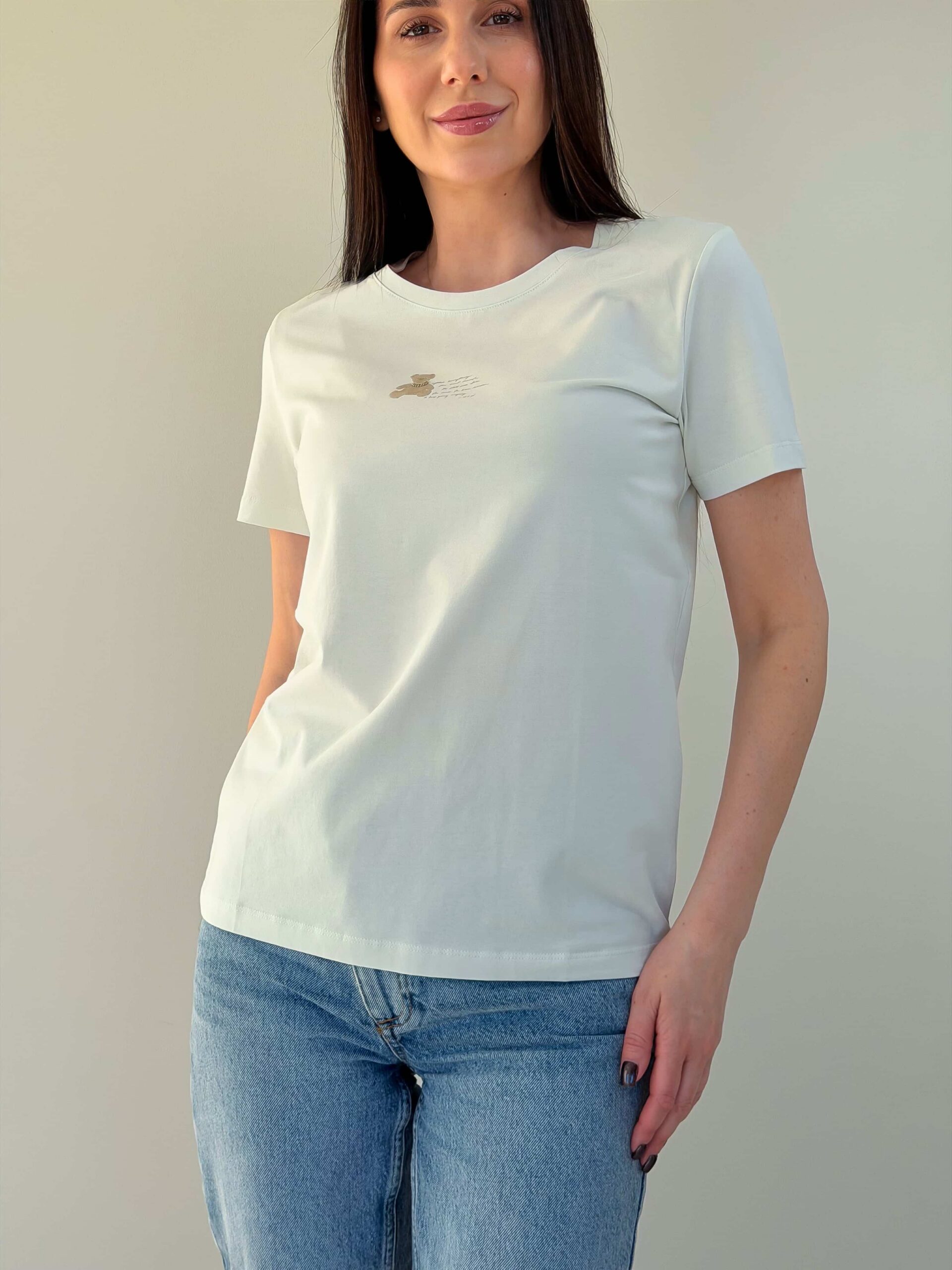 T-särk karukesega on hubane ja stiilne baasmudel, saadaval mitmes värvitoonis. Õrn karukujuline trükis rinnal annab rõivale mängulise iseloomu ja muudab selle silmapaistvaks osaks garderoobist. Kangas on pehme ja meeldiv naha vastas, mistõttu T-särk sobib mugavaks igapäevaseks kandmiseks. Lühikesed varrukad ja klassikaline sirge lõige tagavad universaalsuse ja lihtsa kombineeritavuse. T-särk karukesega sobib hästi teksade, seelikute ja lühikeste pükstega. See on ideaalne jalutuskäikudeks, sõpradega kohtumiseks ja koduseks kandmiseks.
