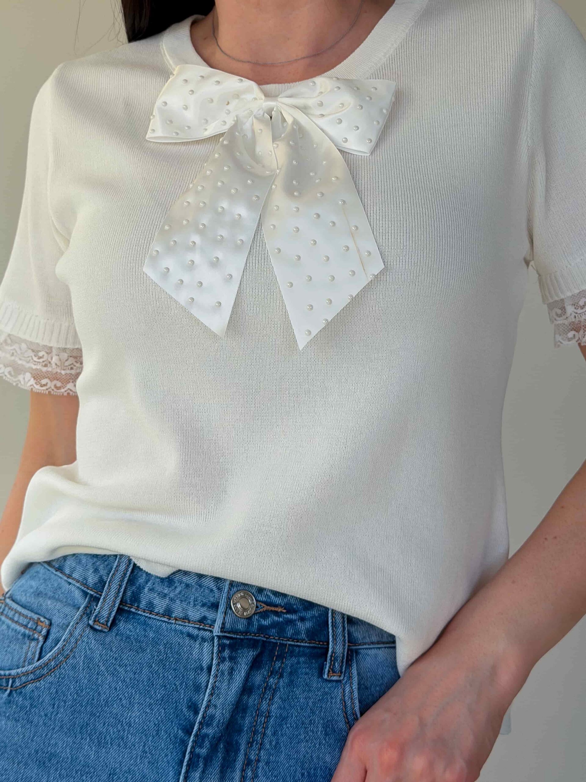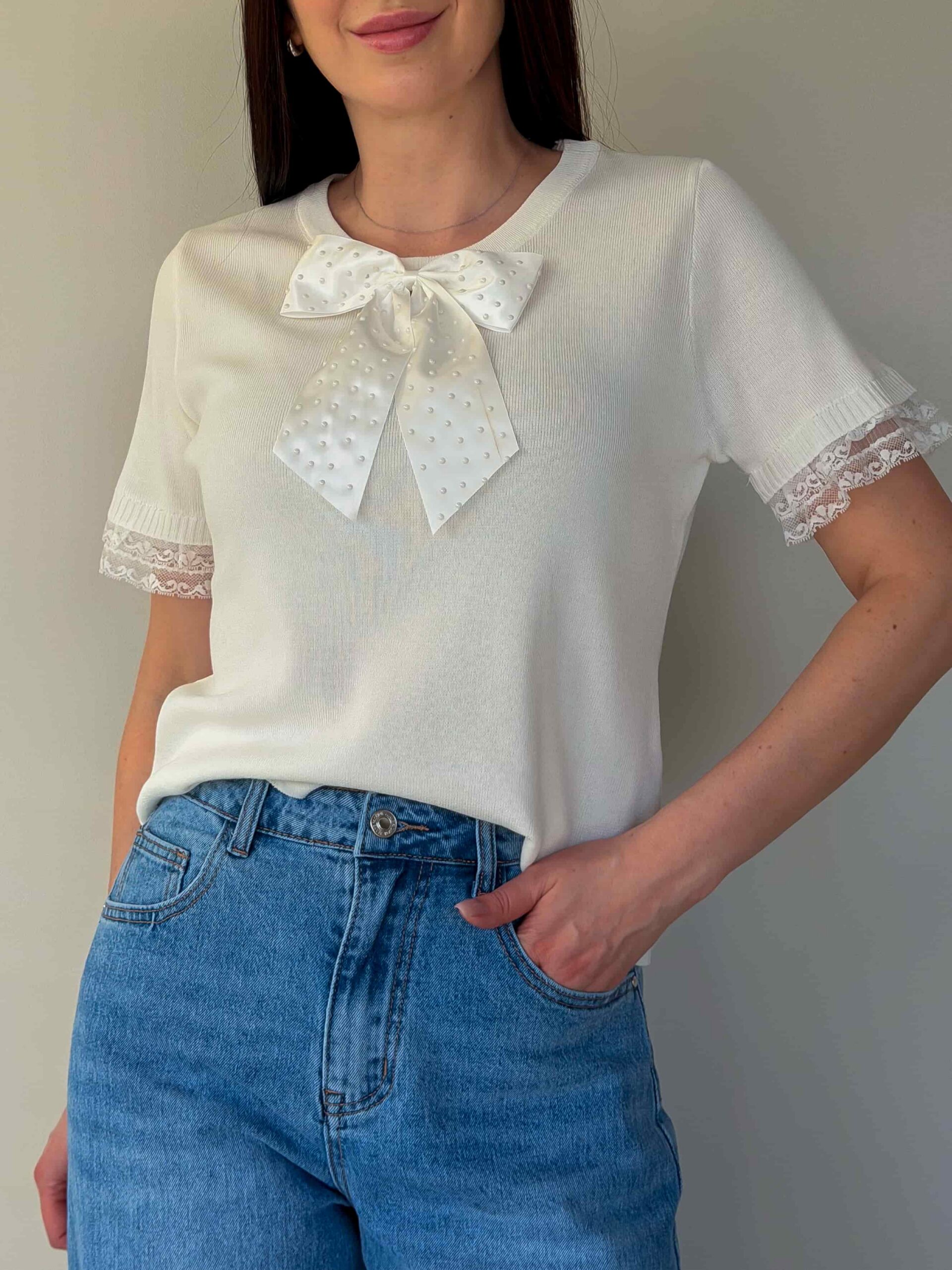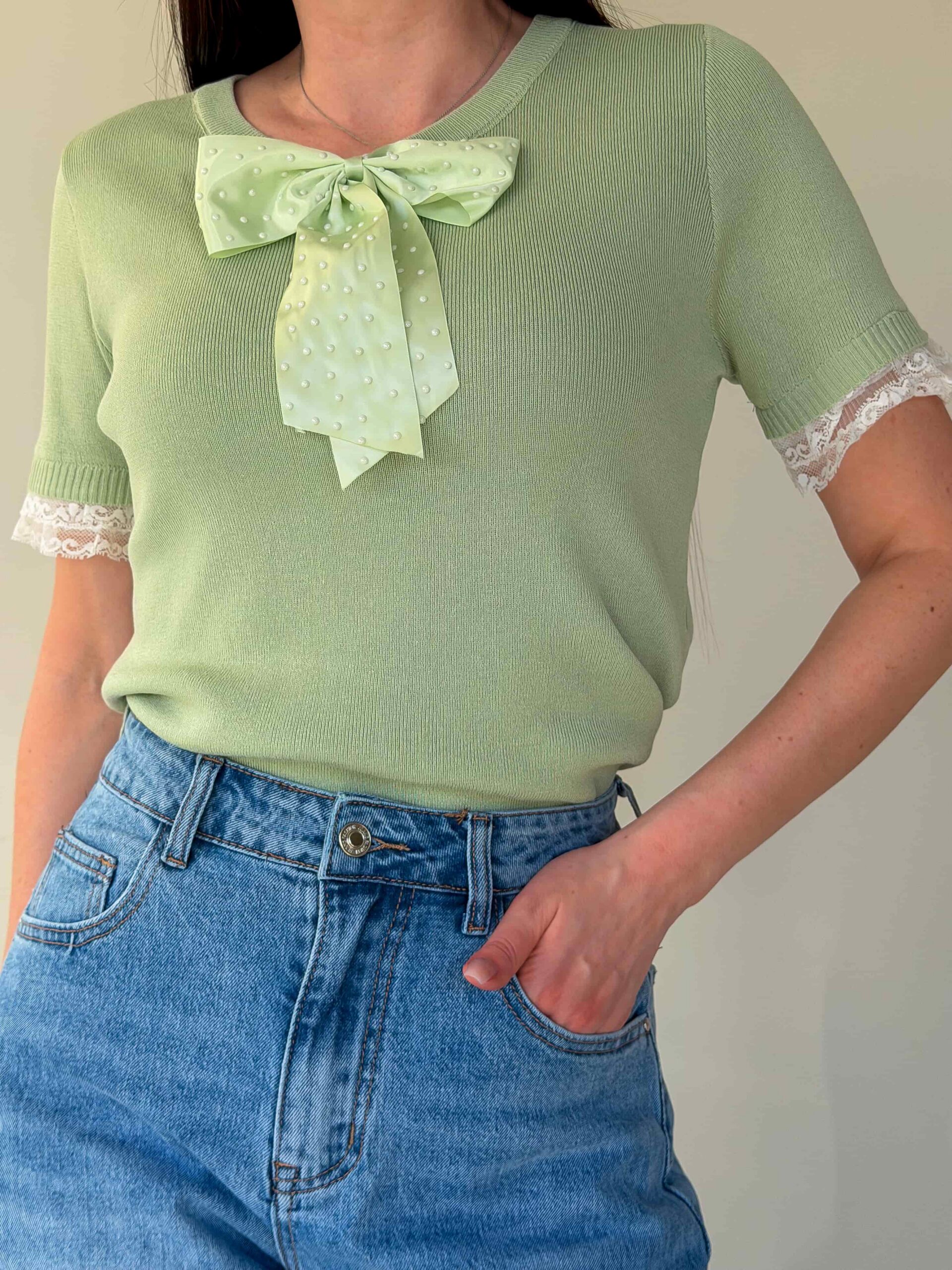 Trikookangast topp paelaga on graatsiline ja praktiline ese igapäevaseks ning pidulikuks kandmiseks. Pehme elastne trikoo järgneb õrnalt siluetile, tagades mugavuse ja liikumisvabaduse ning säilitades oma kuju pärast pesu. Kaunistav pael dekolteel lisab romantilist aktsenti, muutes lihtsa komplekti hetkega pidulikumaks. Topp on saadaval mitmes värvitoonis, muutes selle universaalseks seelikute, teksade ja pükstega kombineerimiseks. Sobib kihiliste komplektide loomiseks – kanda jakiga, kardiganiga või eraldiseisvana soojematel päevadel.