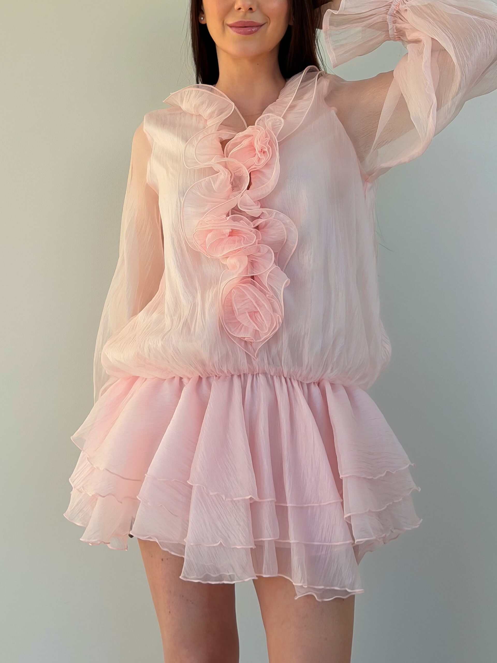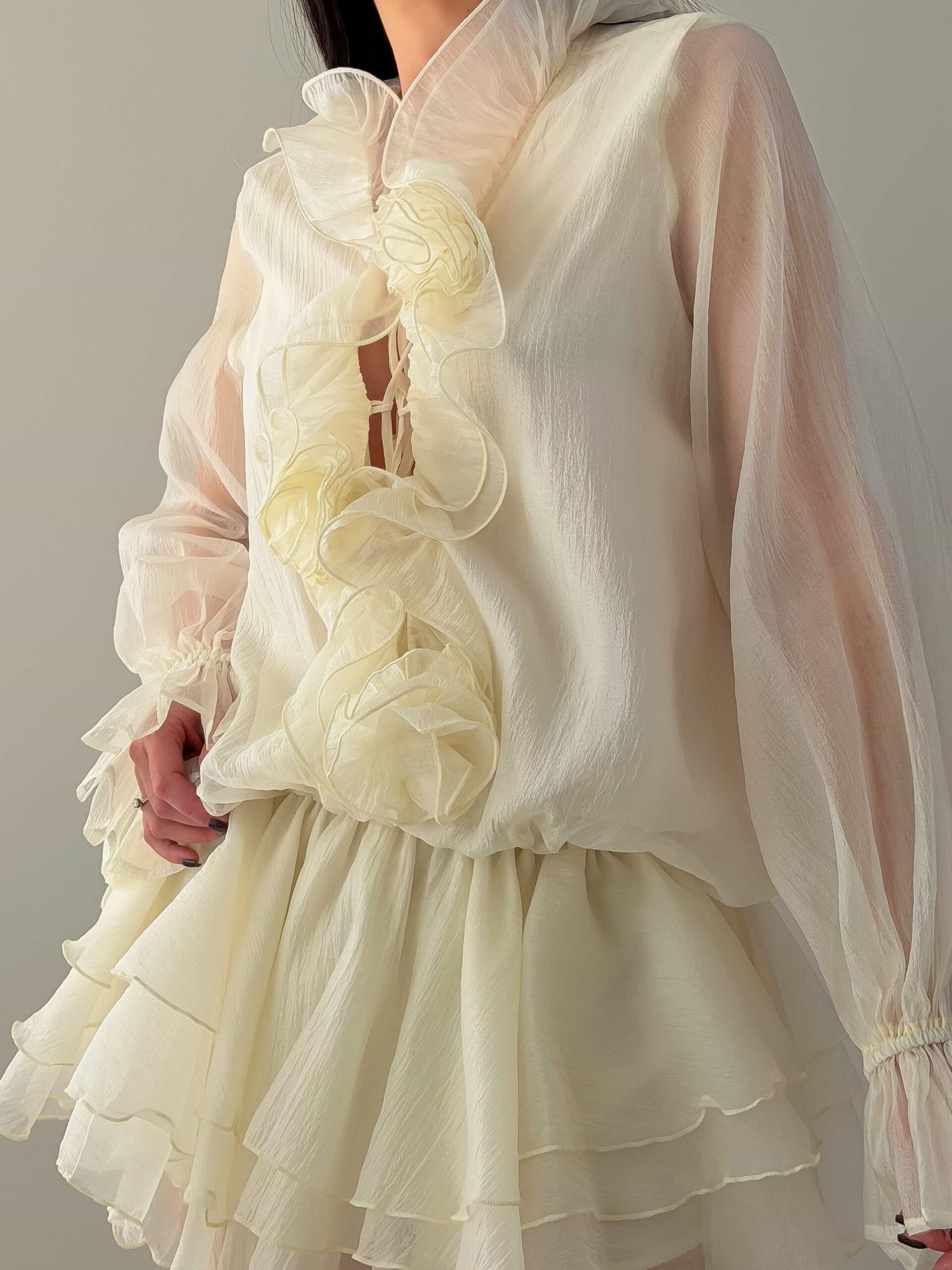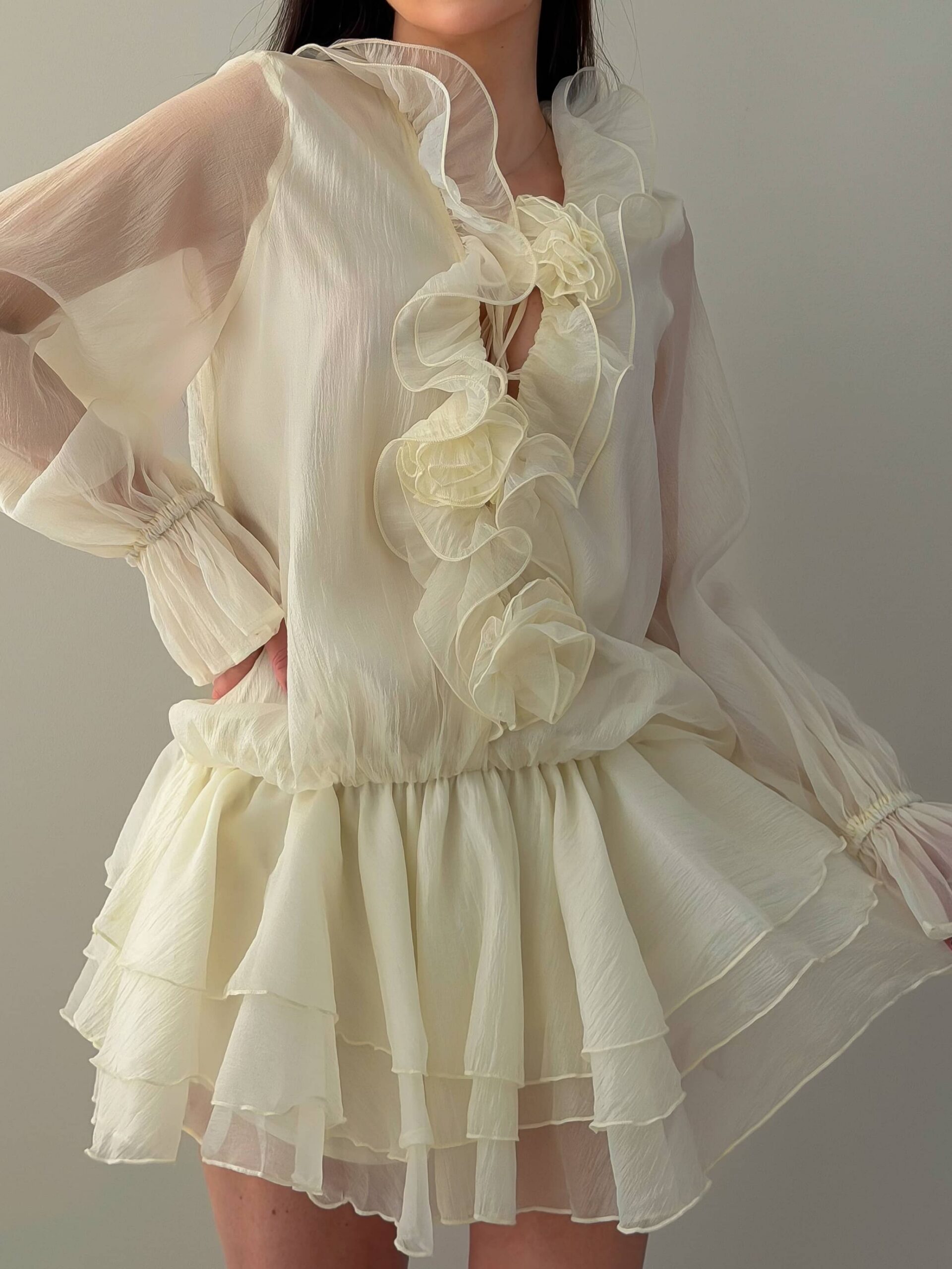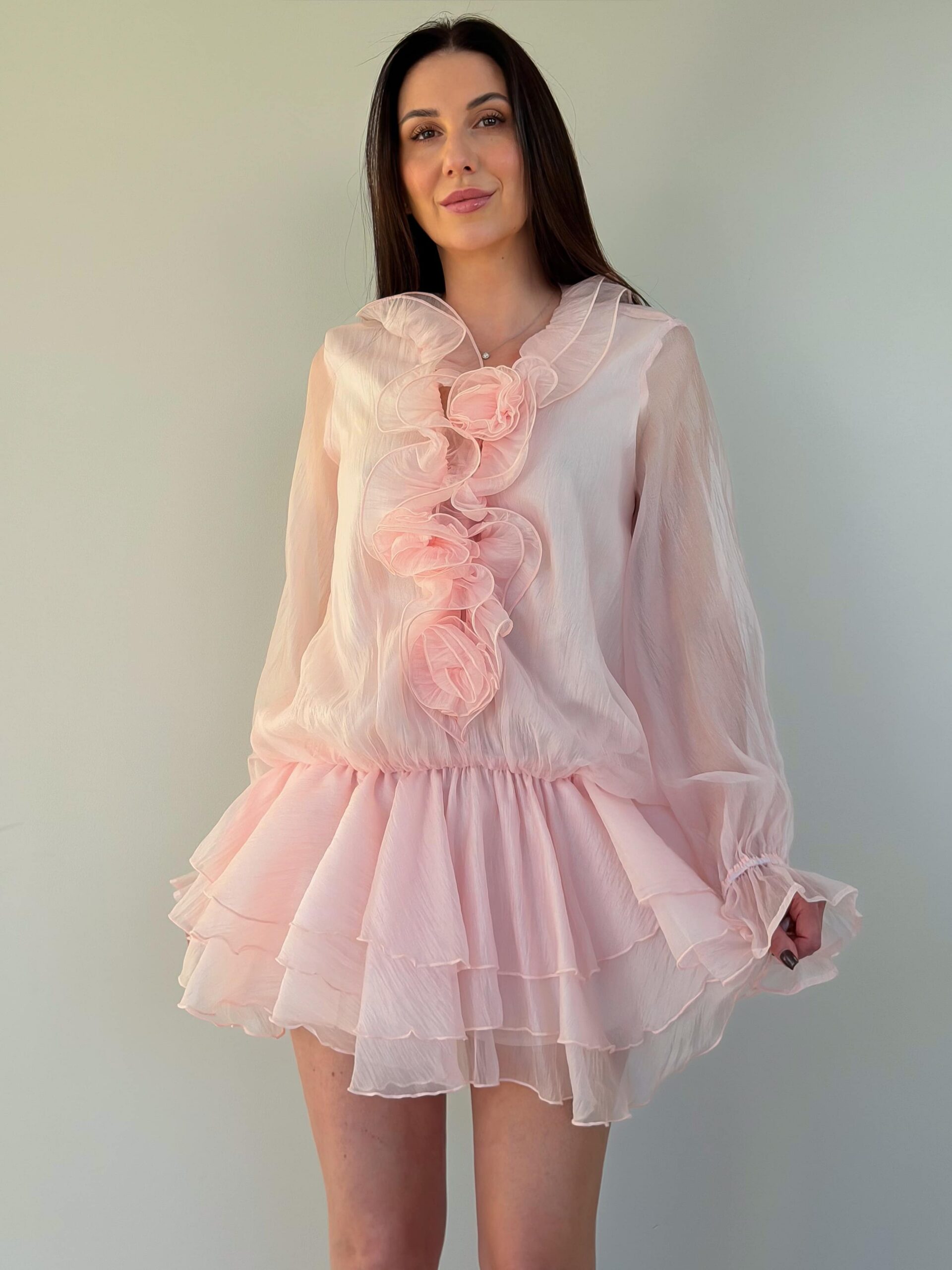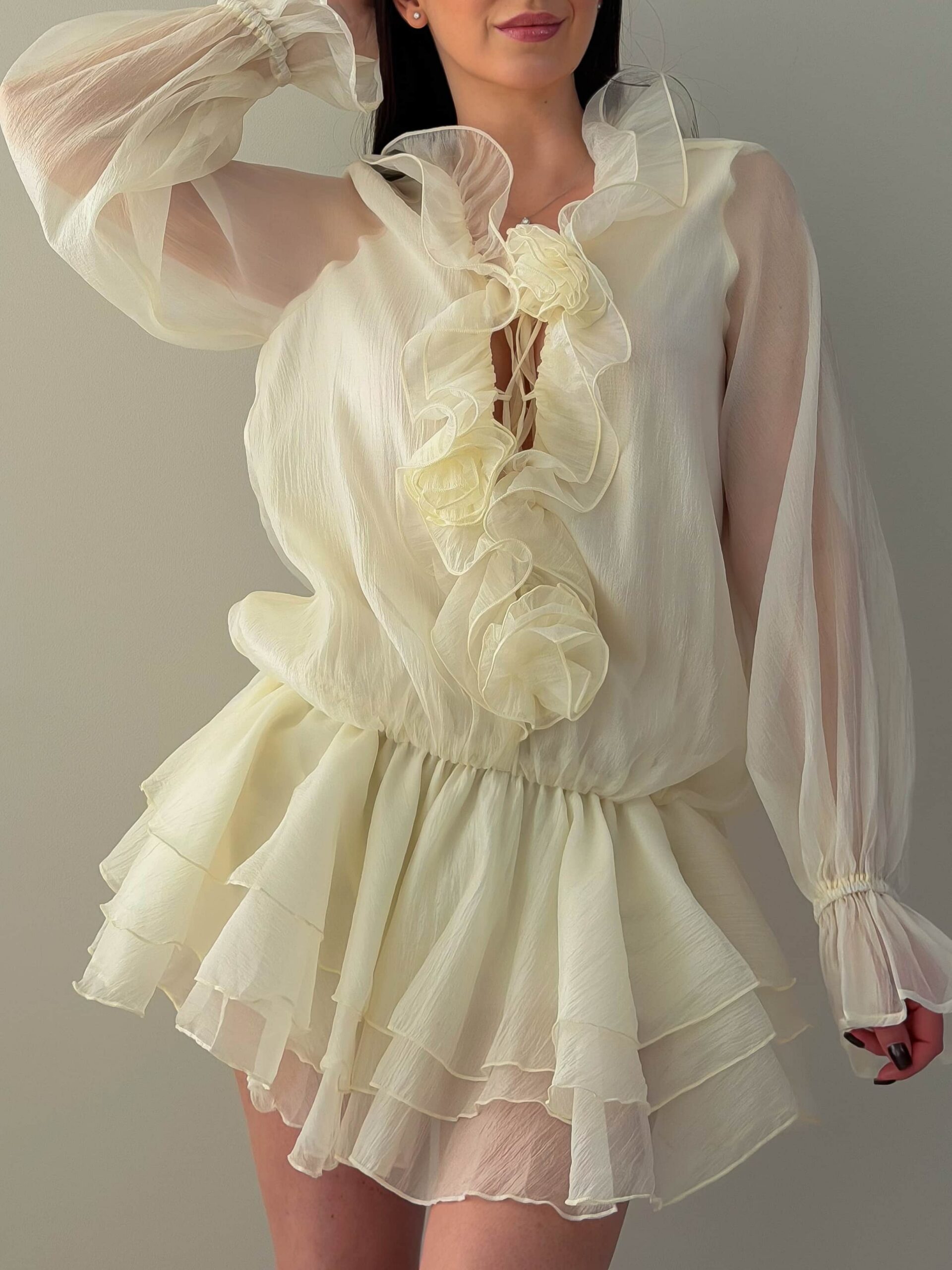 Võluv volangidega kleit – naiselikkuse ja kerguse kehastus. Õhuline kleit sobib ideaalselt romantilisteks jalutuskäikudeks, kohtinguteks ja erilisteks sündmusteks. Mahukad volangid varrukatel loovad õrna silueti ja püüavad pilke. Volangidega kleit on valmistatud langevast materjalist, mis tagab maksimaalse mugavuse kandmisel. Kleidi alla integreeritud lühikesed püksid annavad liikumisvabaduse ja kindlustunde. Romantika igas detailis – see iseloomustab seda stiilset mudelit. Kleiti on lihtne sobitada nii tossude, kingade kui ka sandaalidega.