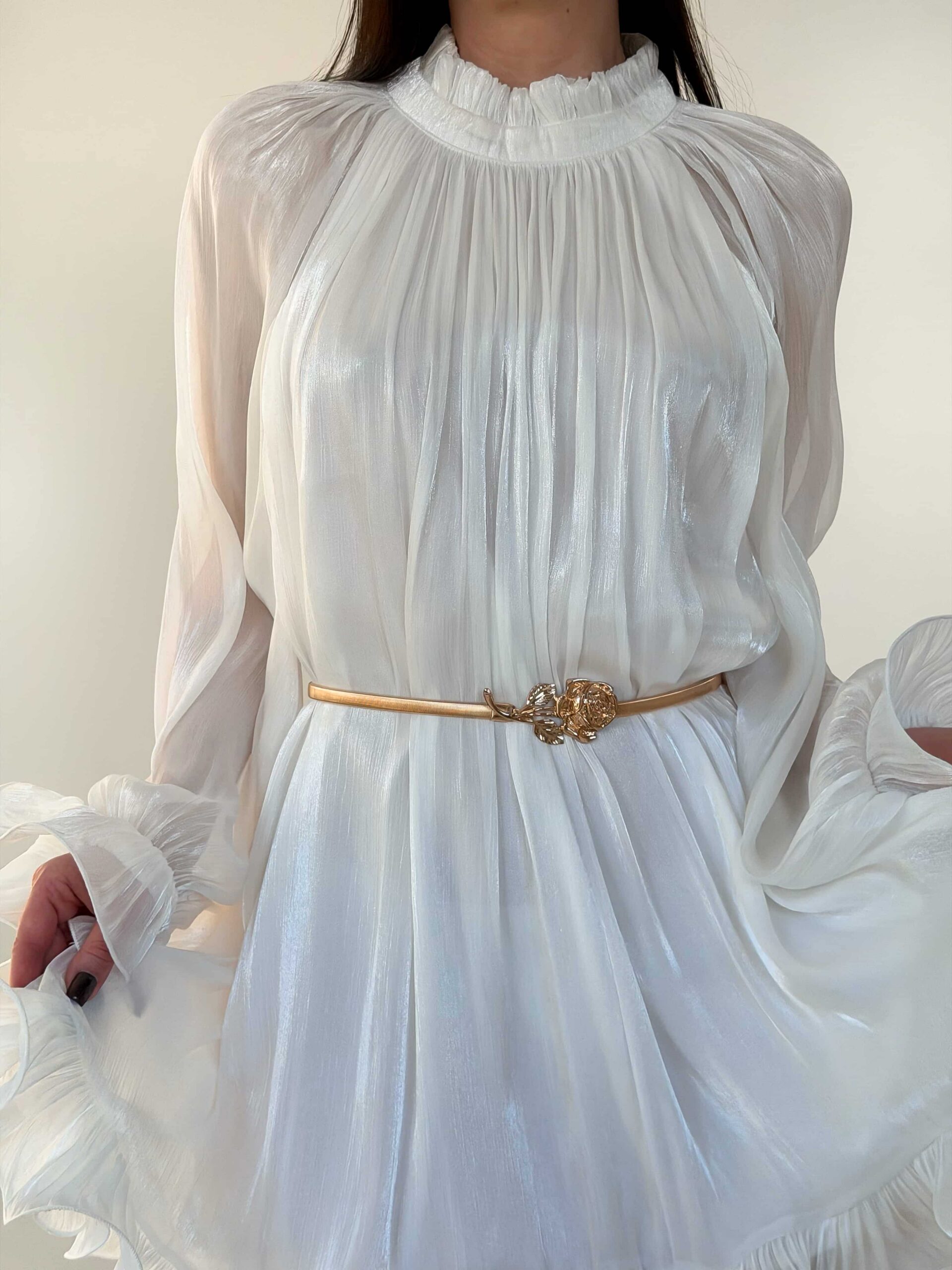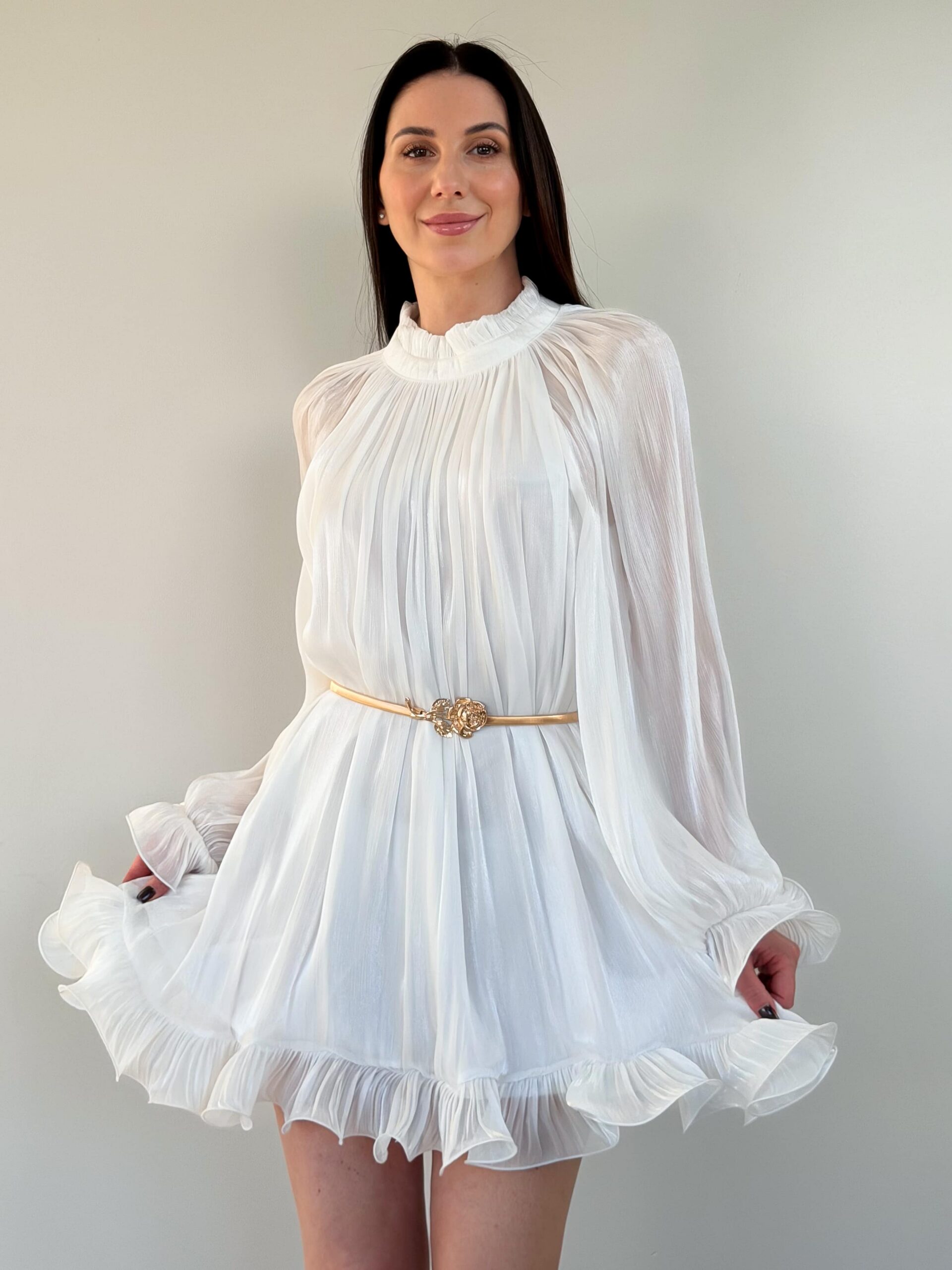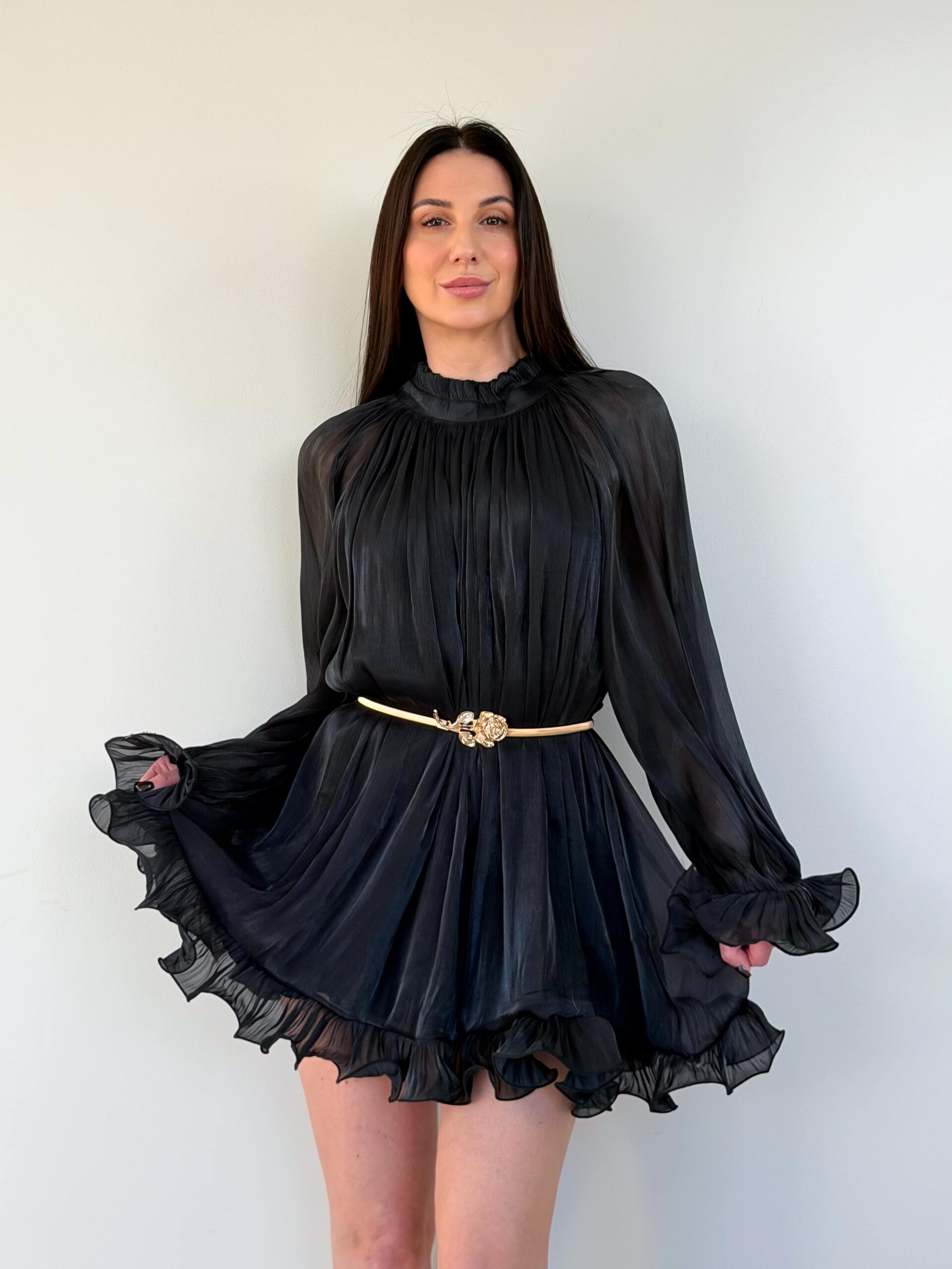 Kleit vööga on pidulik minipikkuses mudel drapeeringu ja vaba lõikega. Komplekti kuulub vöö, mis võimaldab muuta istuvust ja luua erinevaid siluette. Vaba lõige tagab mugavuse ja liikumisvabaduse. Drapeering lisab volüümi ja visuaalset huvitavust, muutes välimuse väljendusrikkamaks. Minipikkus rõhutab jalgu ja loob moodsa ning julge ilme. Kleit vööga sobib pidulikeks sündmusteks ja õhtusteks väljaminekuteks. Elegantne viimistlus ja kvaliteetsed detailid teevad sellest silmapaistva ja praktilise eseme garderoobis.