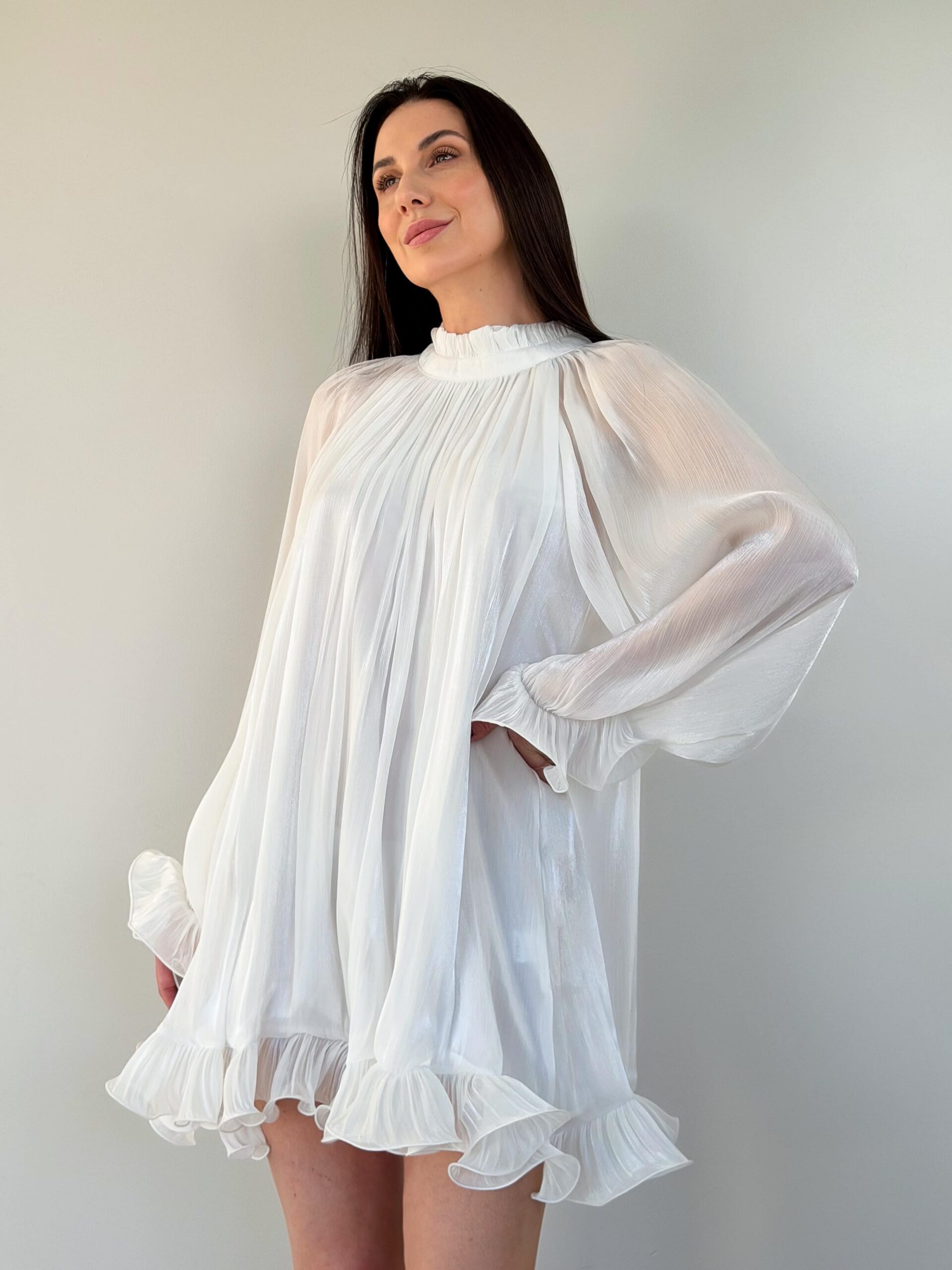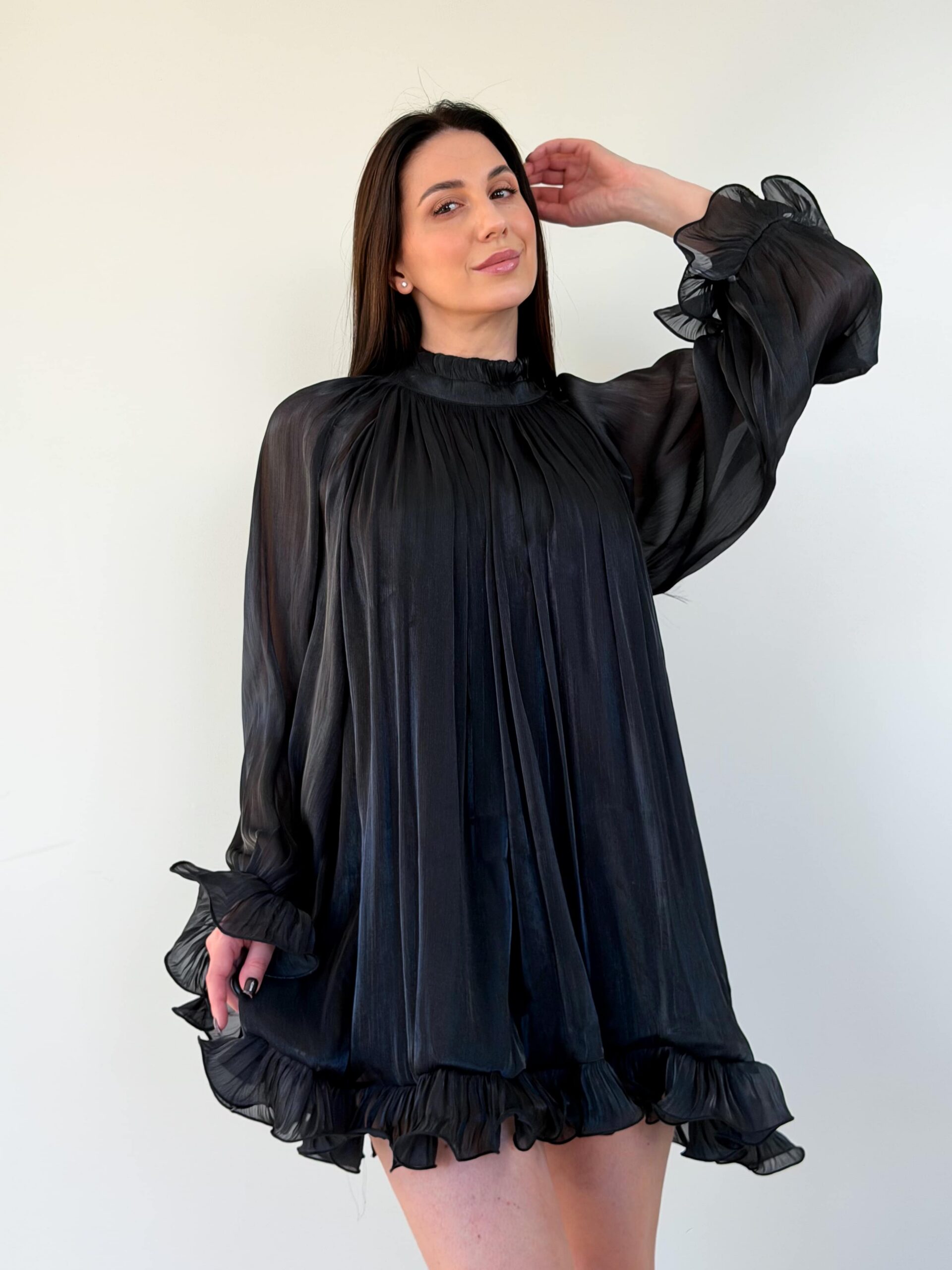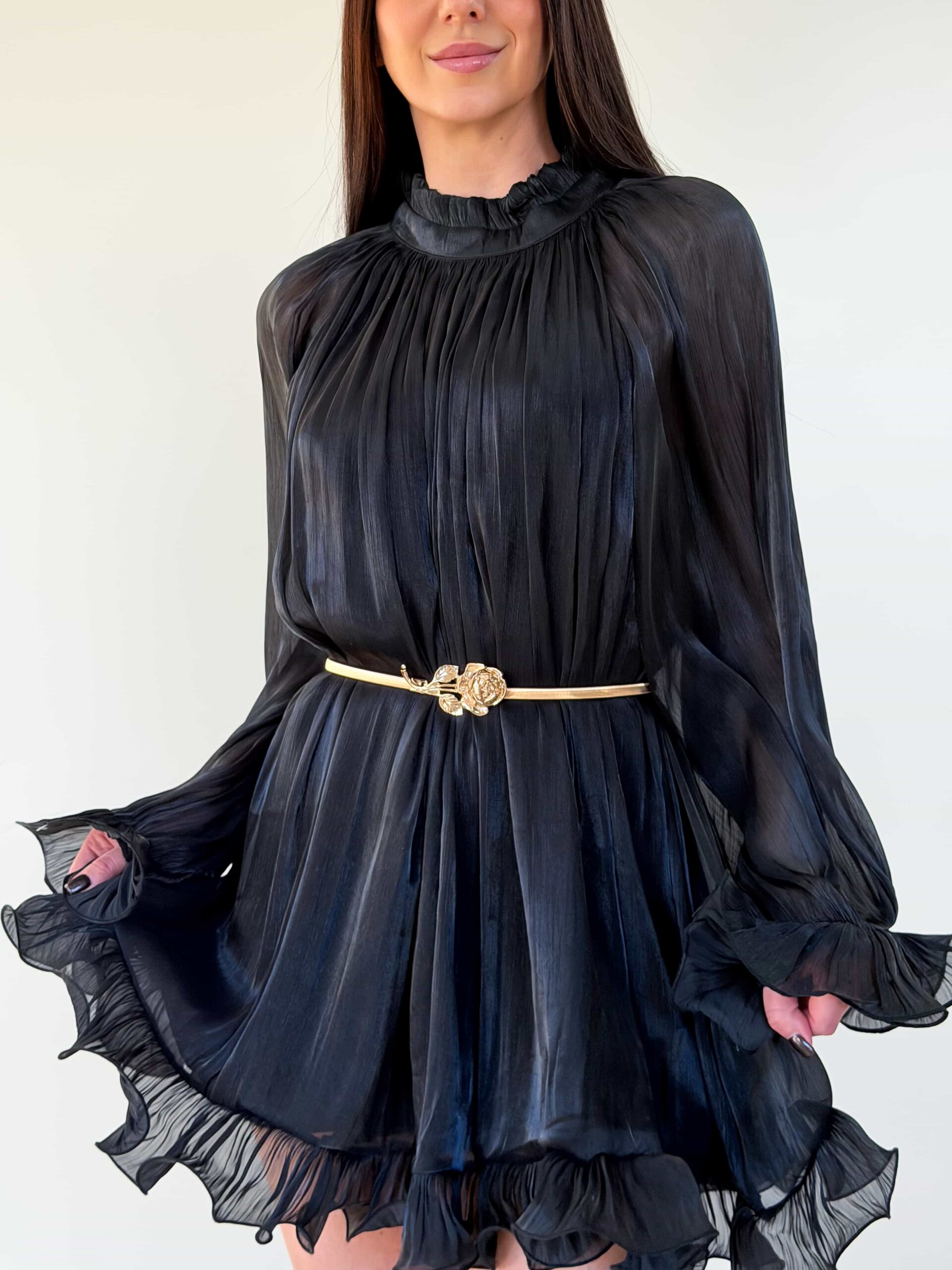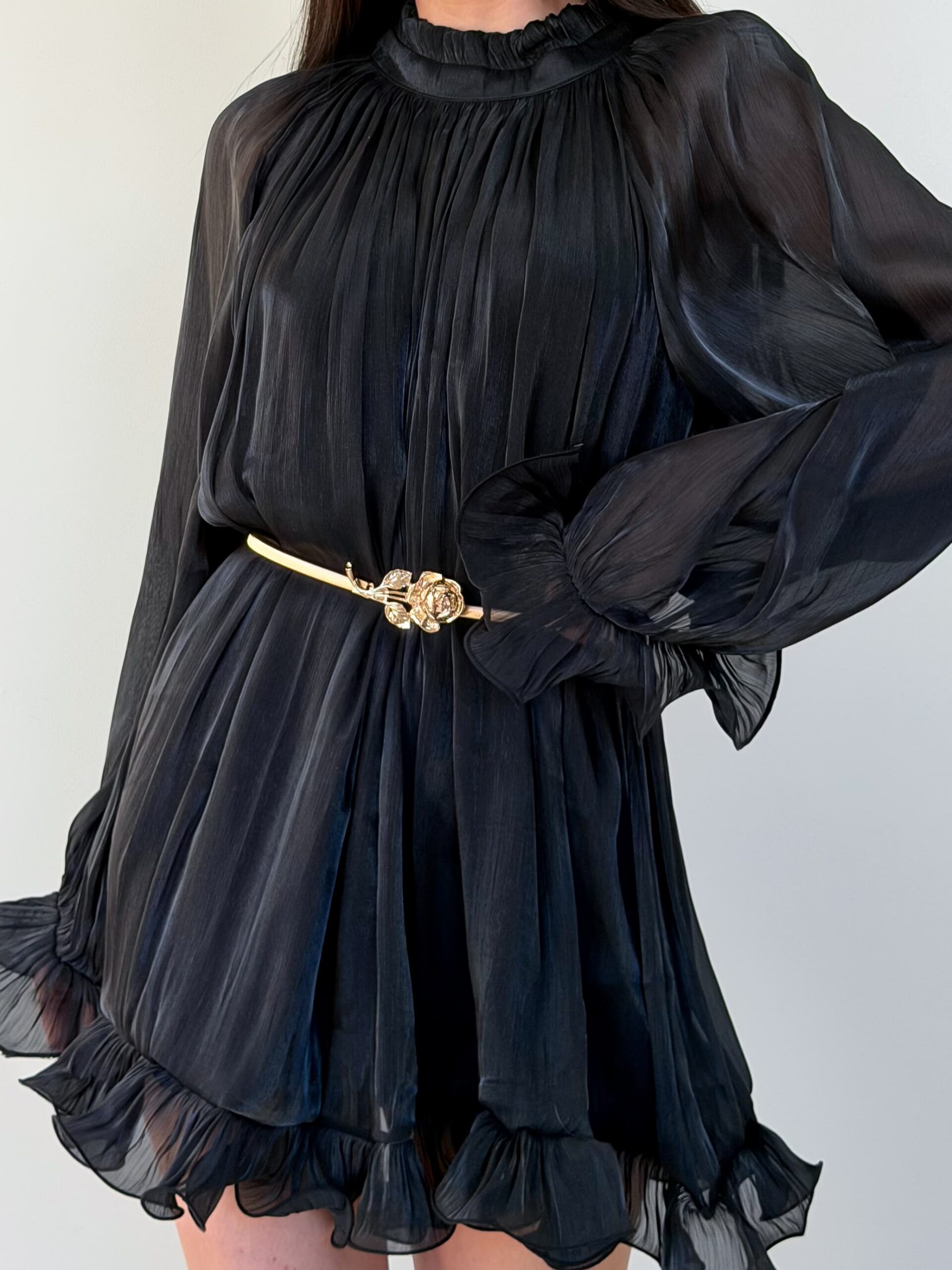 Kleit vööga on pidulik minipikkuses mudel drapeeringu ja vaba lõikega. Komplekti kuulub vöö, mis võimaldab muuta istuvust ja luua erinevaid siluette. Vaba lõige tagab mugavuse ja liikumisvabaduse. Drapeering lisab volüümi ja visuaalset huvitavust, muutes välimuse väljendusrikkamaks. Minipikkus rõhutab jalgu ja loob moodsa ning julge ilme. Kleit vööga sobib pidulikeks sündmusteks ja õhtusteks väljaminekuteks. Elegantne viimistlus ja kvaliteetsed detailid teevad sellest silmapaistva ja praktilise eseme garderoobis.