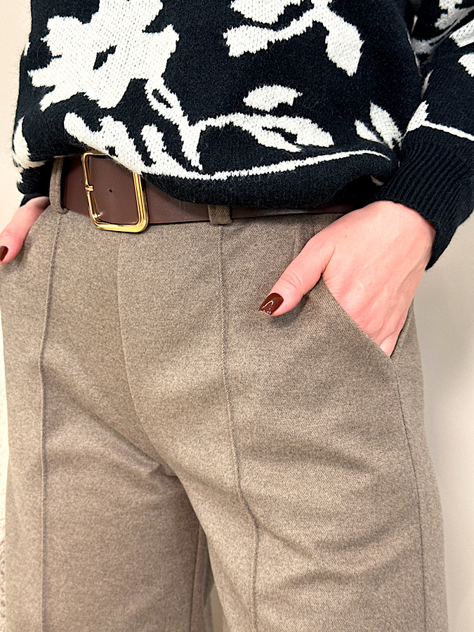 Эти свободные брюки от Armonti создают уют благодаря мягкому тёплому материалу, а фасон — изюминку с помощью стрелок-прострочек.