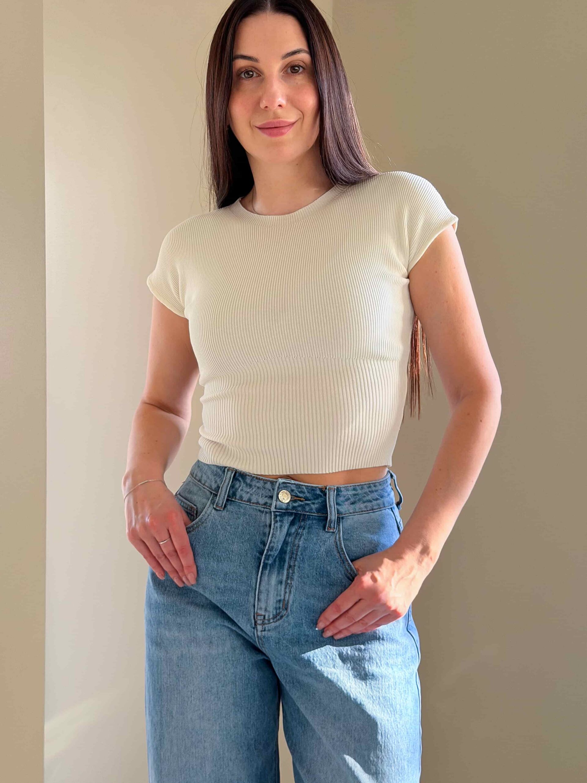 Базовый топ из вискозы — базовая вещь, выполненная из натуральной вискозы. Модель доступна в трёх цветах. Ткань тянется, подстраиваясь под вашу фигуру. Продуманный крой обеспечивает поддержку и комфорт в течение всего дня. Этот базовый топ из вискозы прекрасно служит основой капсулы: он гармонирует с джинсами, брюками и юбками. Также хорошо он смотрится под пиджаком или кардиганом и выступает как самостоятельный элемент образа для прогулок, офиса и встреч. Натуральная вискоза дарит коже воздухопроницаемость и мягкость, а эластичность ткани обеспечивает удобную посадку без сдавливания; универсальная длина и лаконичный дизайн делают модель практичной базой на каждый день.