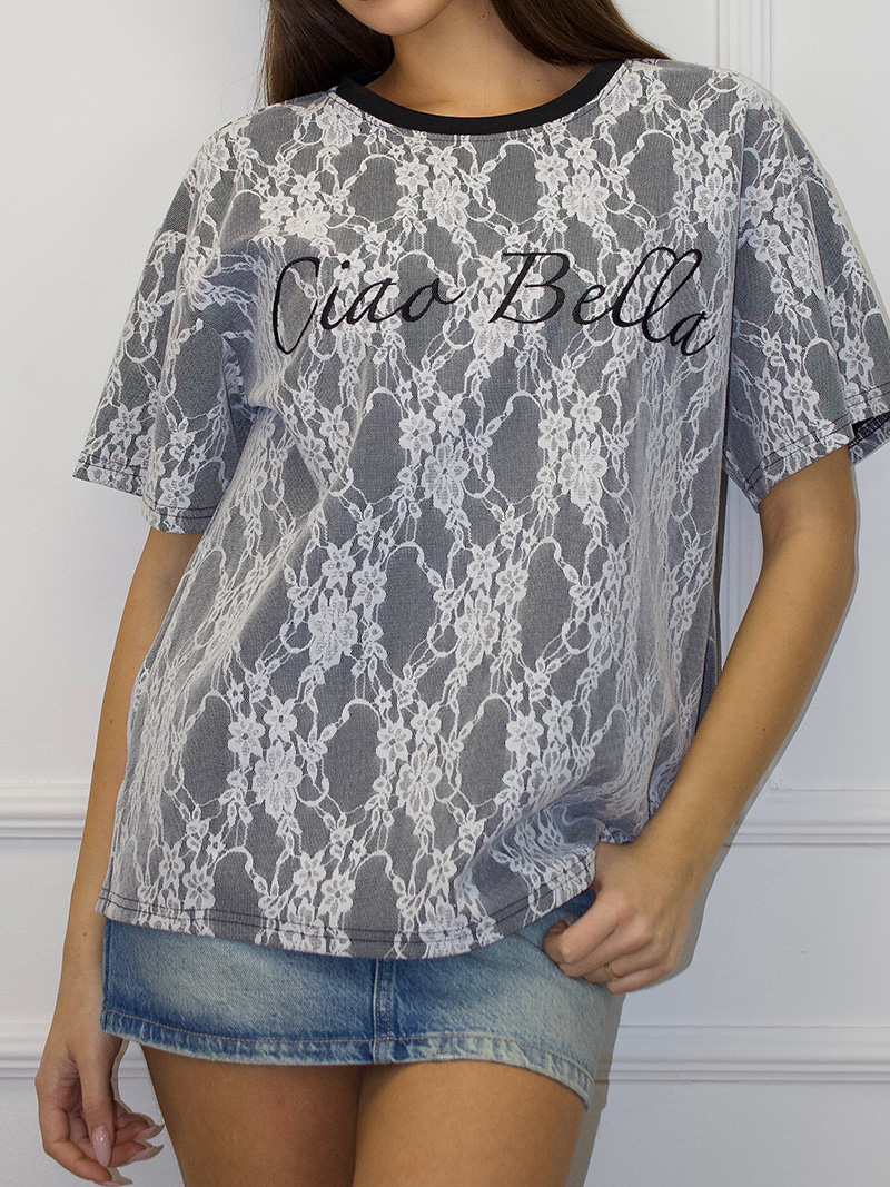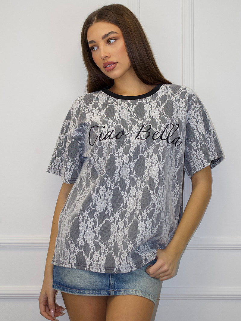 Женская футболка свободного кроя. Стильная женская футболка с оригинальным кружевом на груди идеально подчеркнет ваш индивидуальный стиль.