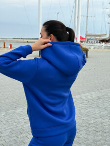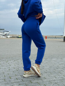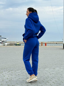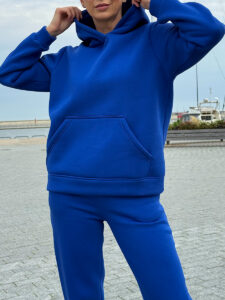 Костюм включает классическое худи, с двойным капюшоном и вместительным карманом-кенгуру. Штаны — джоггеры с боковыми карманами и эластичным поясом, для максимально удобной посадки.
