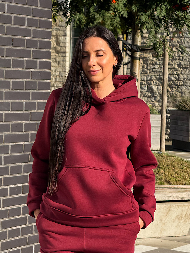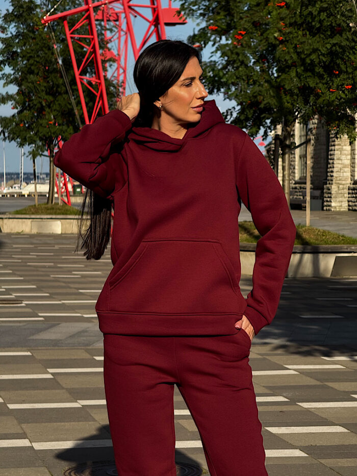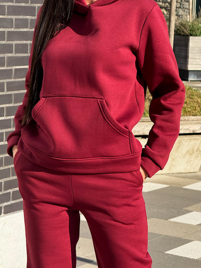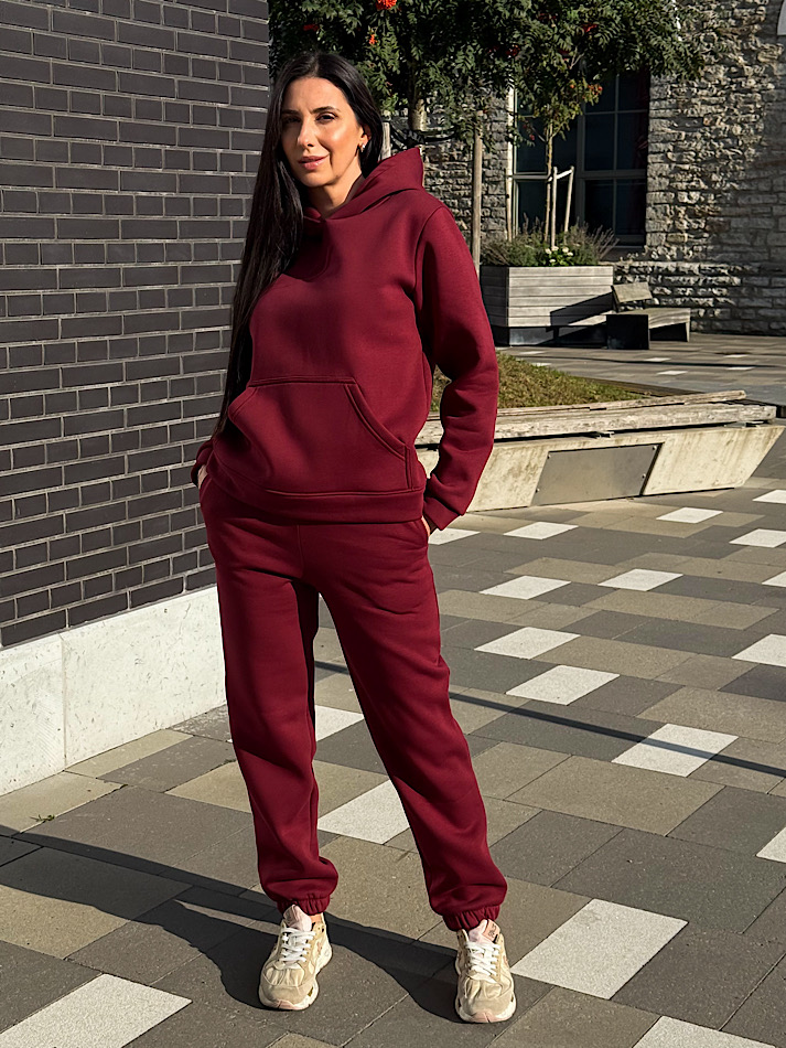 Костюм включает классическое худи, с двойным капюшоном и вместительным карманом-кенгуру. Штаны — джоггеры с боковыми карманами и эластичным поясом, для максимально удобной посадки.
