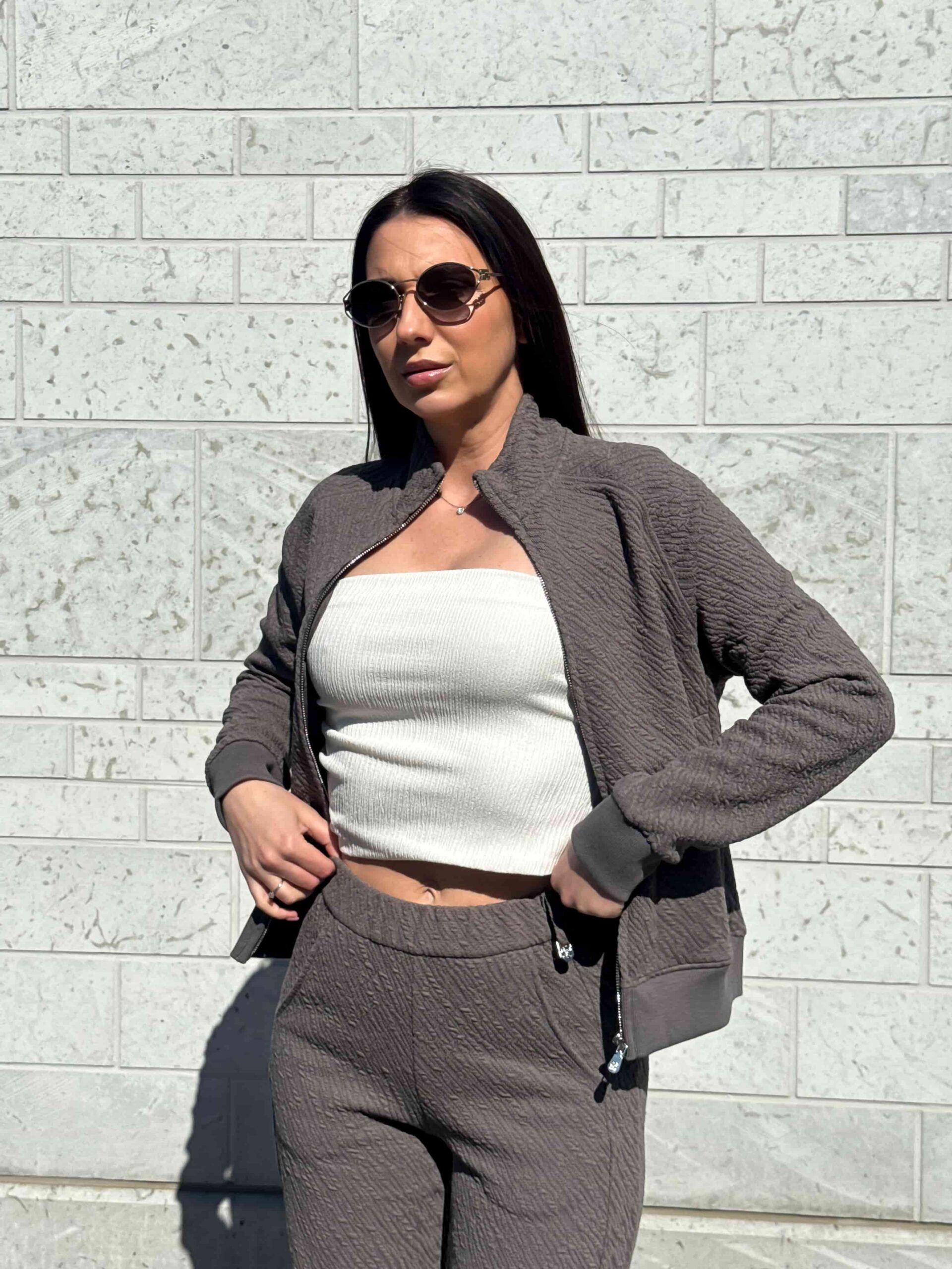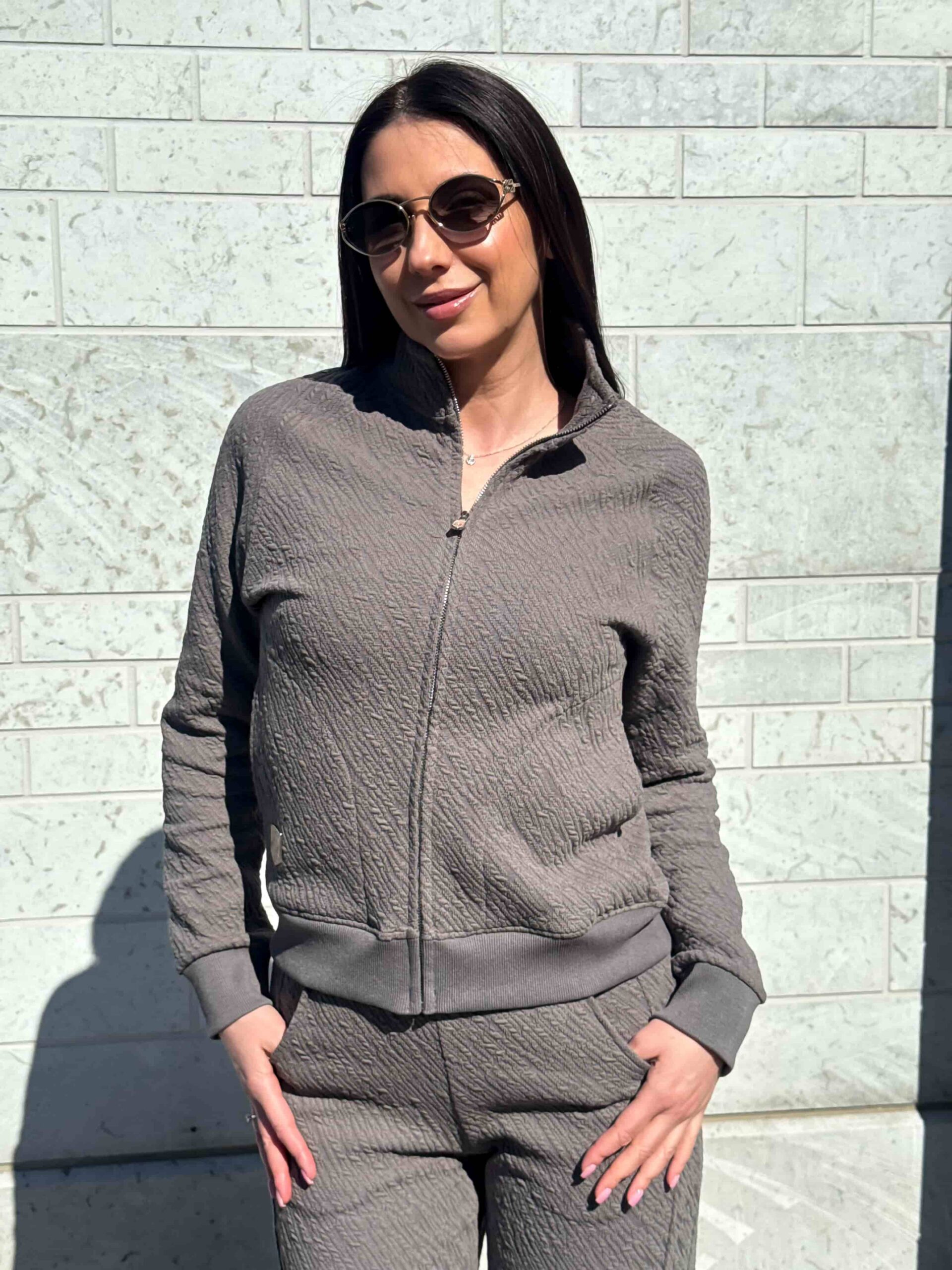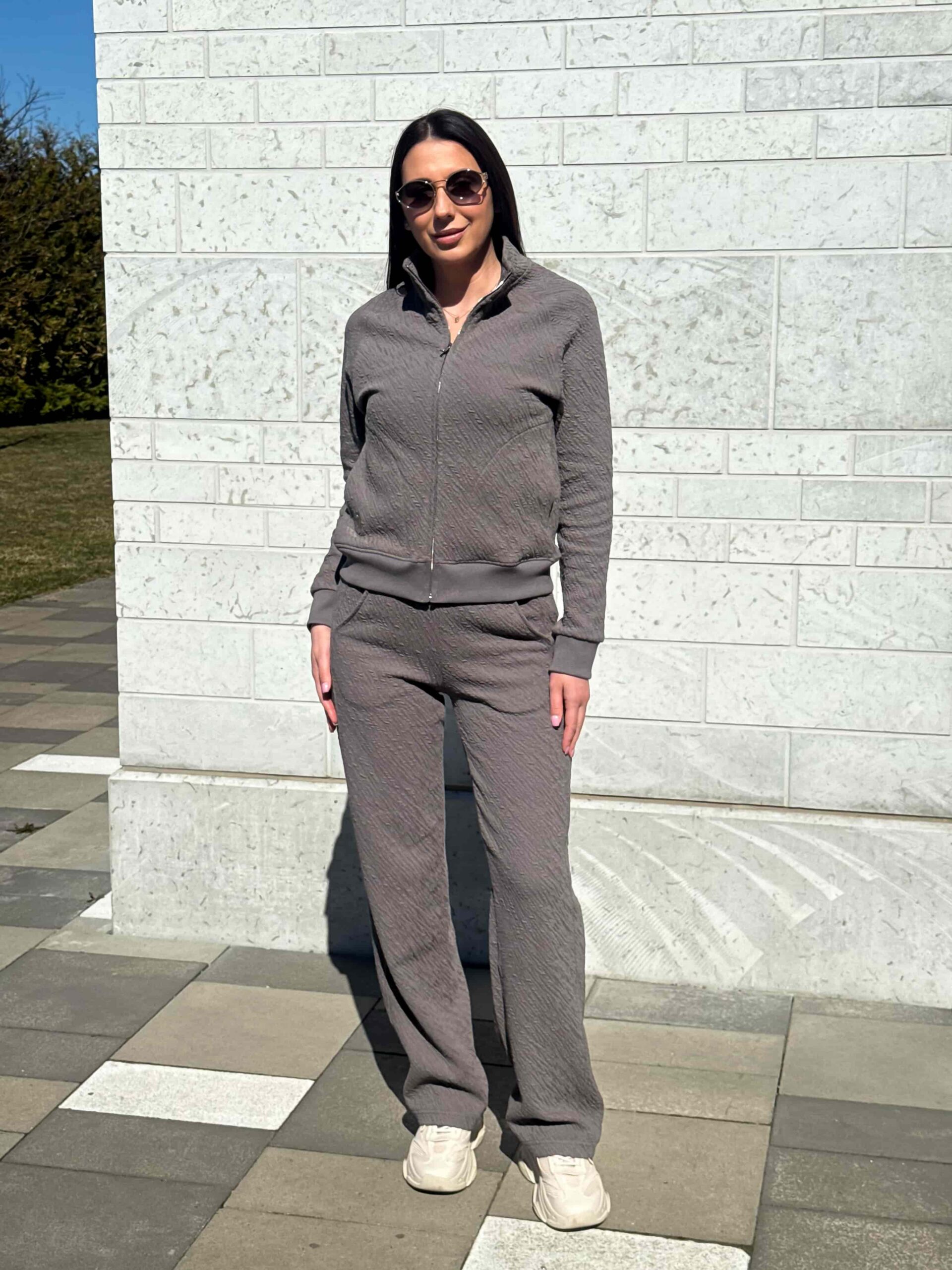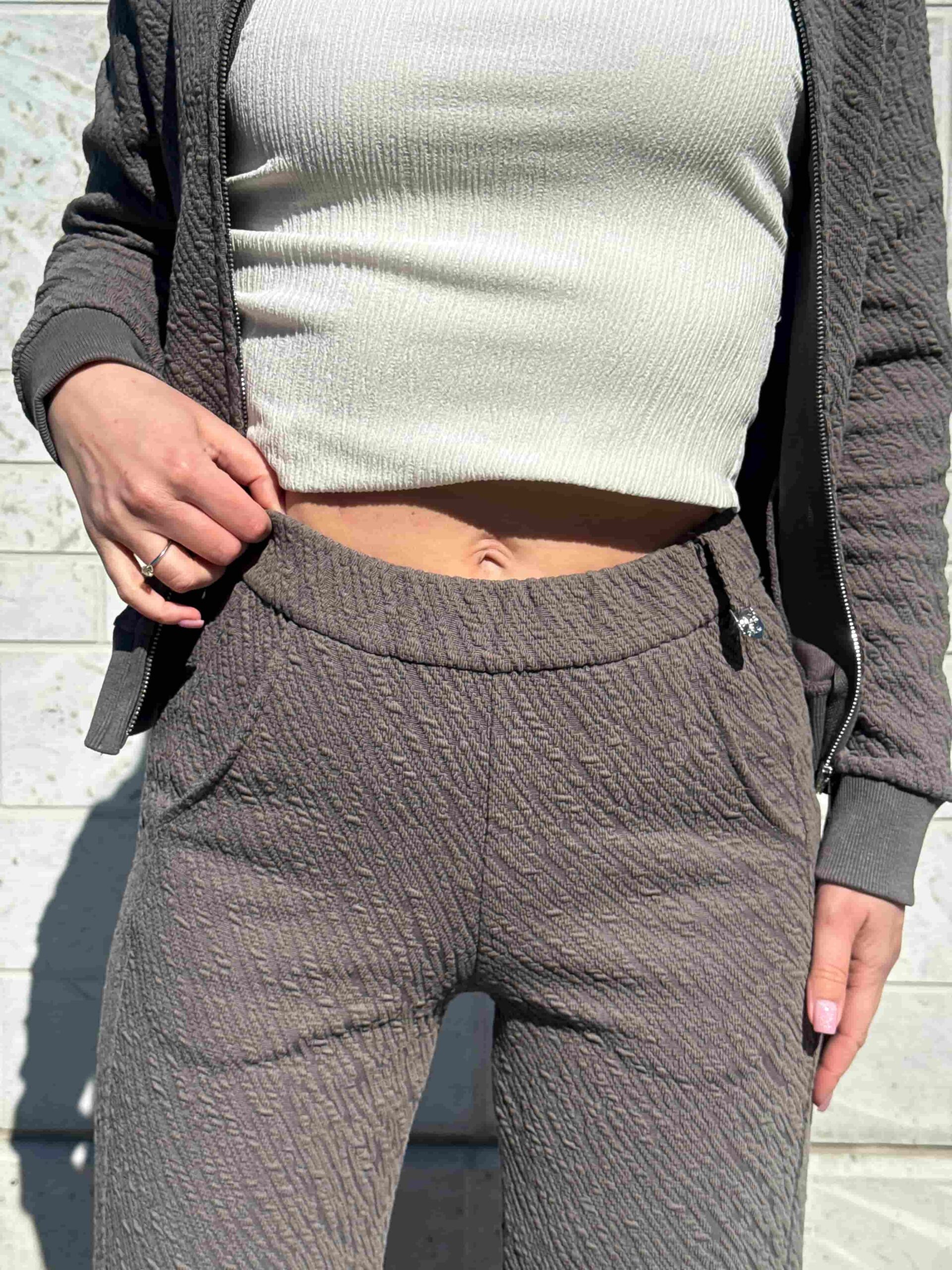 Этот стильный костюм из текстурной ткани подарит вам невероятное ощущение уюта и комфорта. Современный комплект состоит из практичных брюк и удобной кофты на надежной молнии. Оригинальная текстура на ткани придает изделию дорогой вид и приятную на ощупь поверхность. Удобный ворот-стойка надежно защищает шею от ветра и создает актуальный спортивный силуэт. Функциональные карманы позволяют всегда держать под рукой важные мелочи или согреть ладони. Костюм из текстурной ткани идеально подходит для активного отдыха, поездок за город или повседневных дел.