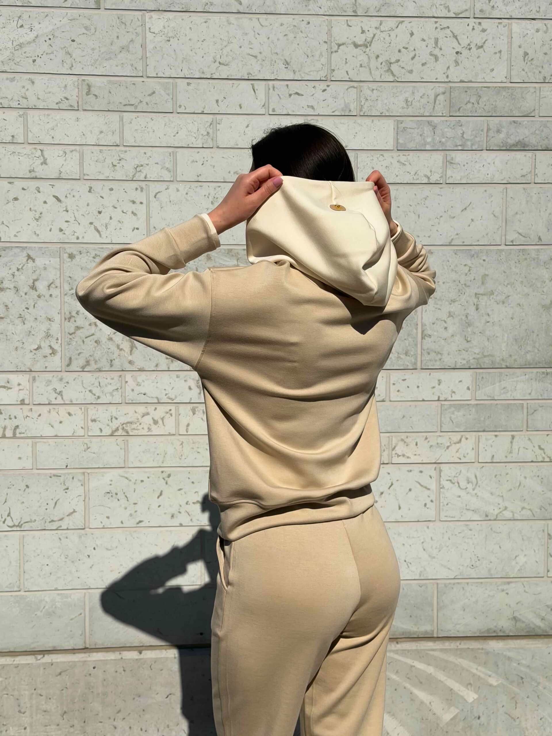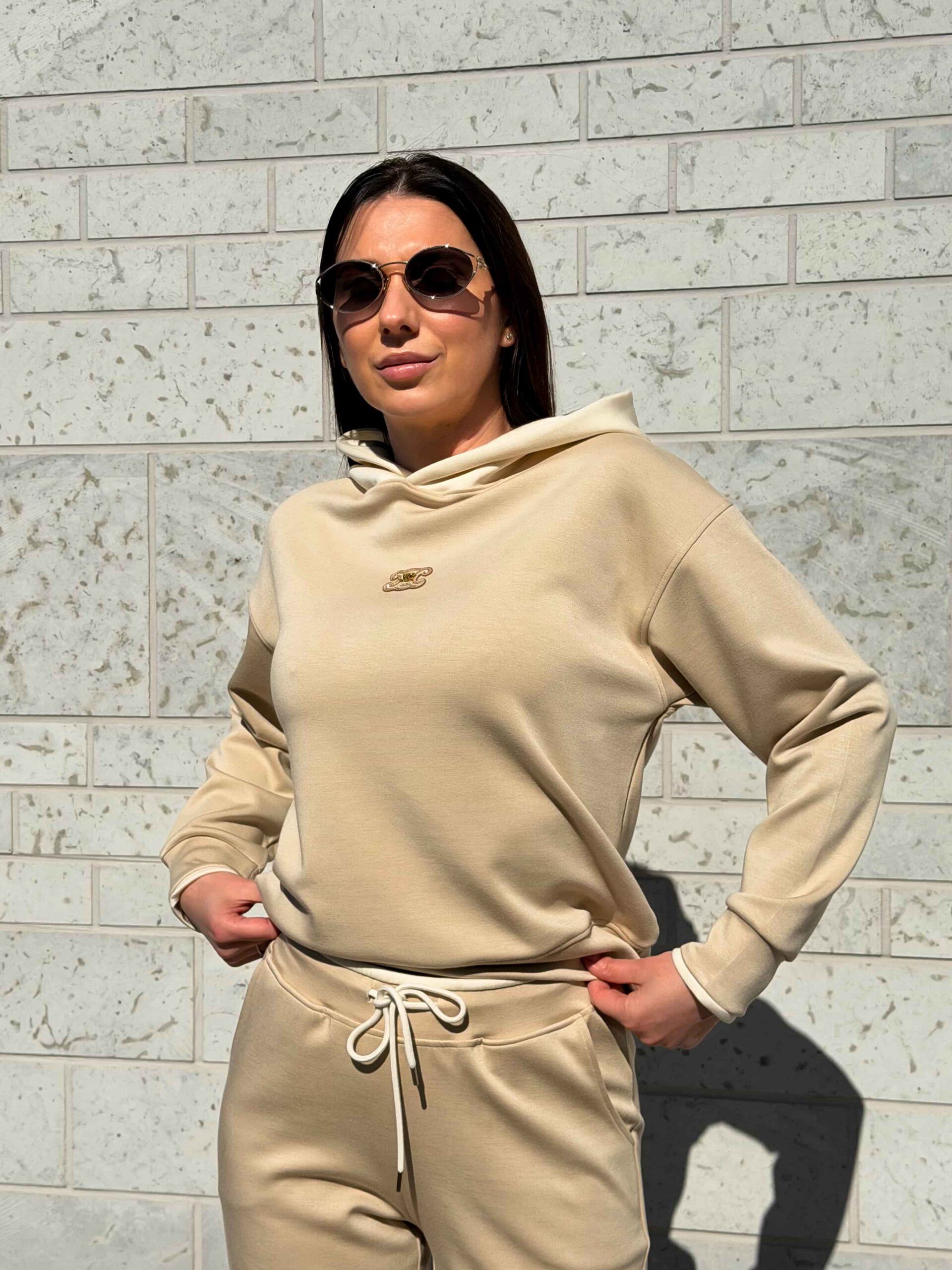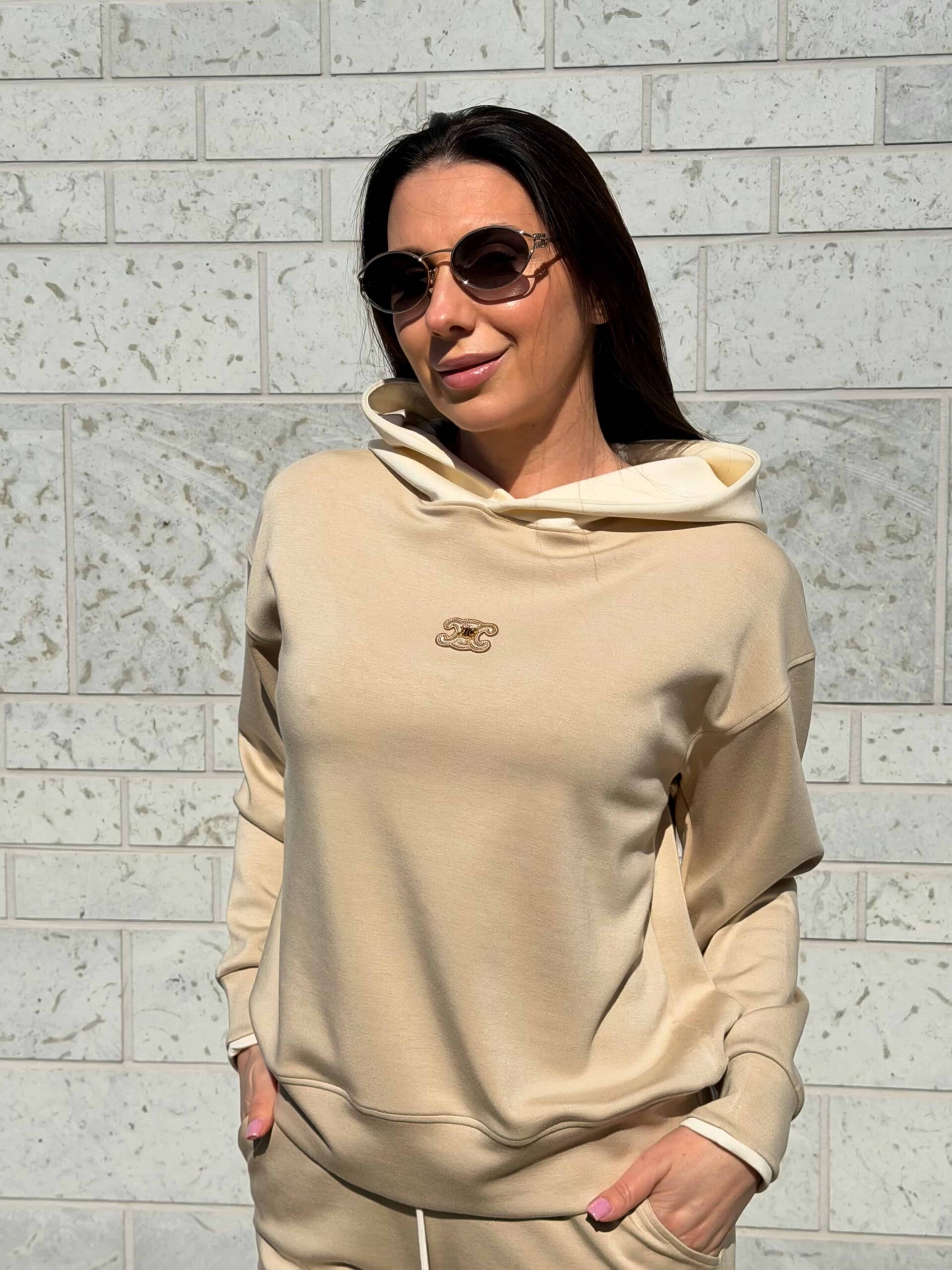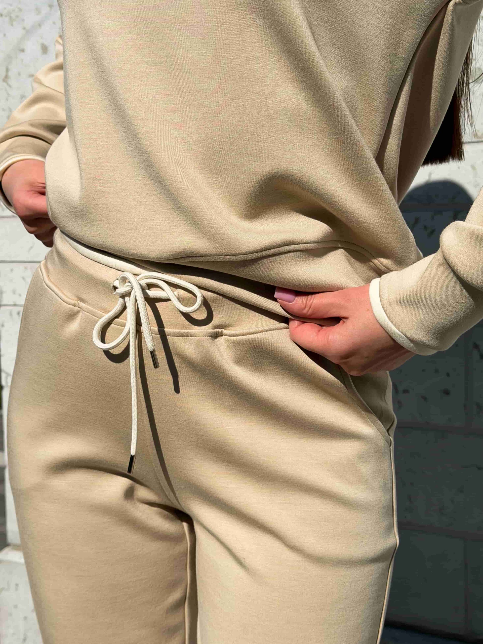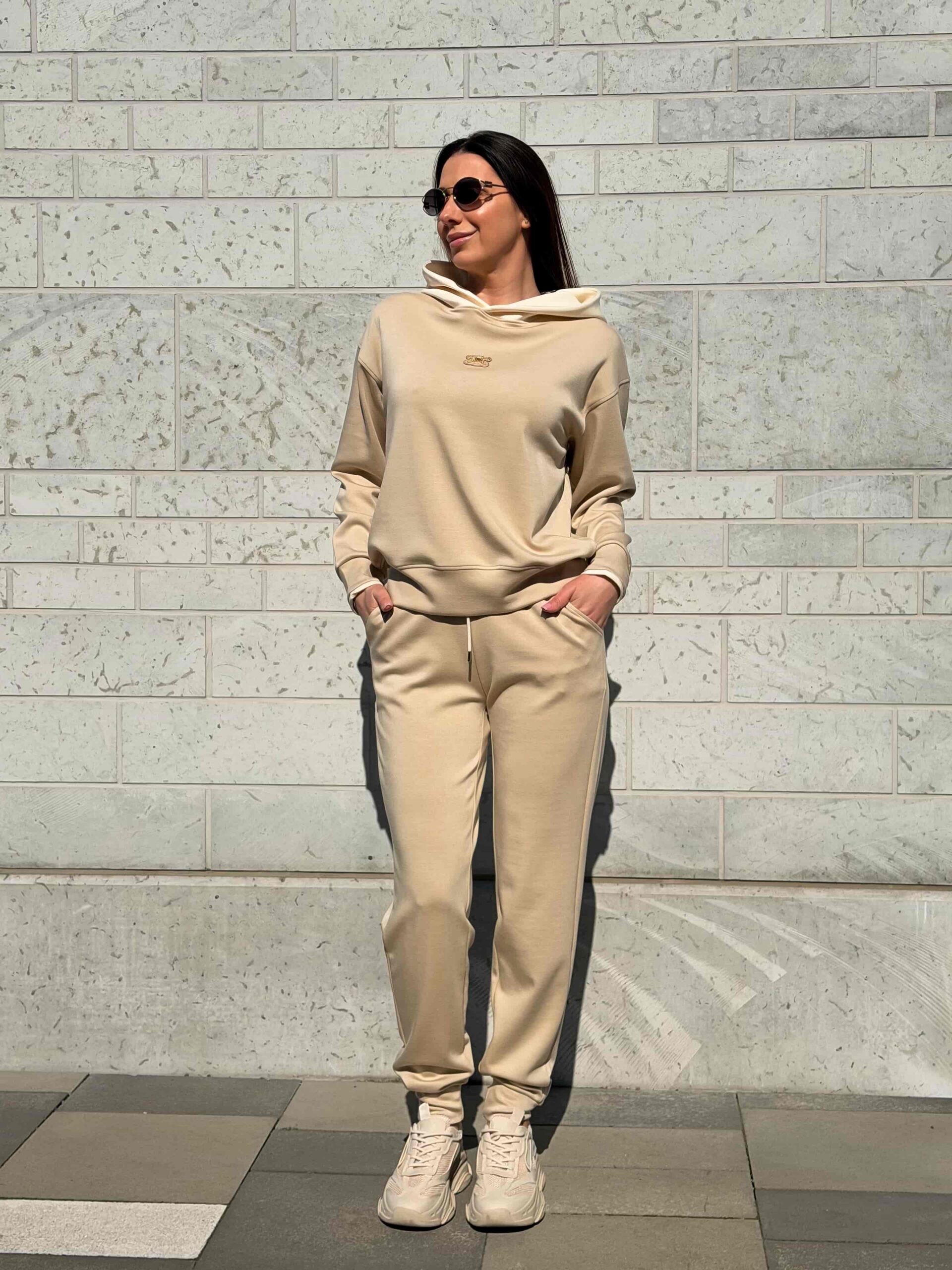Этот повседневный женский комплект состоит из свитшота и брюк. Практичный костюм с капюшоном отлично подходит для активных прогулок на свежем воздухе. Глубокий капюшон надежно защищает голову от внезапных порывов ветра и холода. Свитшот имеет свободный крой и не стесняет ваши движения при ходьбе. Пояс брюк оснащен удобной кулиской для идеальной фиксации на талии. Вы можете самостоятельно регулировать плотность прилегания штанов для полного комфорта. Современный костюм с капюшоном легко впишется в ваш базовый гардероб.