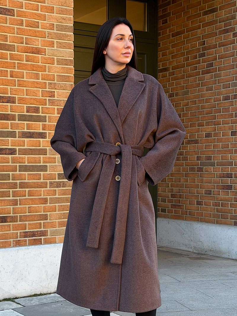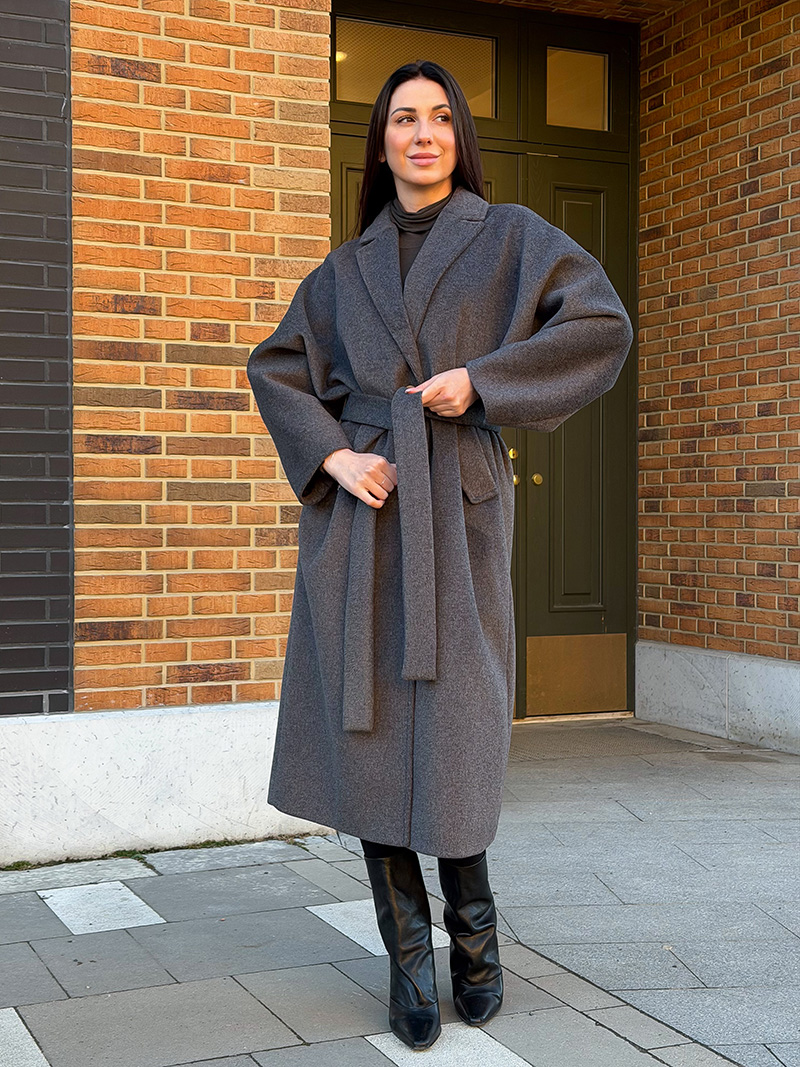 · Без пояса — выглядит как объемный, уютный кокон, идеальный для динамичного городского ритма.