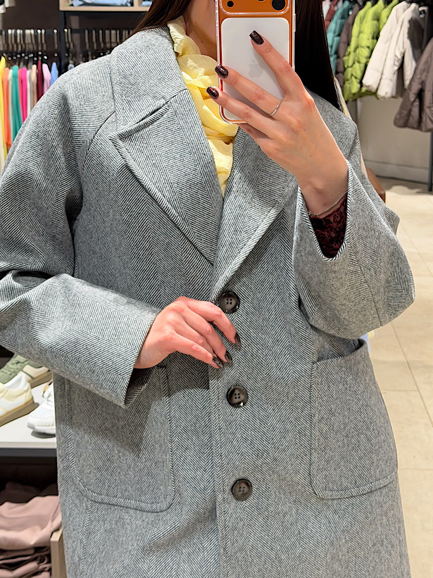 Модель предлагает два образа на выбор: строгий с поясом, подчеркивающим линию талии, или свободный, сохраняющий объем и динамику кроя.