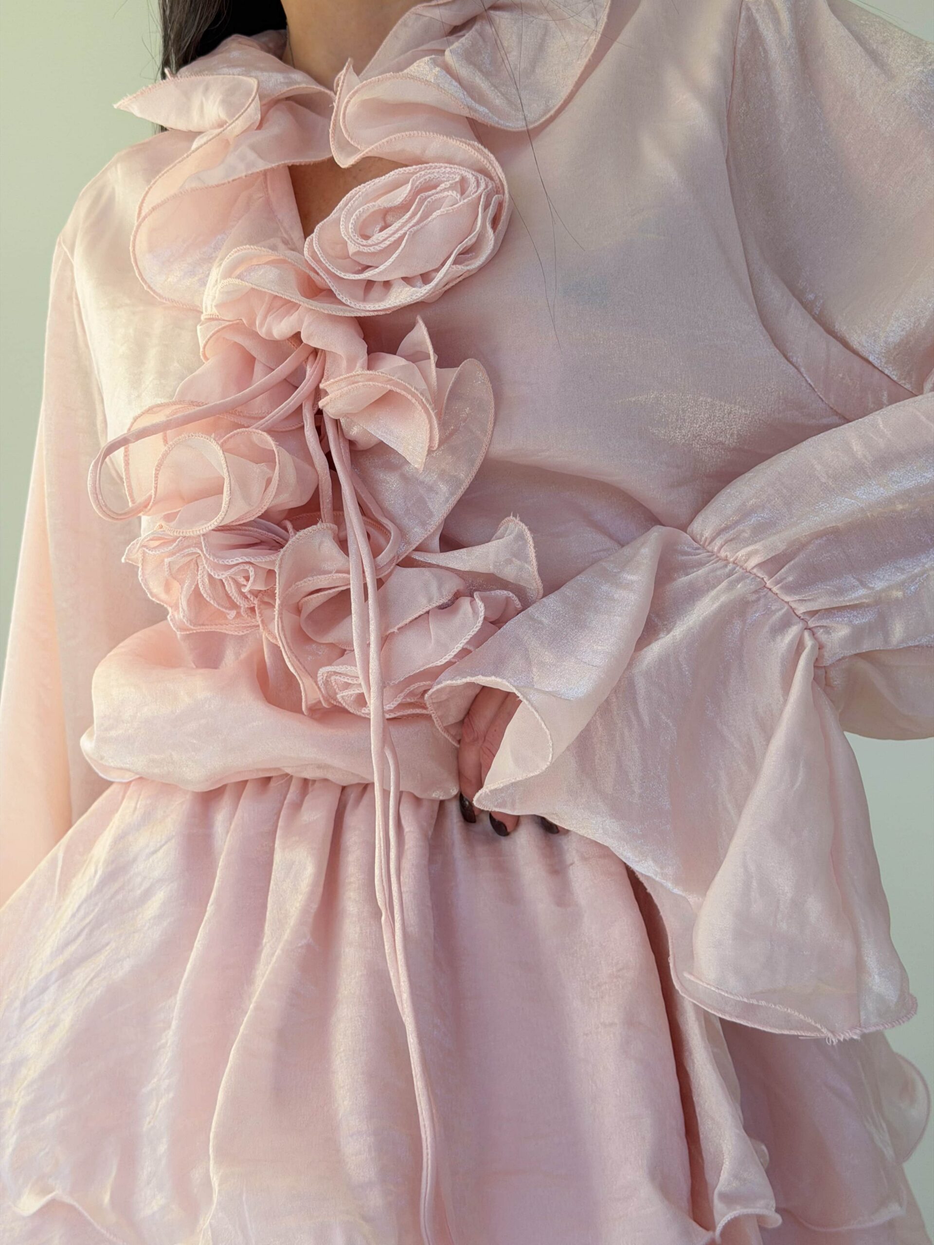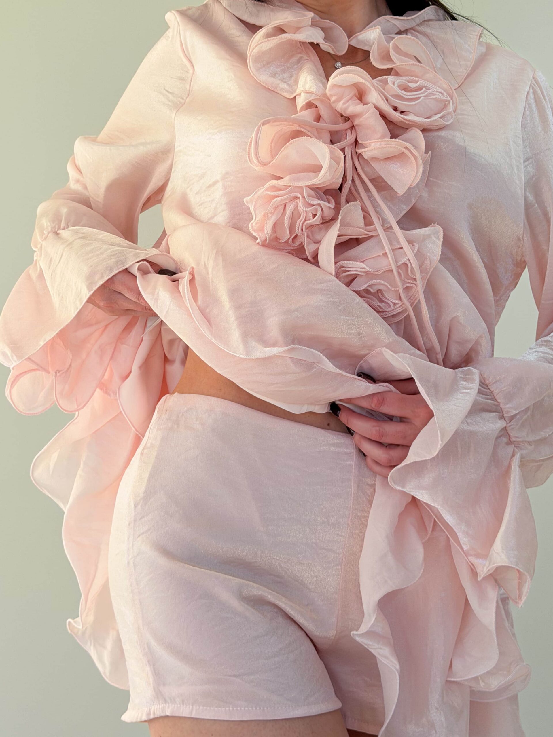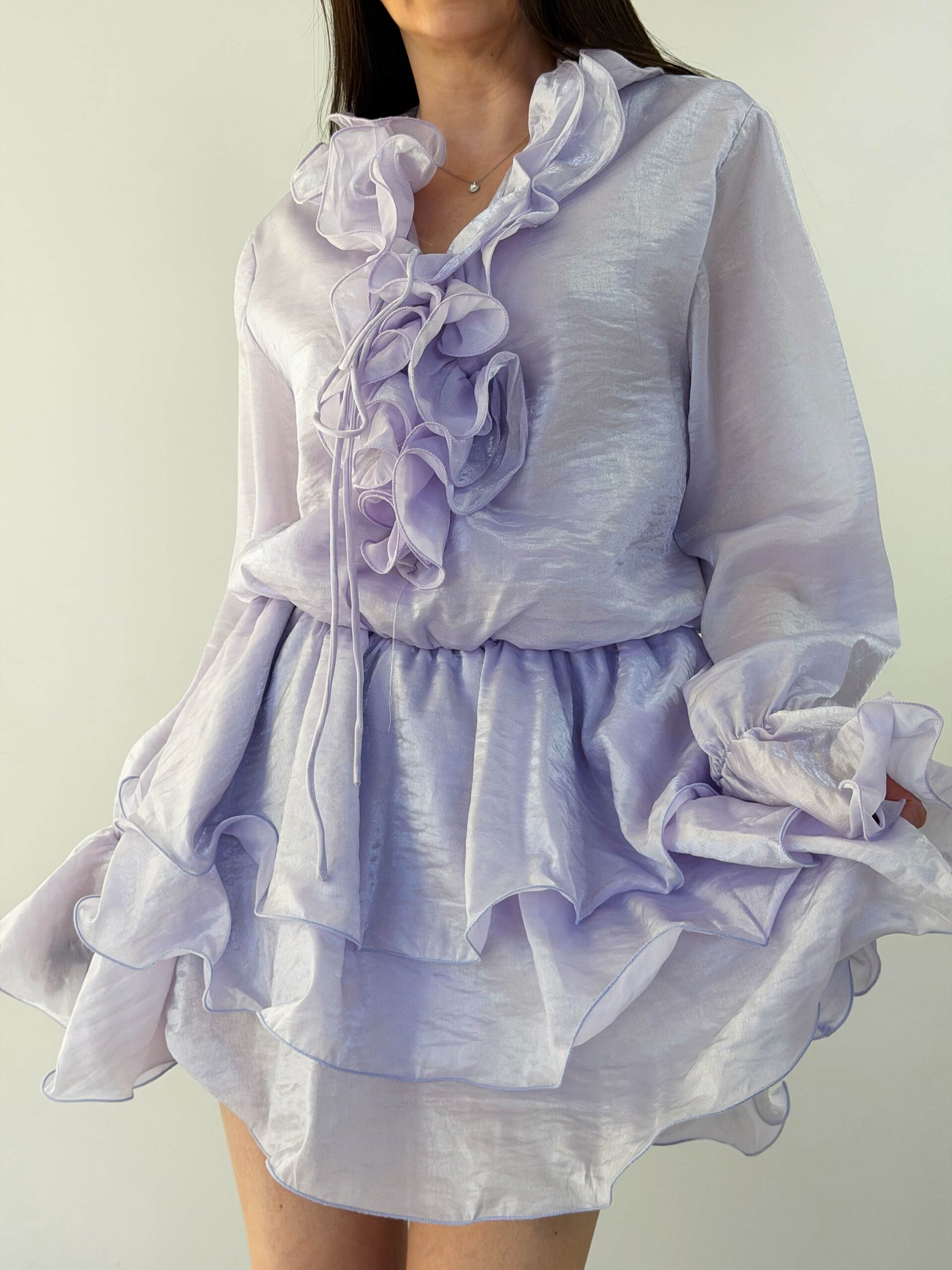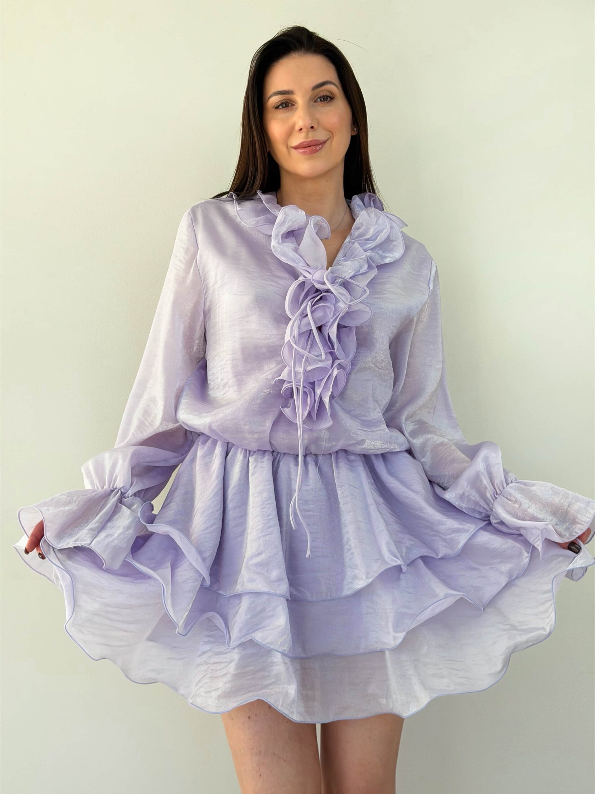 Платье с рюшами — женственная модель, которая сочетает лёгкость силуэта с выразительными оборками. Мягкая ткань и продуманный крой создают воздушный образ вашей фигуре. Рюши по лифу и низу придают наряду игривую ноту. В комплект входят удобные шортики, что делает платье практичным для активного дня и подчёркивает заботу о комфорте. Манжеты на рукавах добавляют изделию романтичности, делая силуэт более выразительным. Это платье с рюшами идеально подходит для прогулок, свиданий и фотосессий. Оно легко комбинируется с босоножками или туфлями на каблуке. Легко подчеркнёт романтический характер образа благодаря объёмным оборкам и утончённой деталировке. Модель доступна в актуальных цветах и станет центральной вещью в вашем гардеробе для торжественных и повседневных выходов.