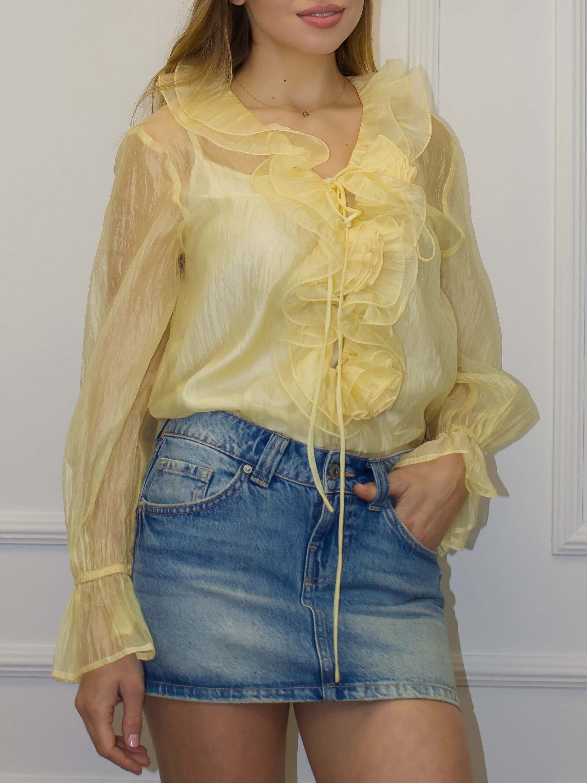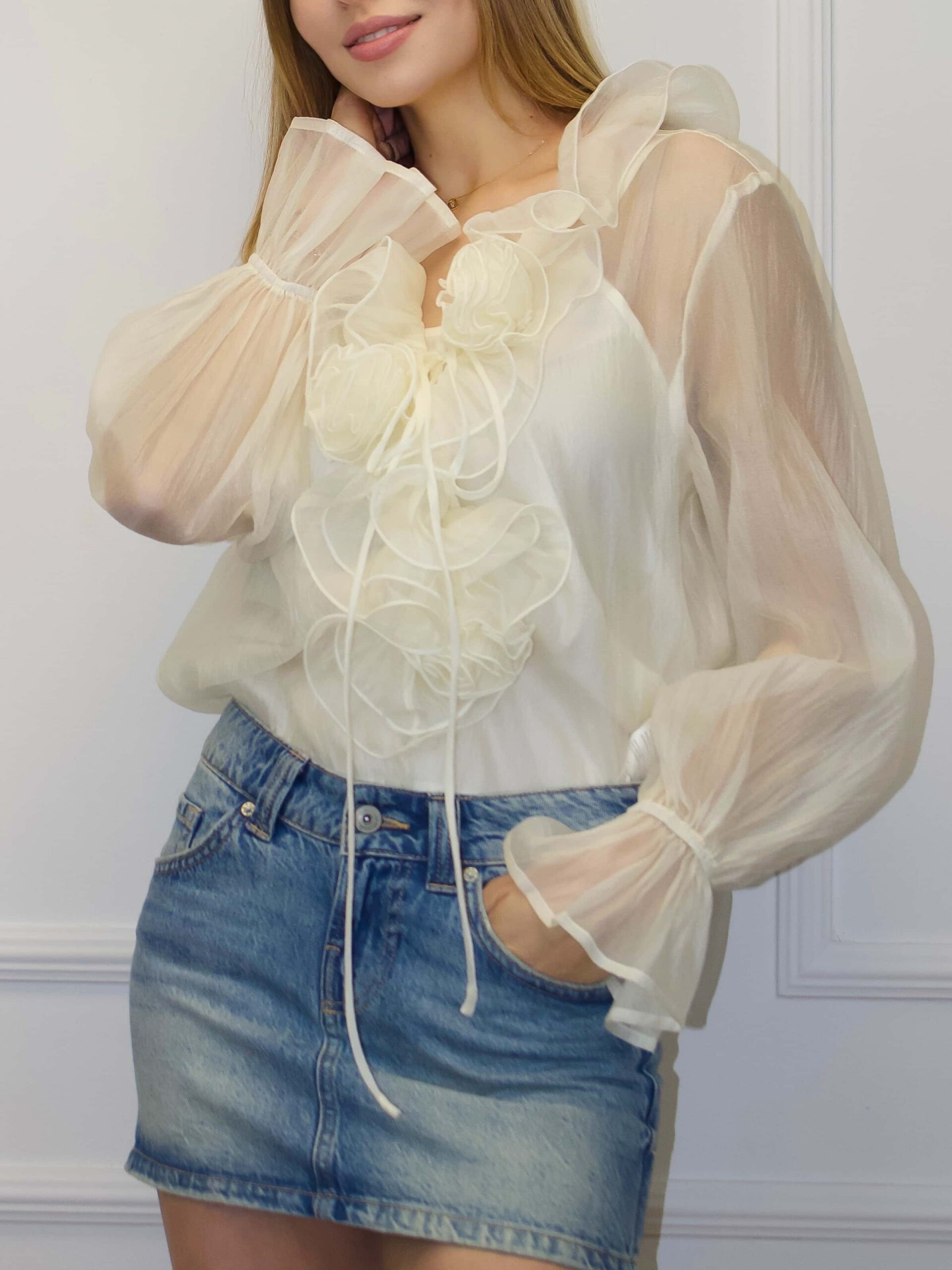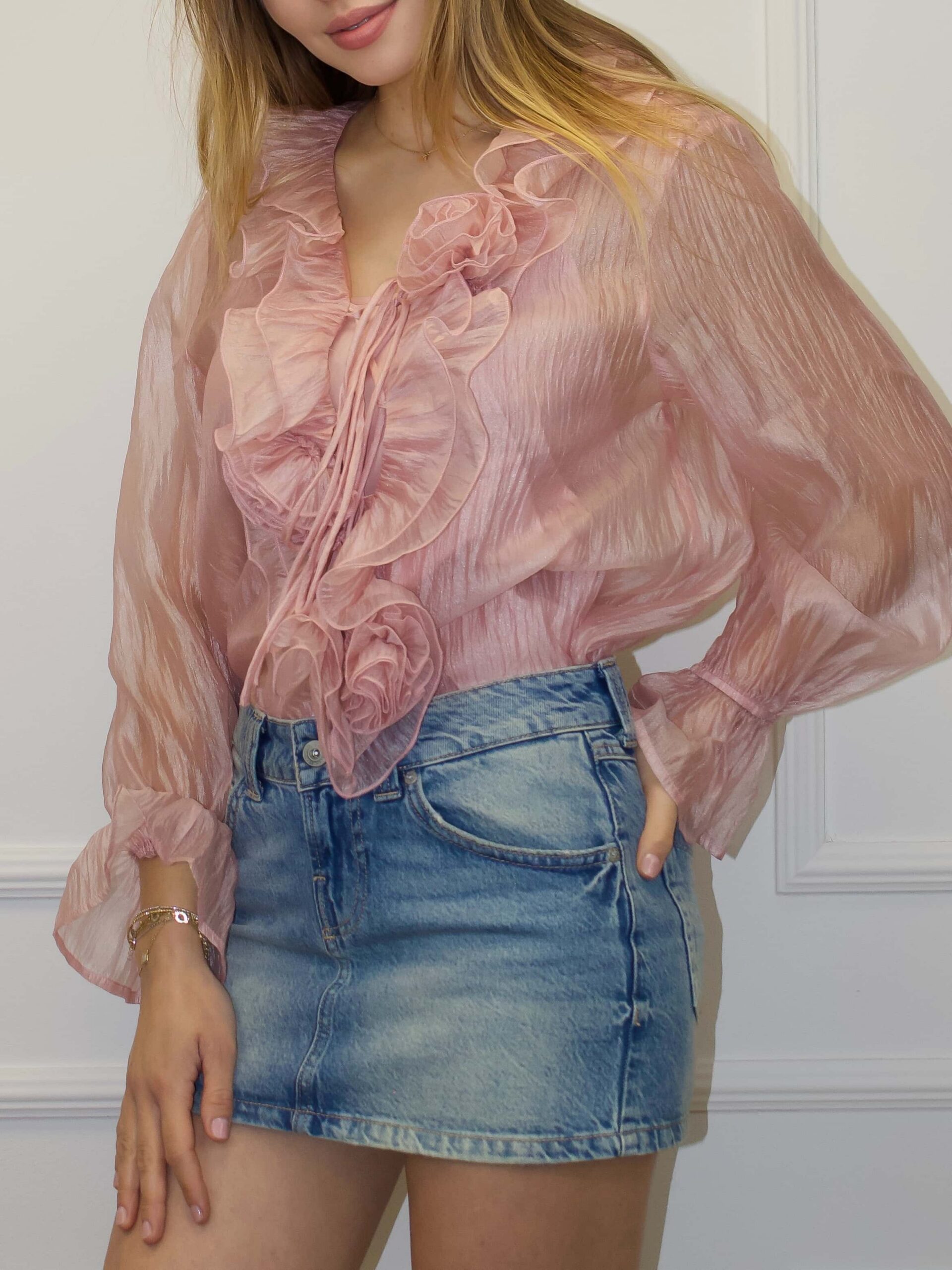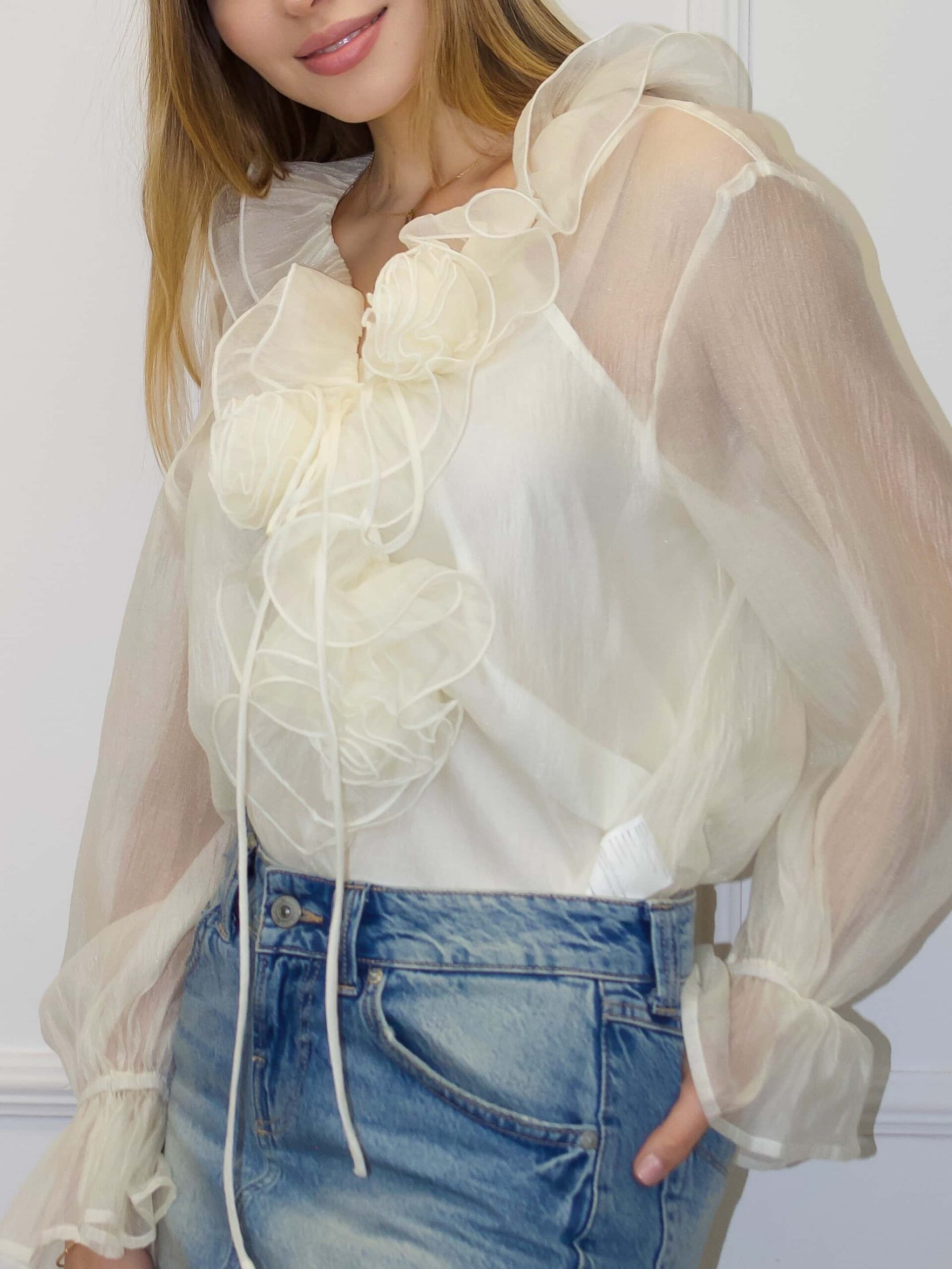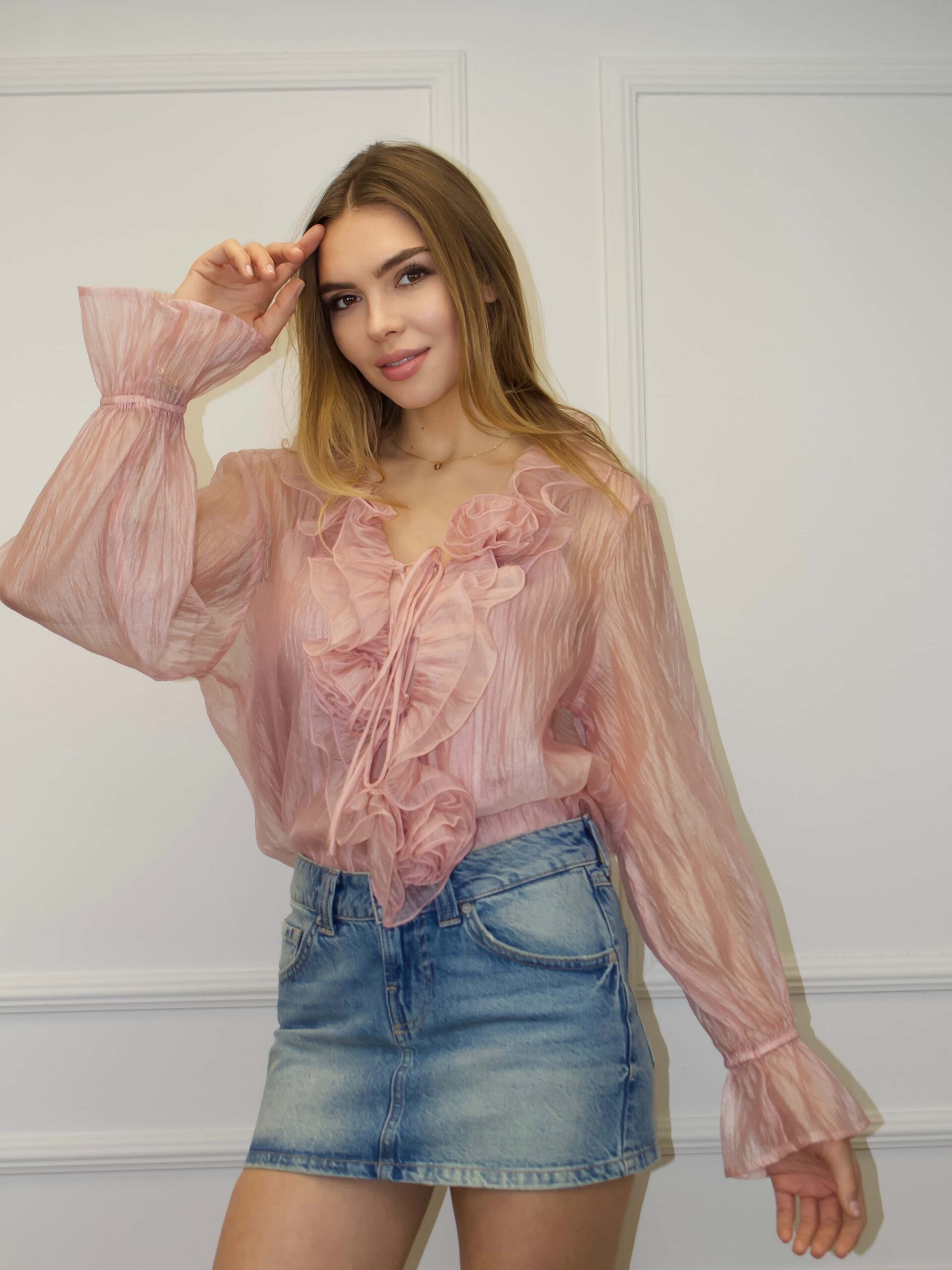 Женская блузка — изящная и универсальная модель для романтичных и вечерних образов. Блузка доступна в разных цветах нежных пастельных оттенков, что позволяет подобрать вариант под каждый гардероб. Воланы по вырезу горловины формируют мягкую драпировку и добавляют воздушного объёма, подчёркивая женственность и утончённый стиль. Ткань с перламутровым блеском придаёт деликатное сияние при любом освещении, создавая аккуратный акцент без излишней вычурности. Женская блузка легко комбинируется с юбками, брюками и жакетами, подходит для свиданий и праздничных мероприятий.