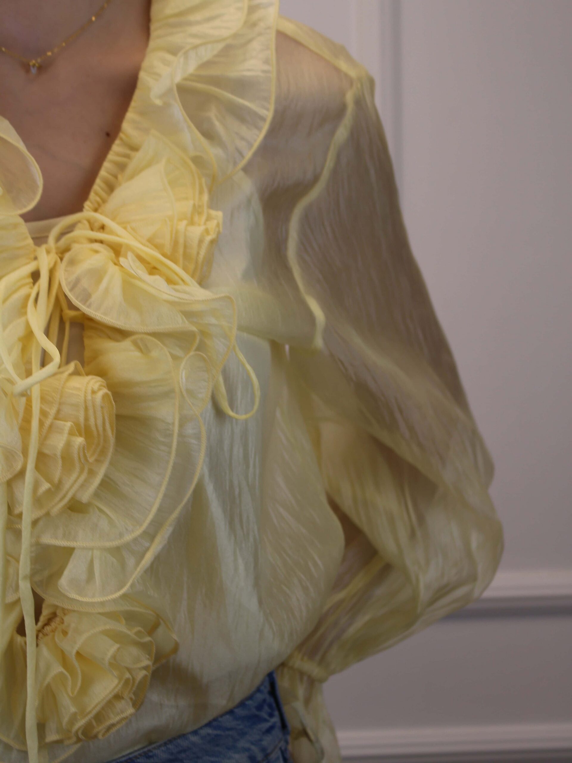 Декор: воланы по вырезу горловины, драпировка