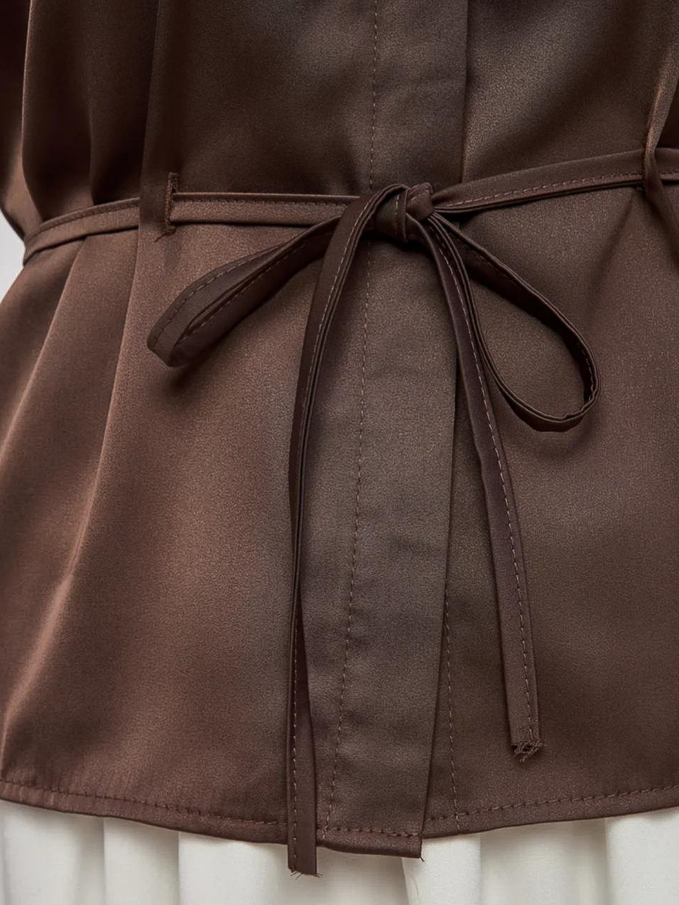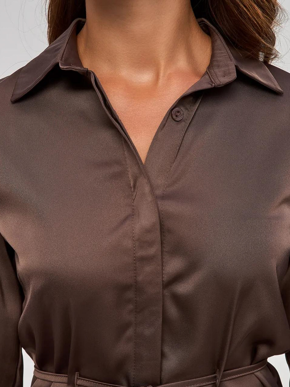 Женская блузка — изящная модель с лёгким блеском сатина, идеально подходящая для офиса и вечерних выходов. Изделие подчёркивает талию тонким поясом, создавая аккуратную посадку по фигуре. Застёжка на пуговицы выполнена скрыто, что сохраняет лаконичность и визуальную чистоту переда. Аккуратный воротник и деликатные рукава делают модель универсальной для сочетаний с юбками, брюками и жакетами. Женская блузка представлена в нескольких цветах.